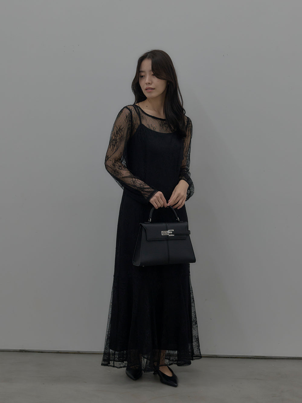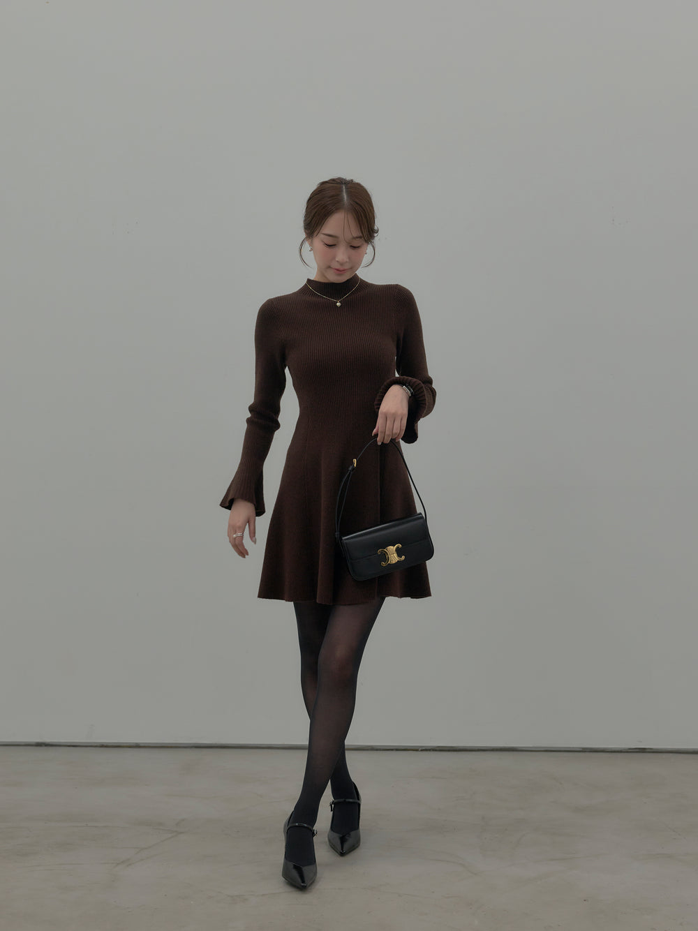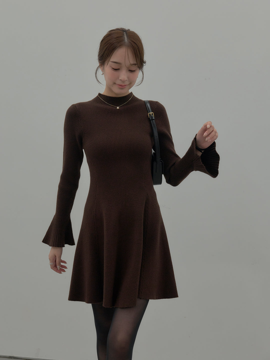 【Essential】2wayスリーブヘリンボーンフレアワンピース