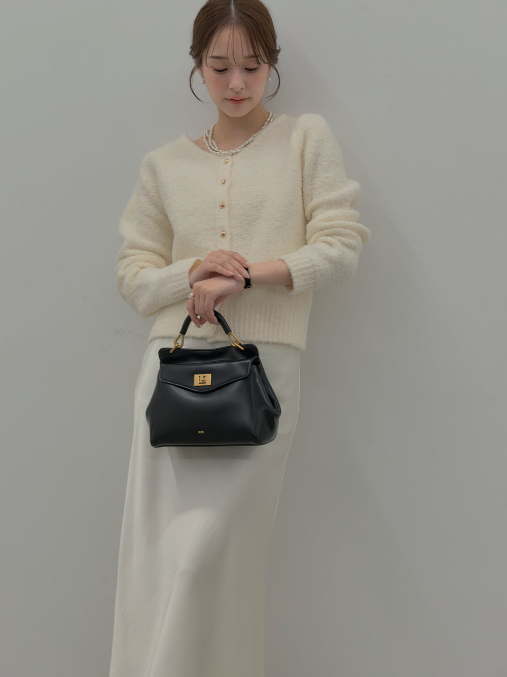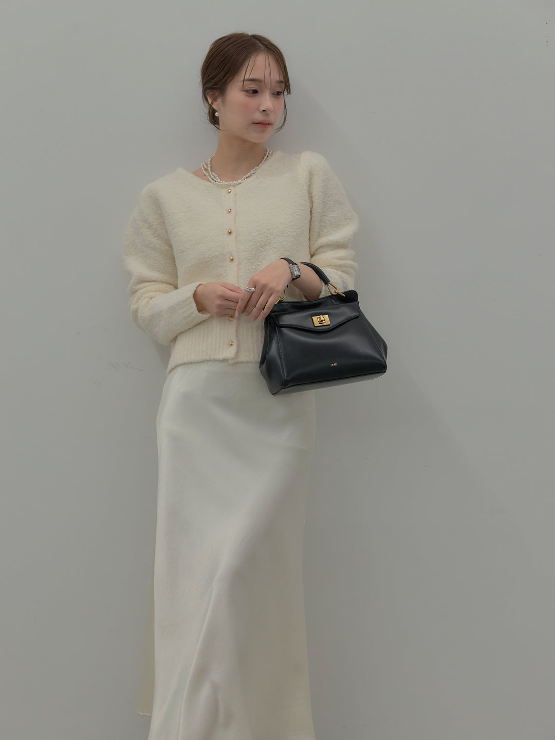 【SET】プードルニットパフスリーブカーディガン+ナローAラインサテンスカート(2set)