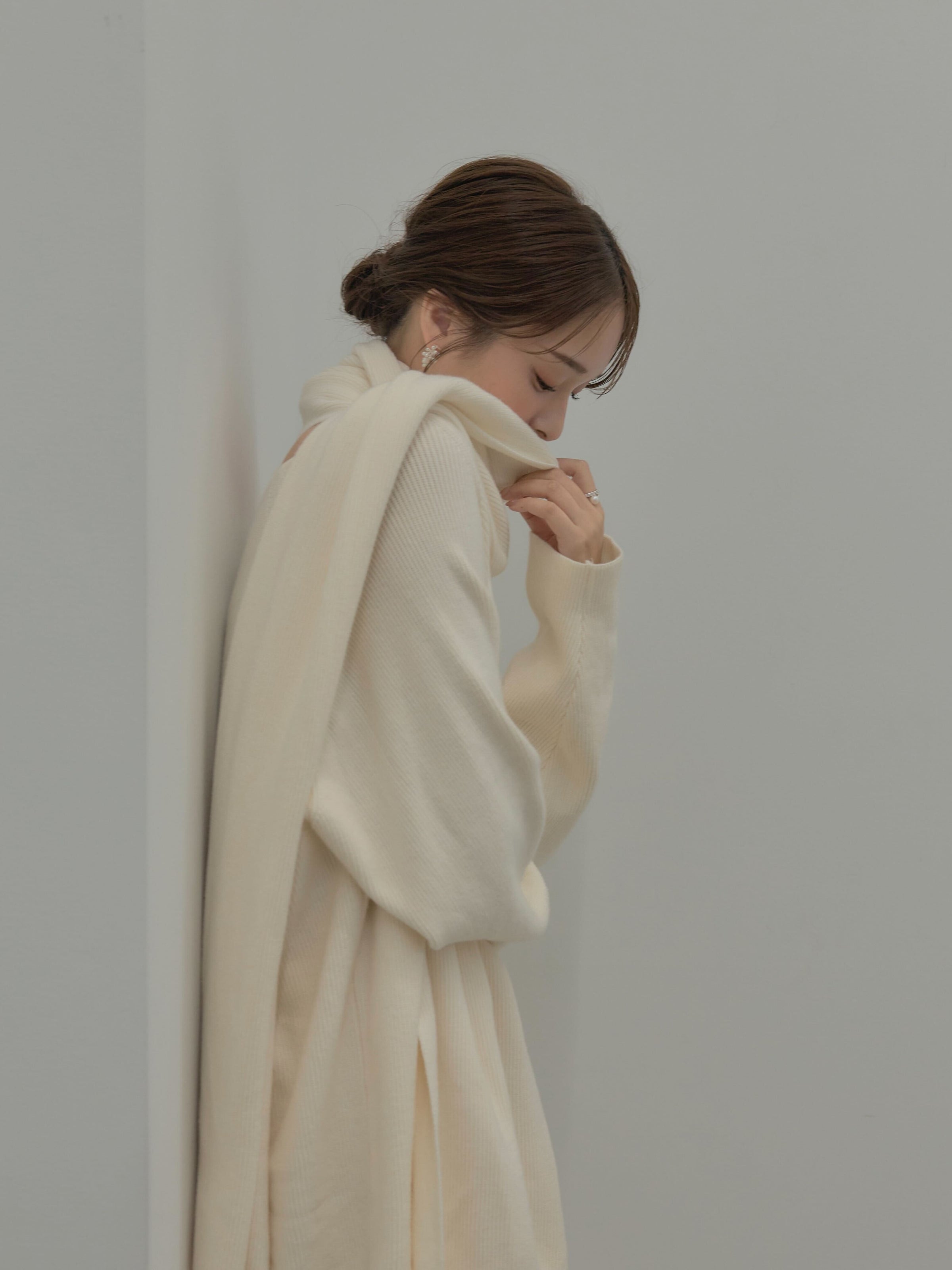 ミルキータッチキーネックニットSET UP(ストール付き)