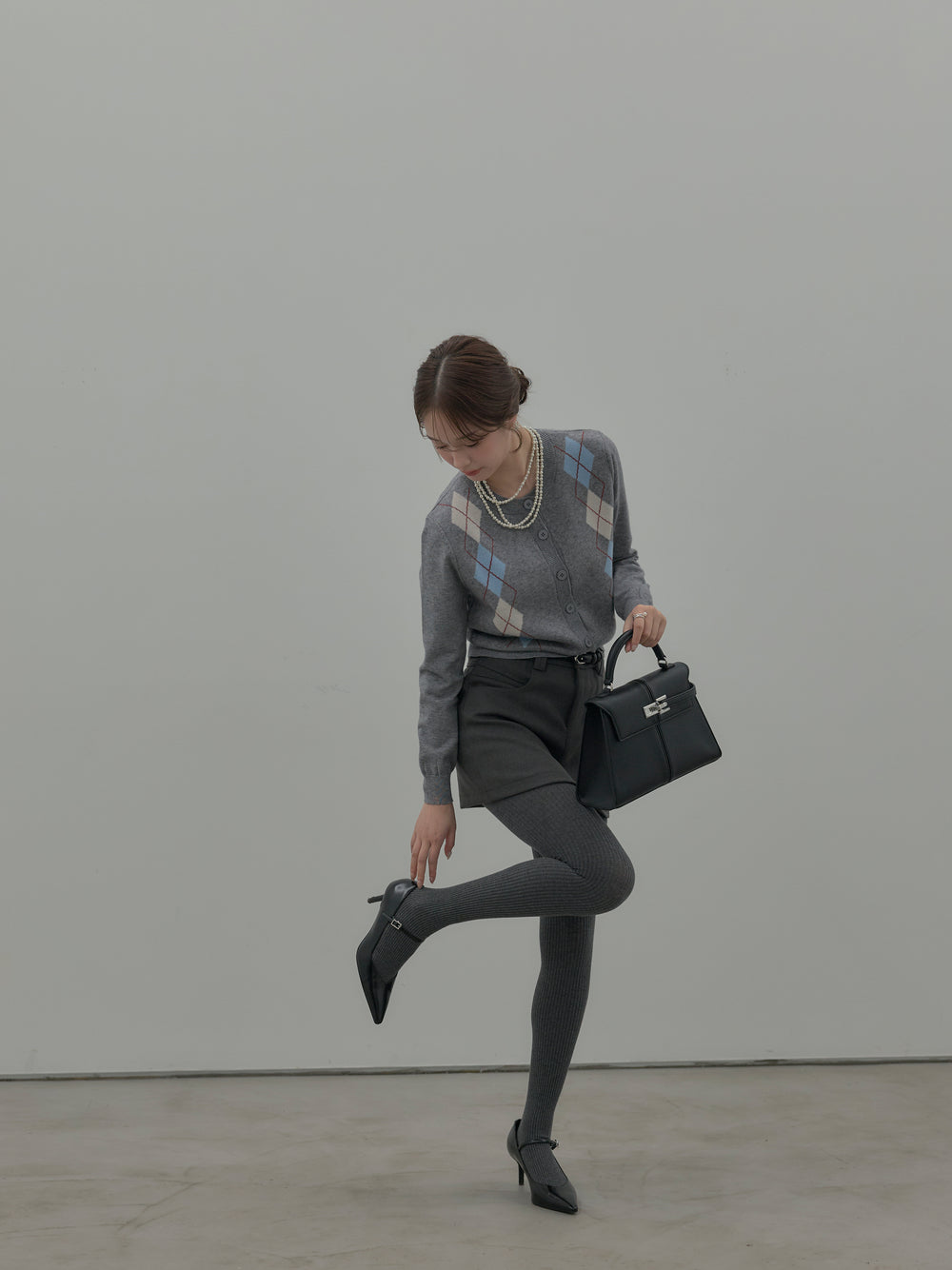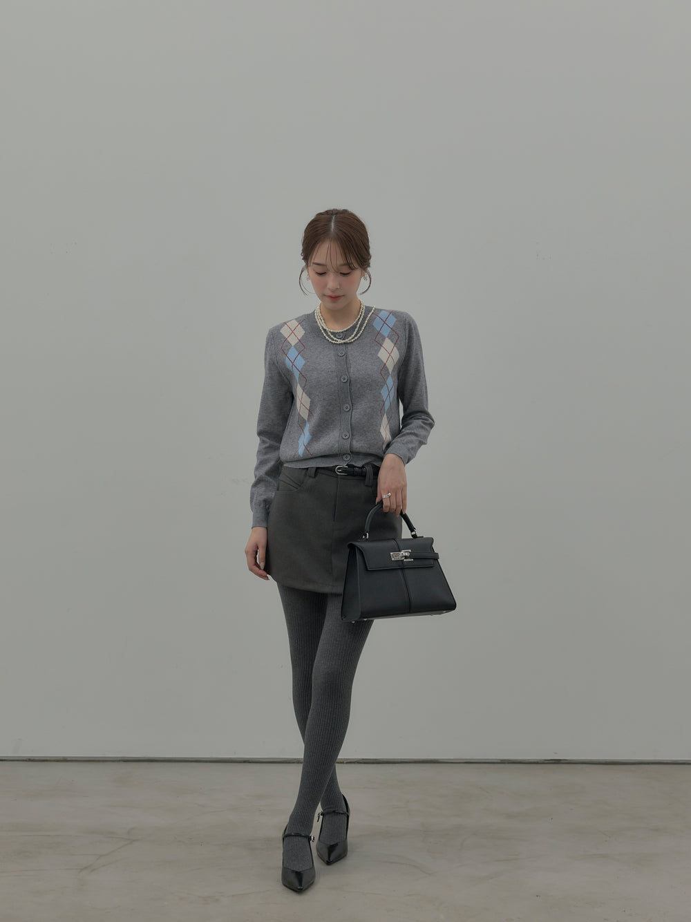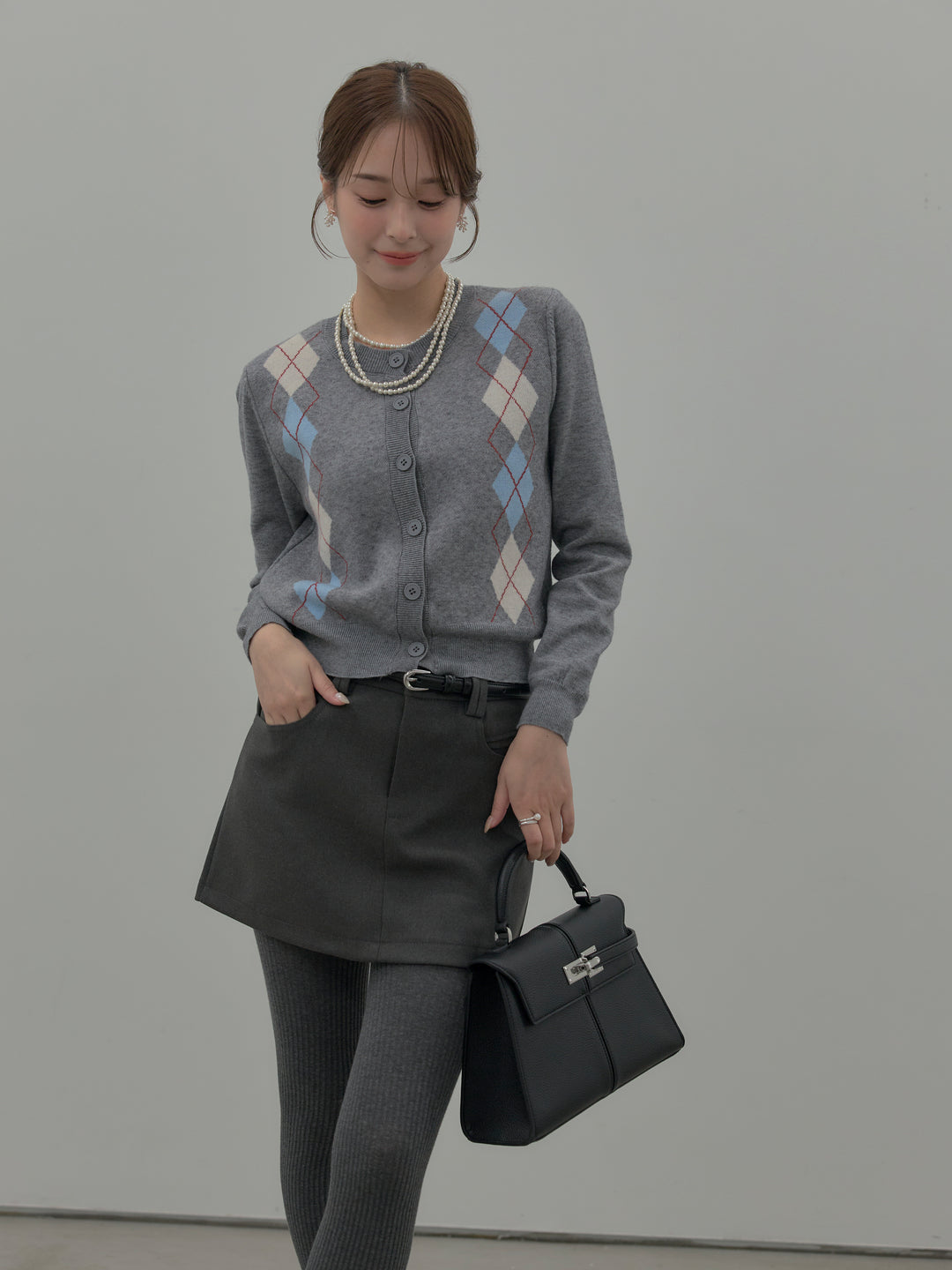 【SET】アーガイル柄ニットカーディガン+スムースタッチデザインポケットミニスカート(インパン付き)(2set)