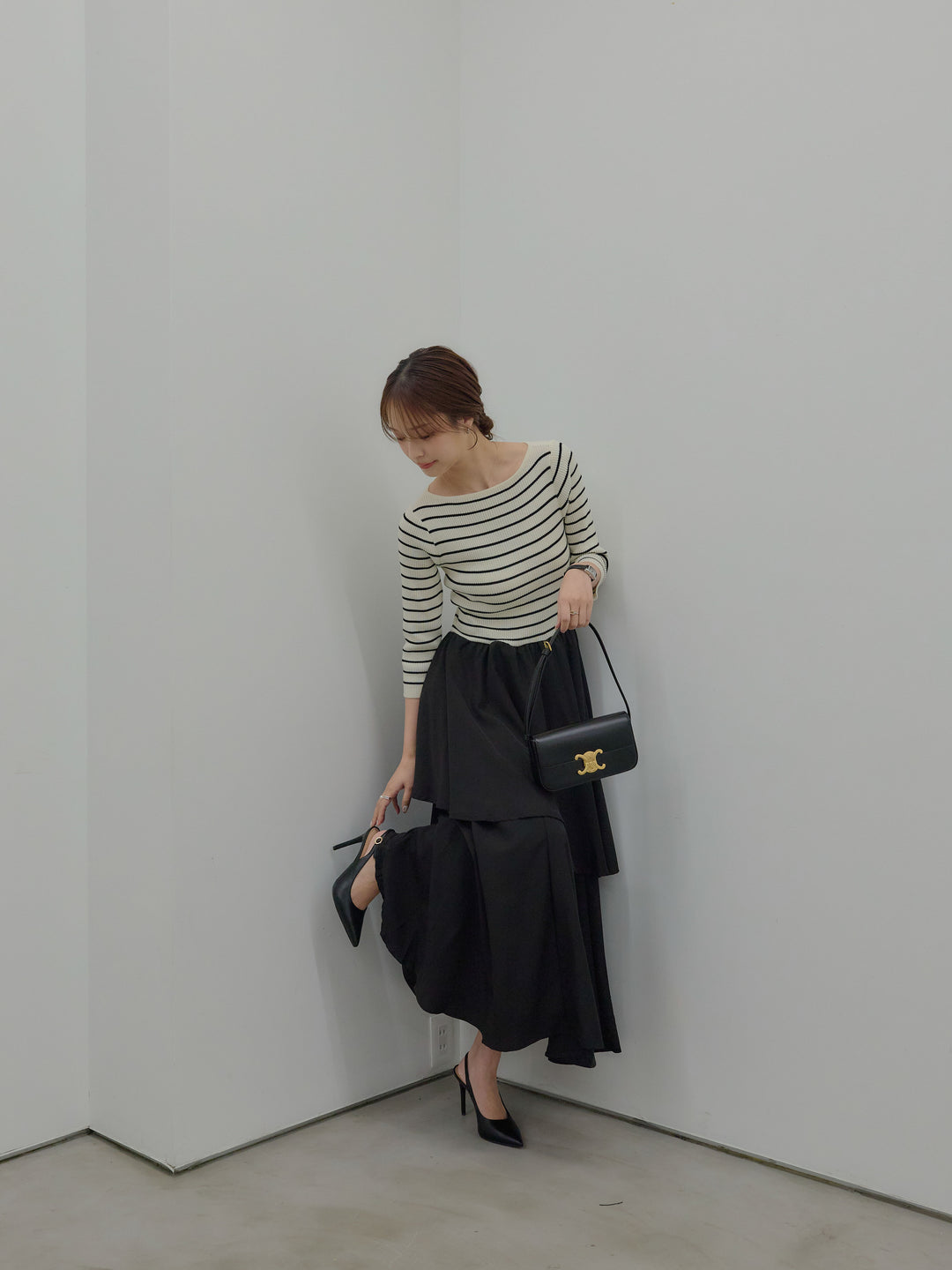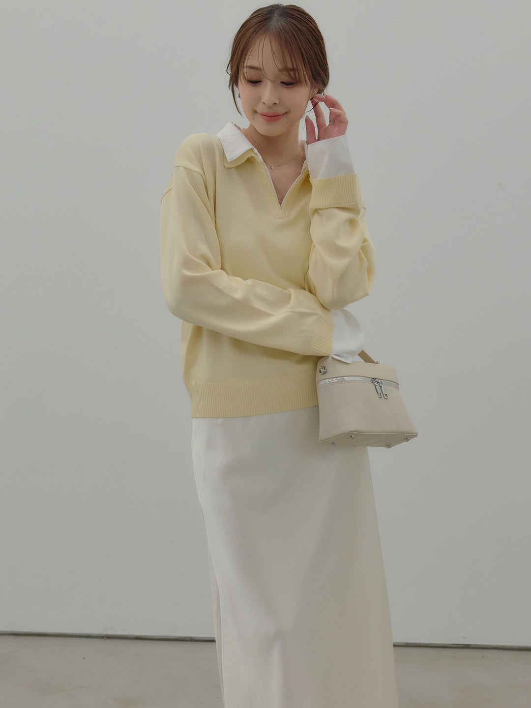 【SET】配色レイヤードプルオーバー+リュクスAラインサテンスカート(2set)