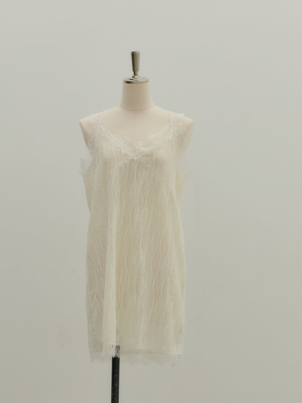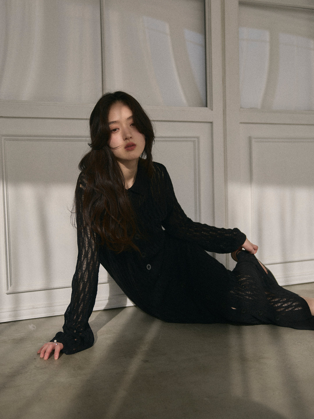 透かし編み襟付きニットドレス(インナーミニワンピ付き)