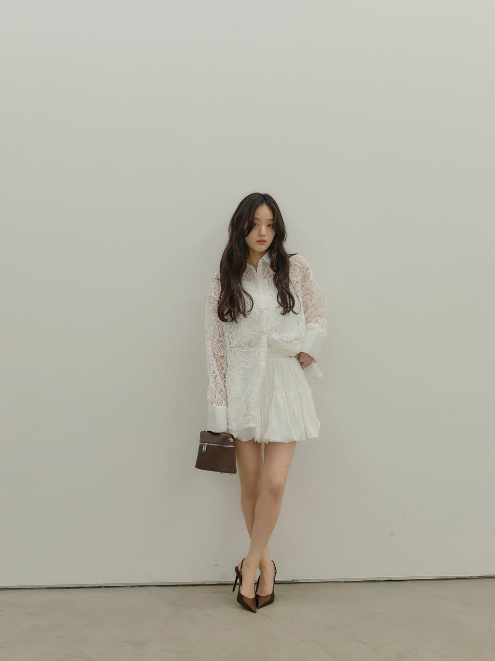 【SET】【Essential】Authentic jacket+裾レースサテンミディスカート(2set)