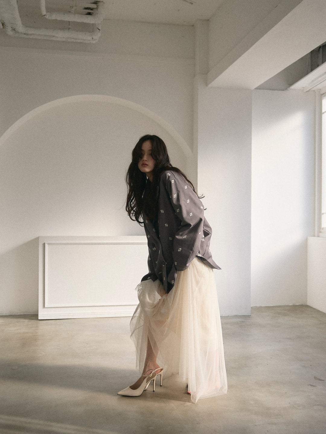【SET】フラワー刺繍テーラードジャケット+ボリュームチュールスカート(2set)