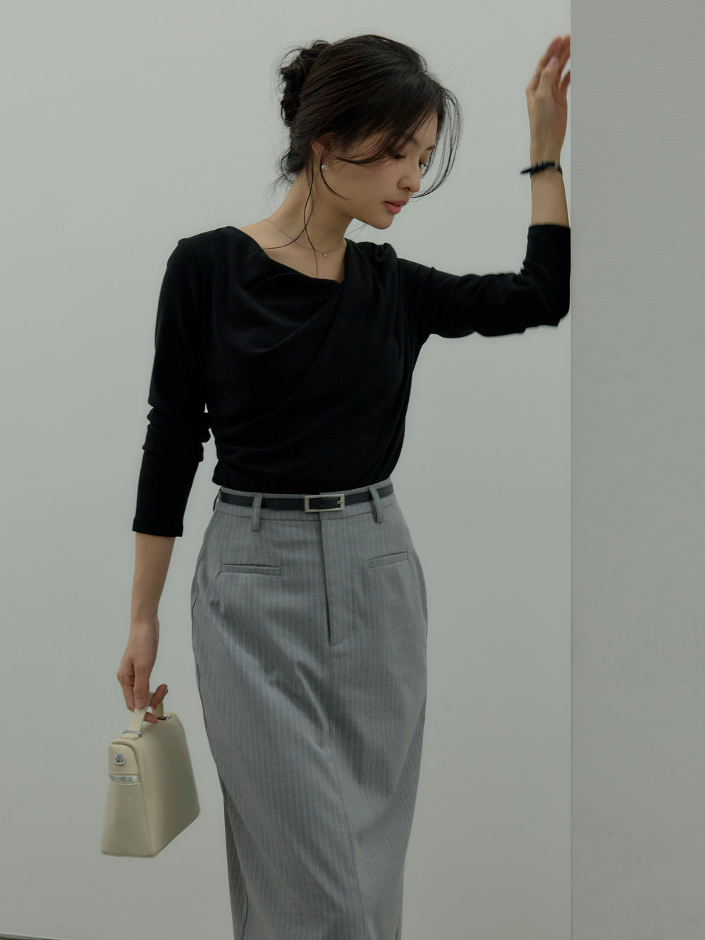 【SET】ドレープハーフスリーブカットソー+【Essential】Authentic pencil skrt(2set)