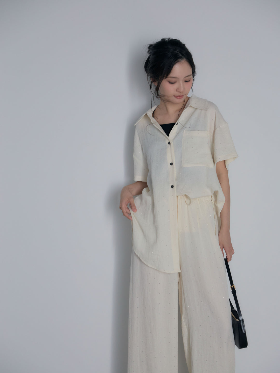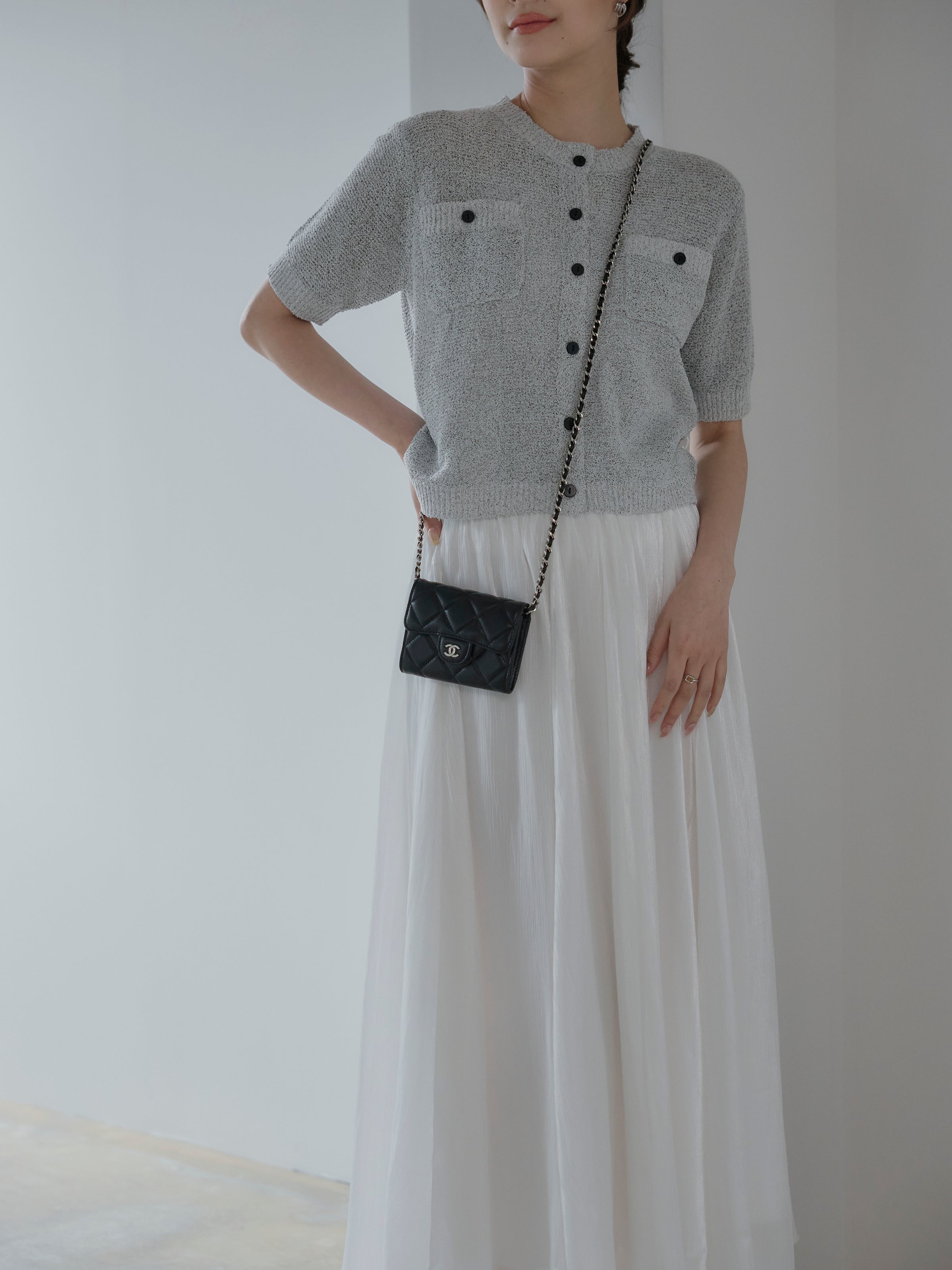 【SET】フロントポケットハーフスリーブカーディガン+グロッシーフレアスカート(2set)