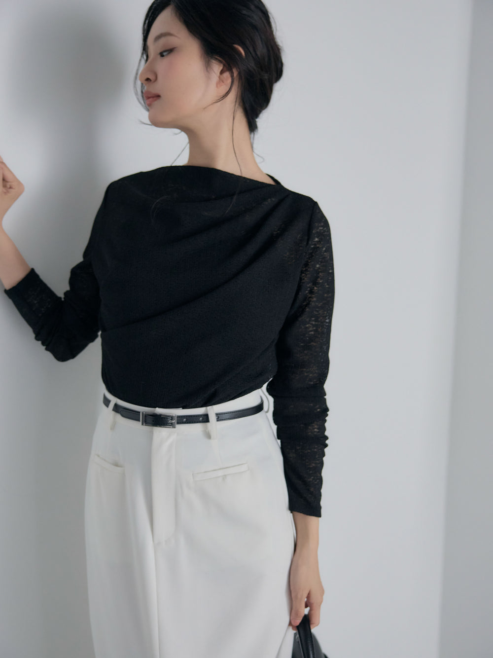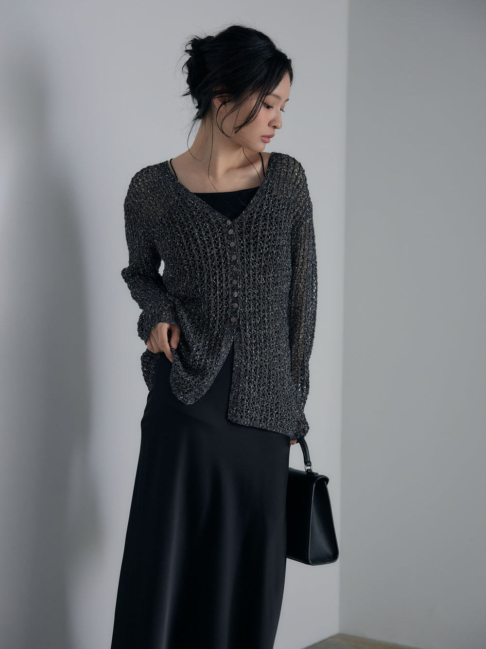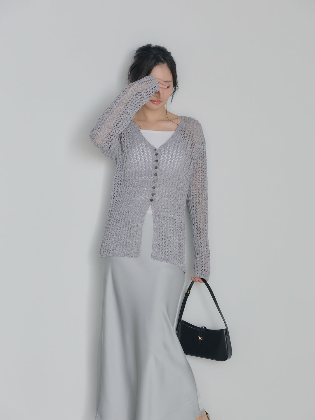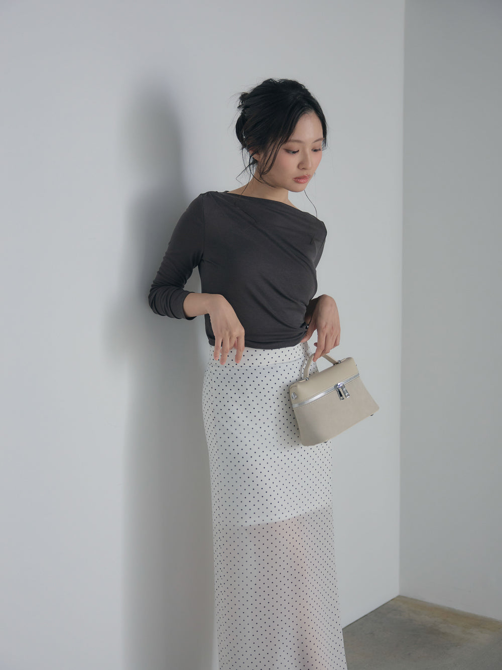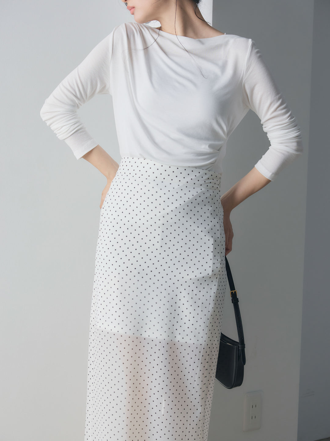 【SET】メッシュドレープトップス+シアードットロングスカート(2set)