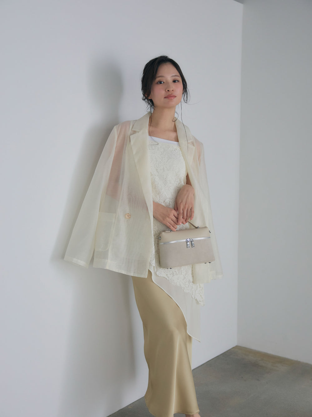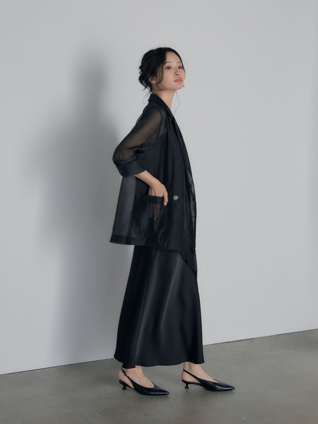【SET】シアーポプリンテーラードジャケット+ライトサテンナロースカート(2set)