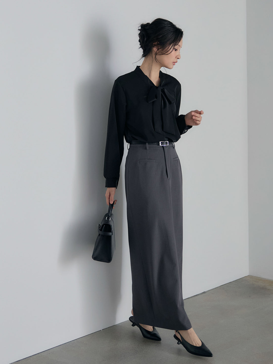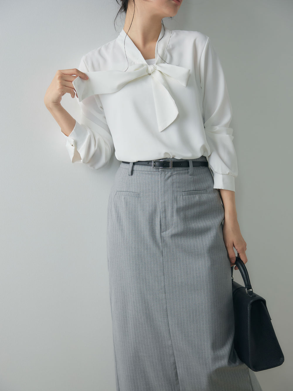 【SET】ボウタイサテンシャツ+【Essential】Authentic pencil skrt(2set)