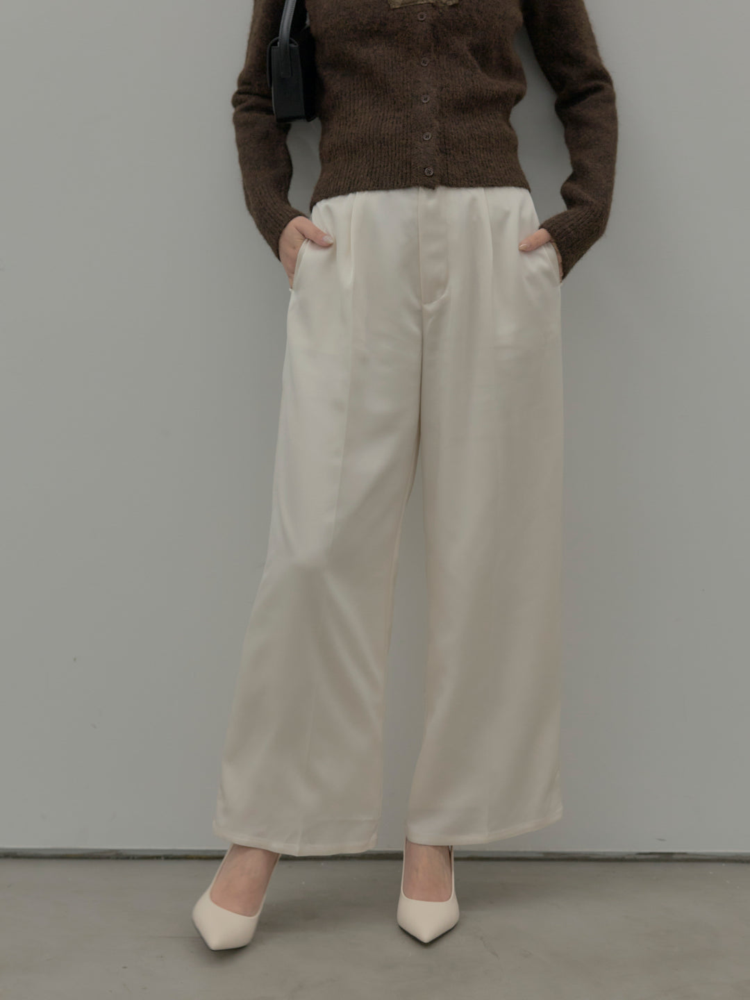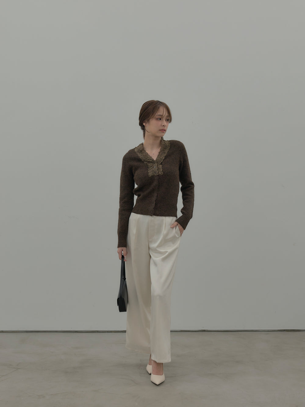 【SET】レース襟ニットトップス+【Essential】センタープレスサテンパンツ(2set)