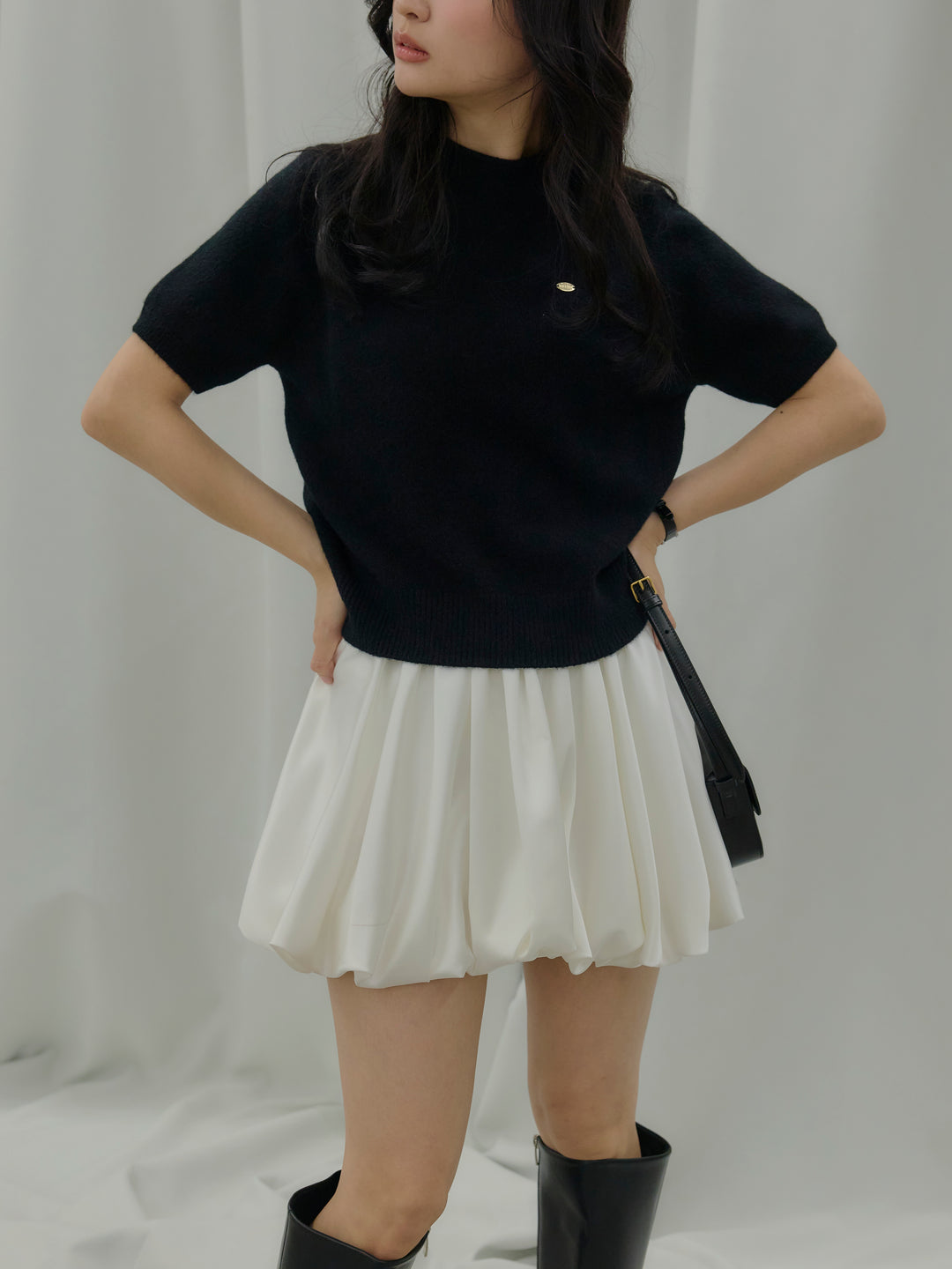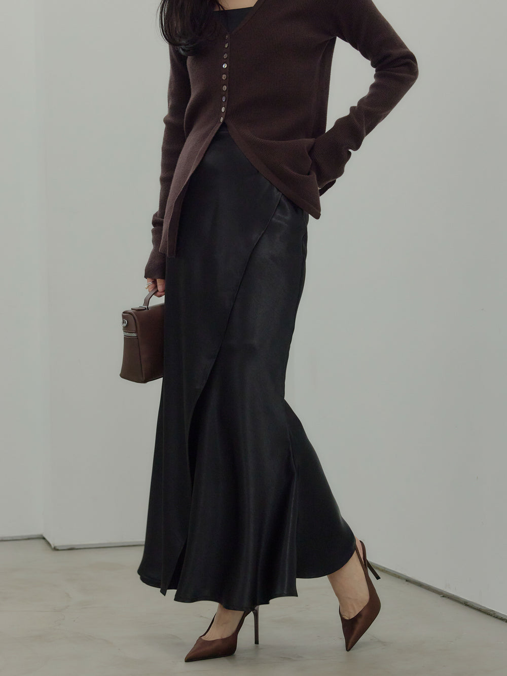 【SET】GOLD PLATE起毛ハーフニットトップス+【Essential】Wrap design satin mermaid skirt(2set)