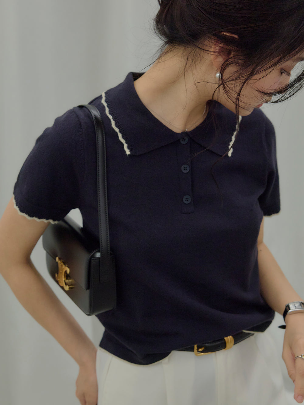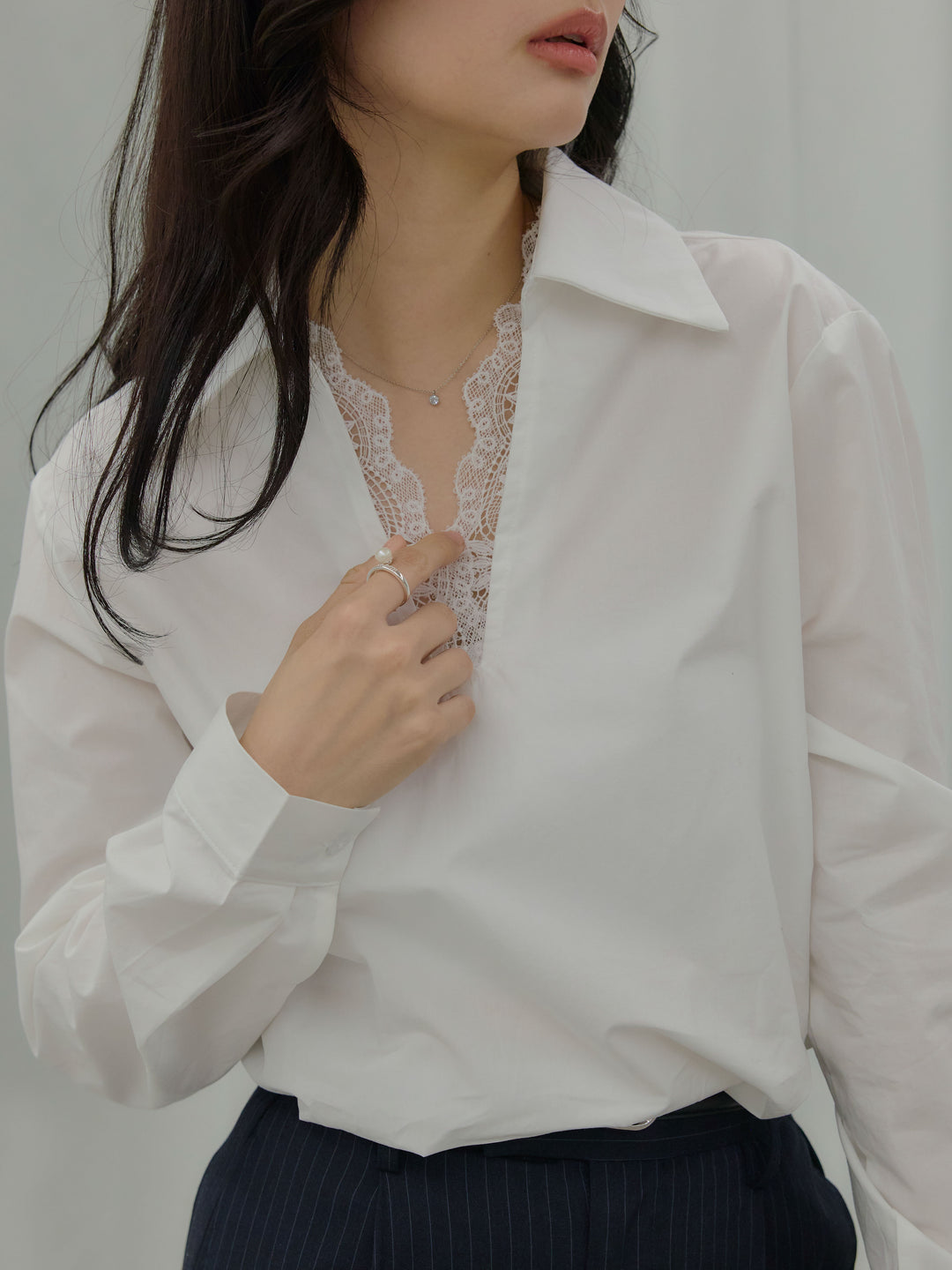 【SET】レース襟ドッキングシャツ+【Essential】Authentic straight pants(2set)
