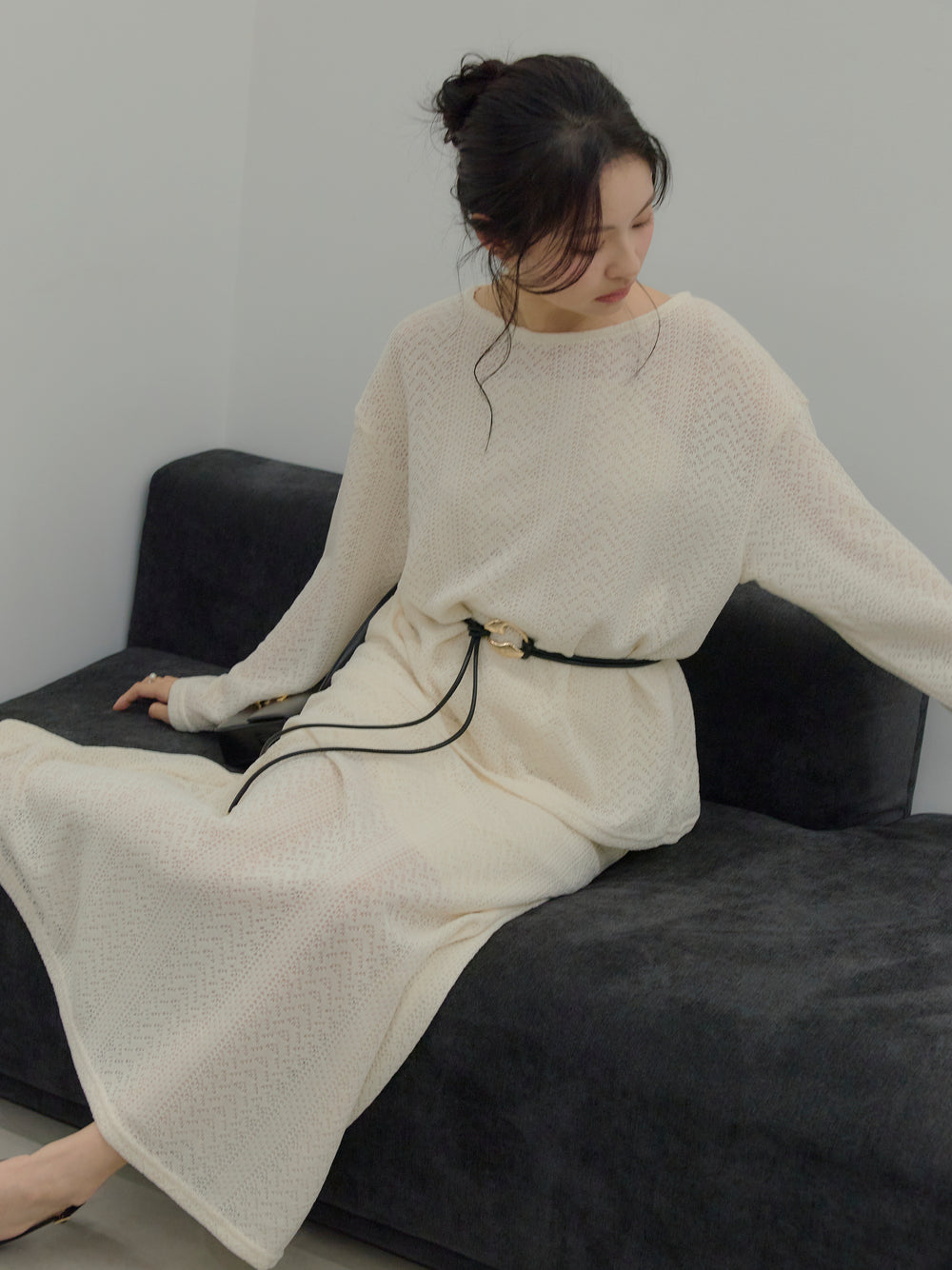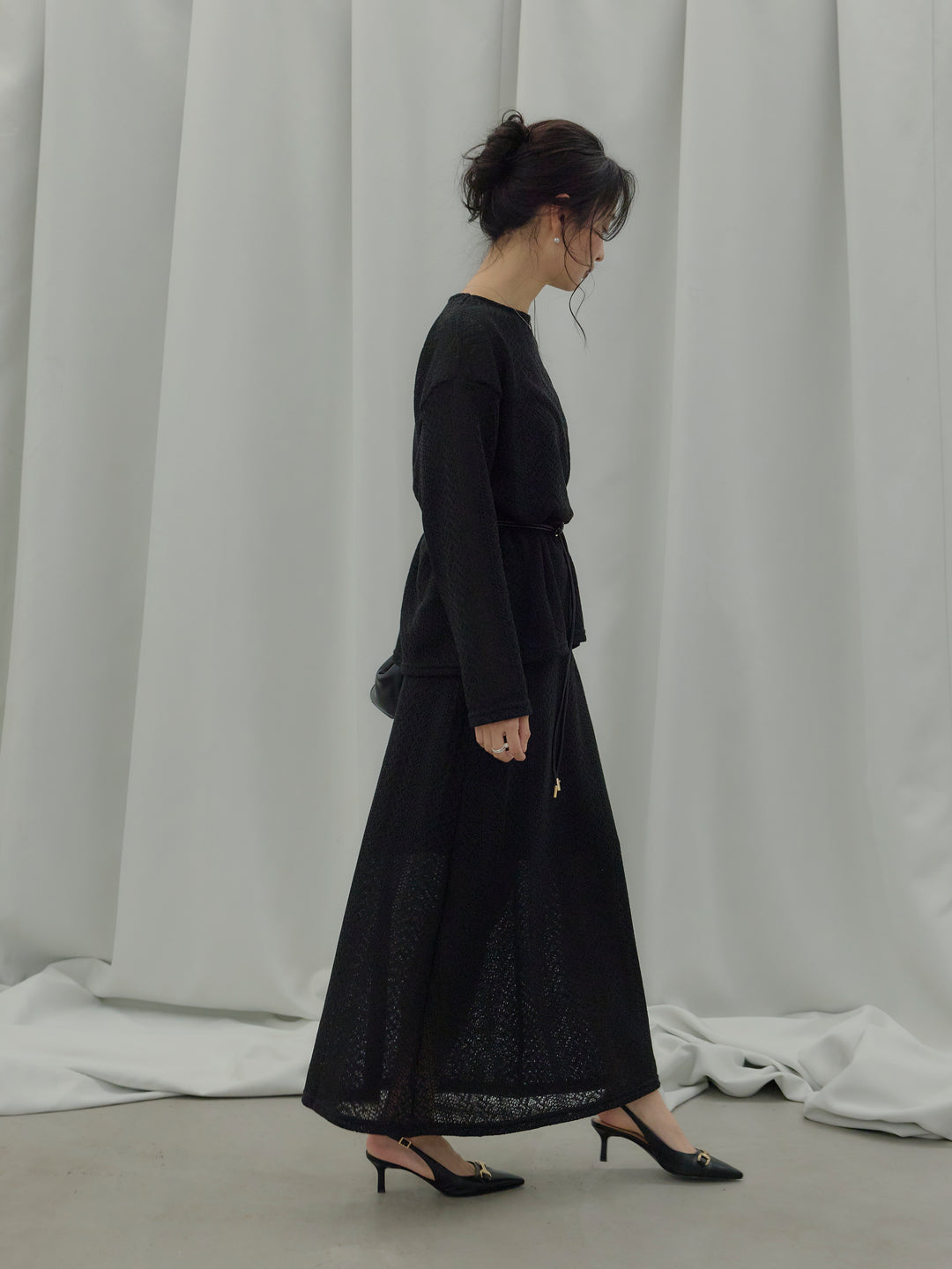 透かし編みプルオーバー&AラインスカートSET UP(ベルト付き)
