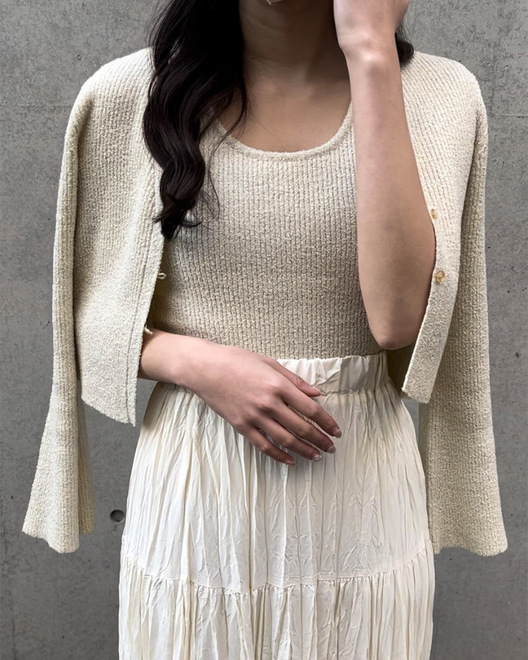 ラメの煌めきが上品なカーディガン、ふんわりシルエットと透け感で春めくニットなど新作アイテムに加え、完売していた大人気ケープジャケットも登場✨
