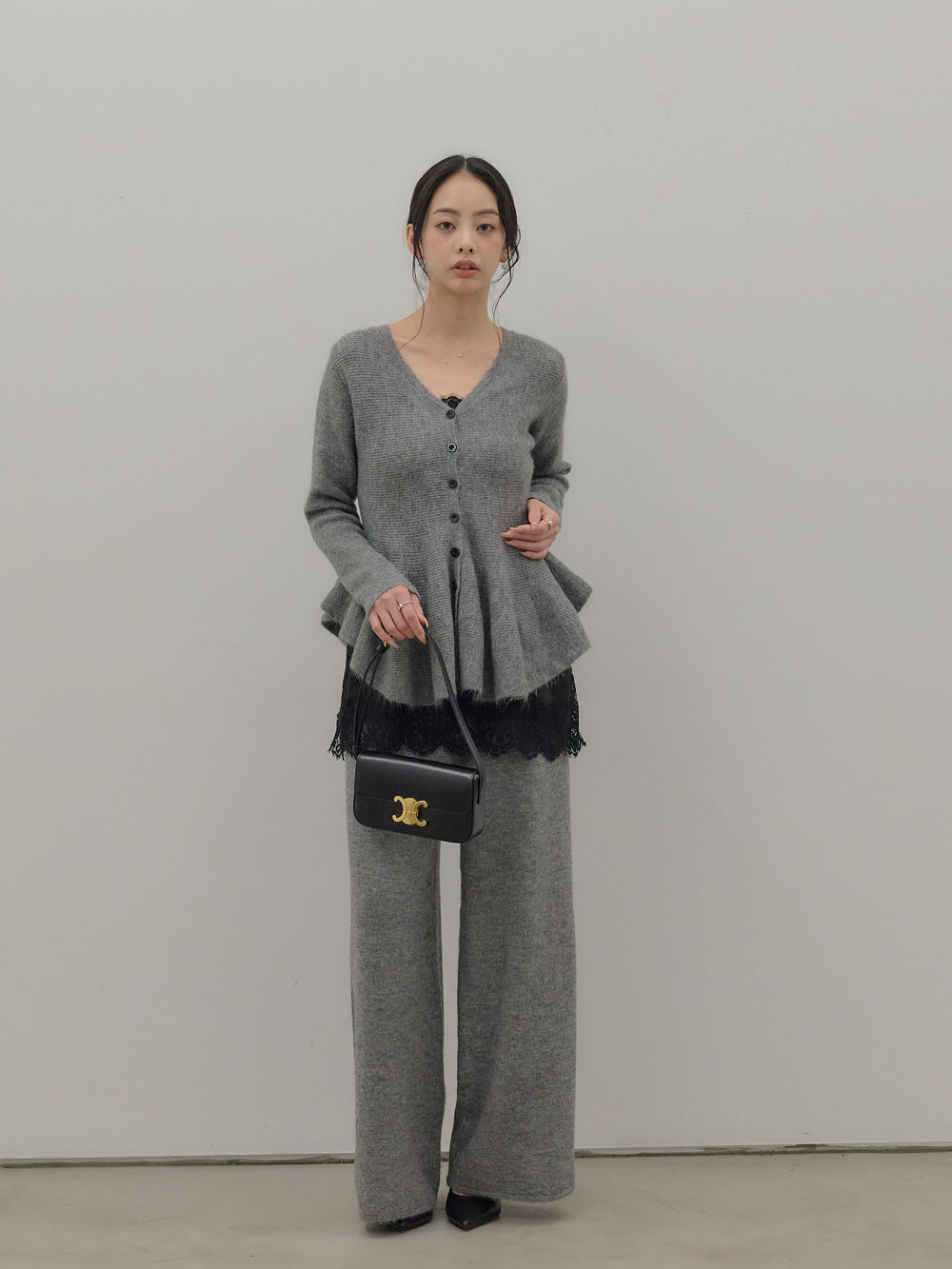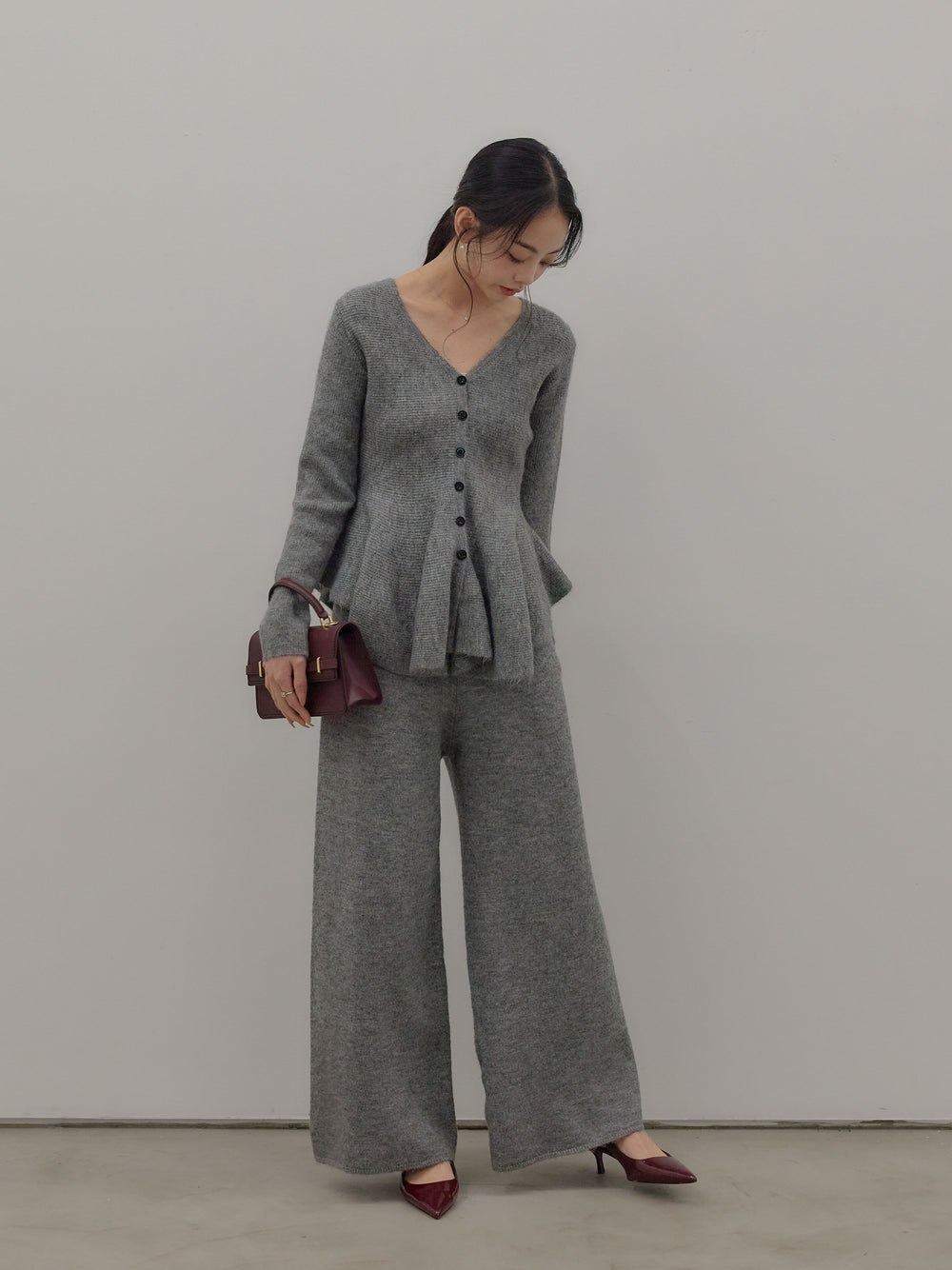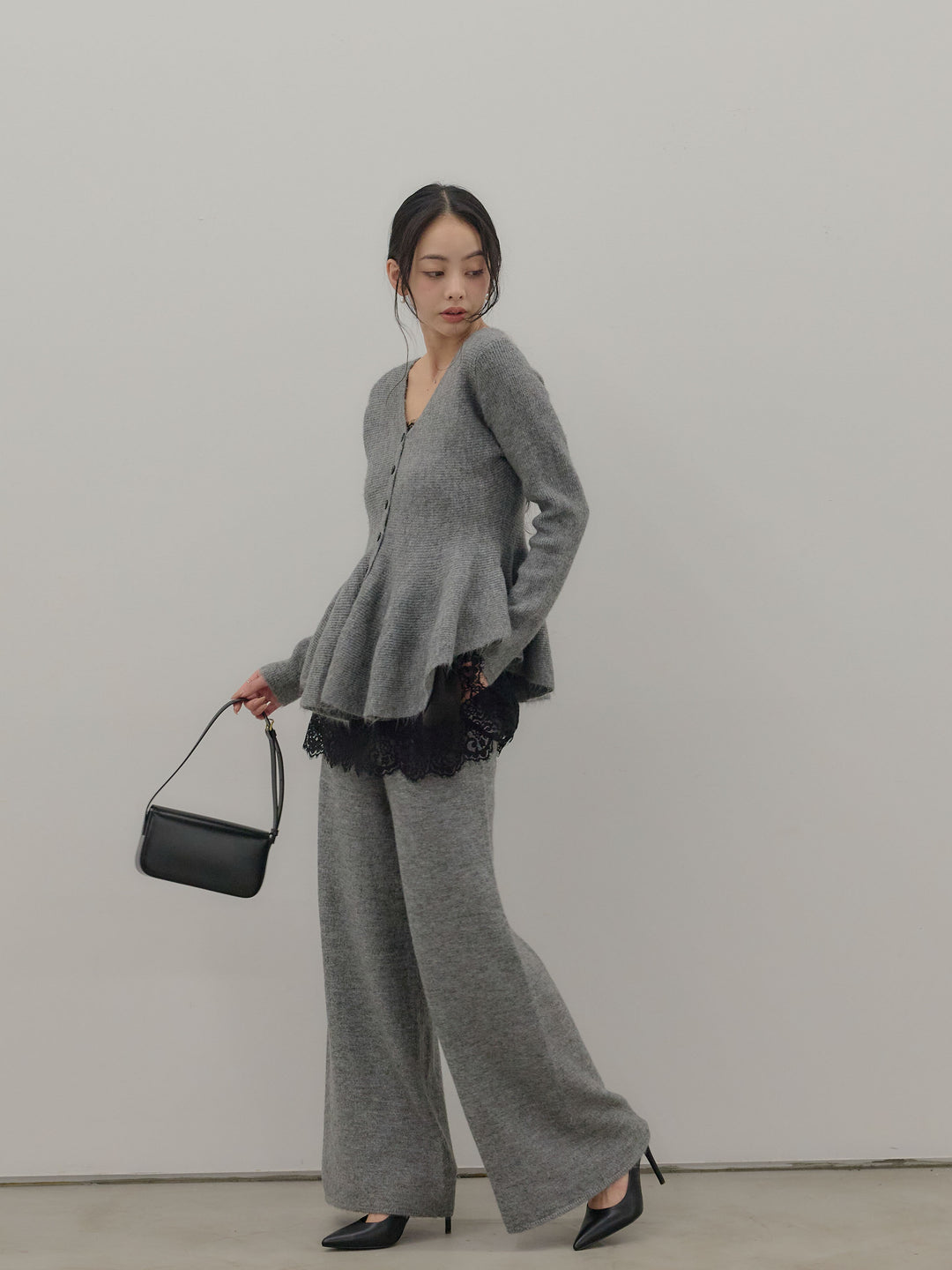 【SET】ペプラムニットトップス&パンツSET UP+レースサテンキャミソール(2set)