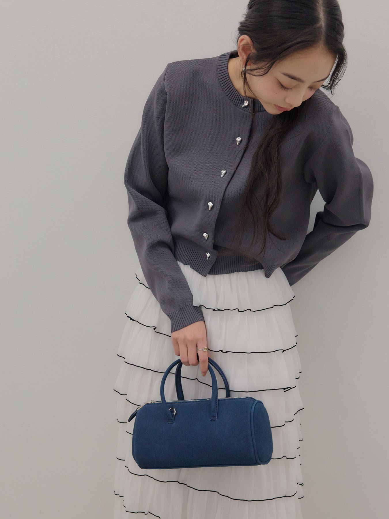 ◆ シルバーボタンコンパクトニットカーディガン