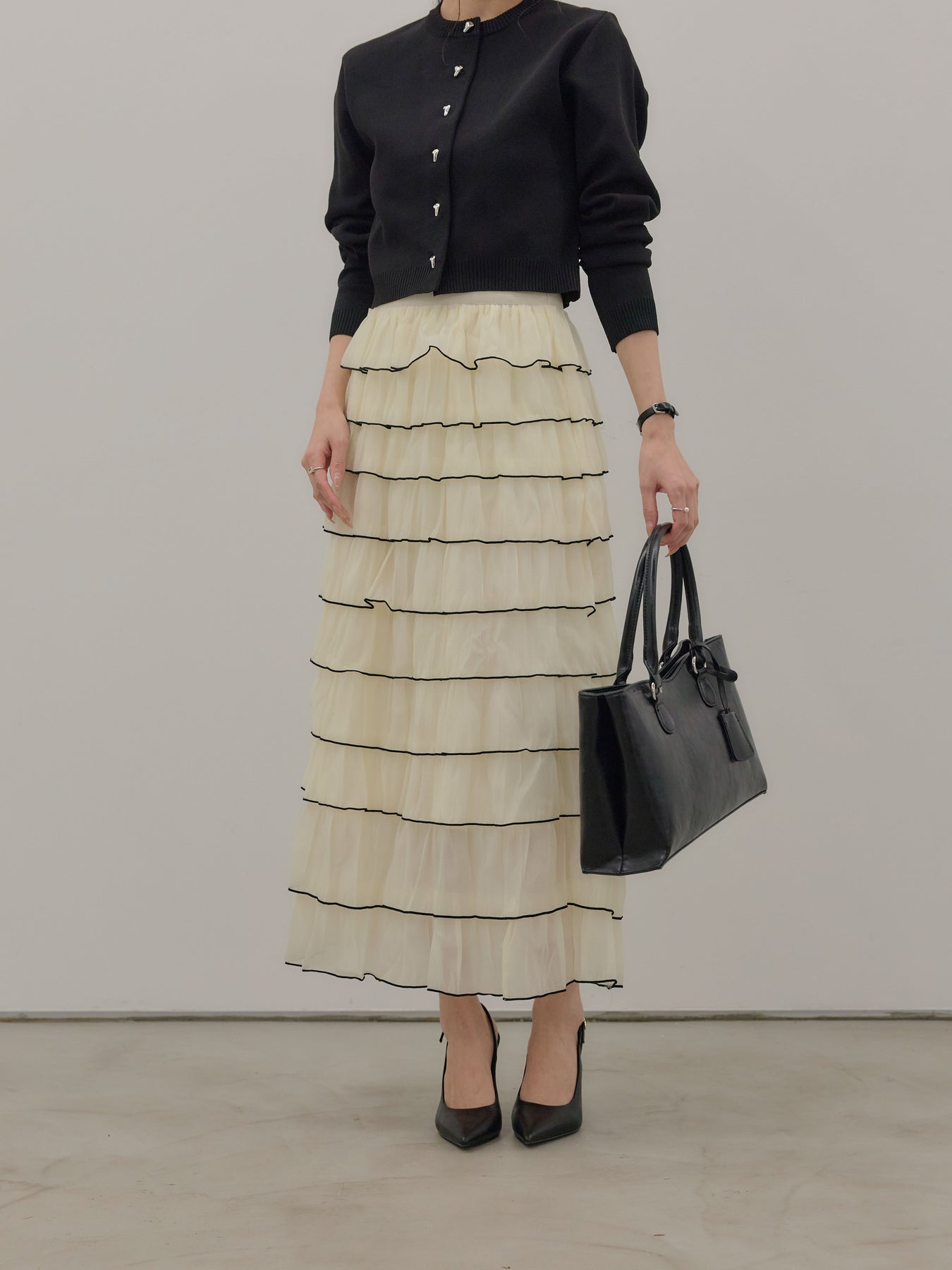 ◆ バイカラーフリルチュールスカート