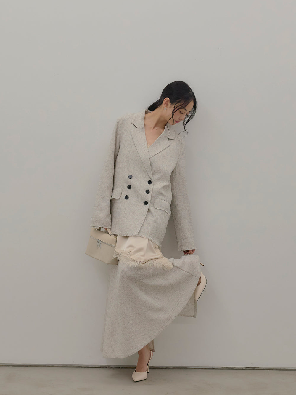 スラブネップツイードフリンジテーラードジャケット