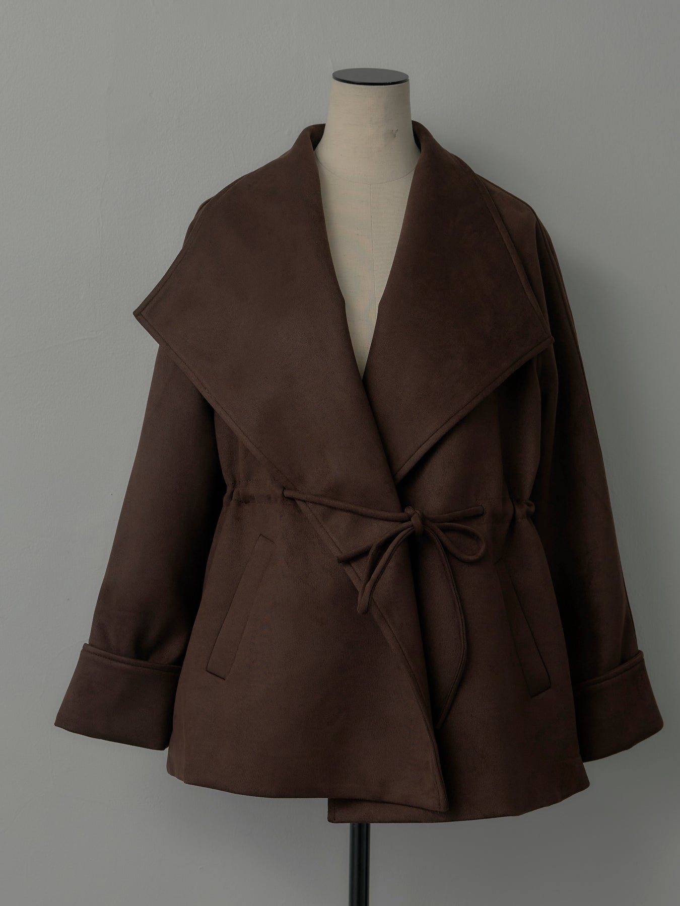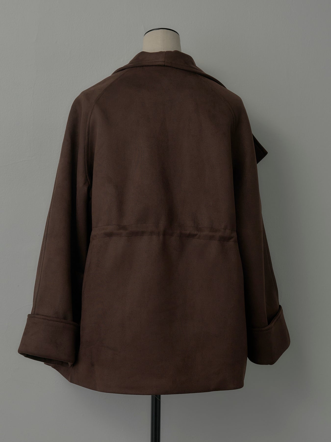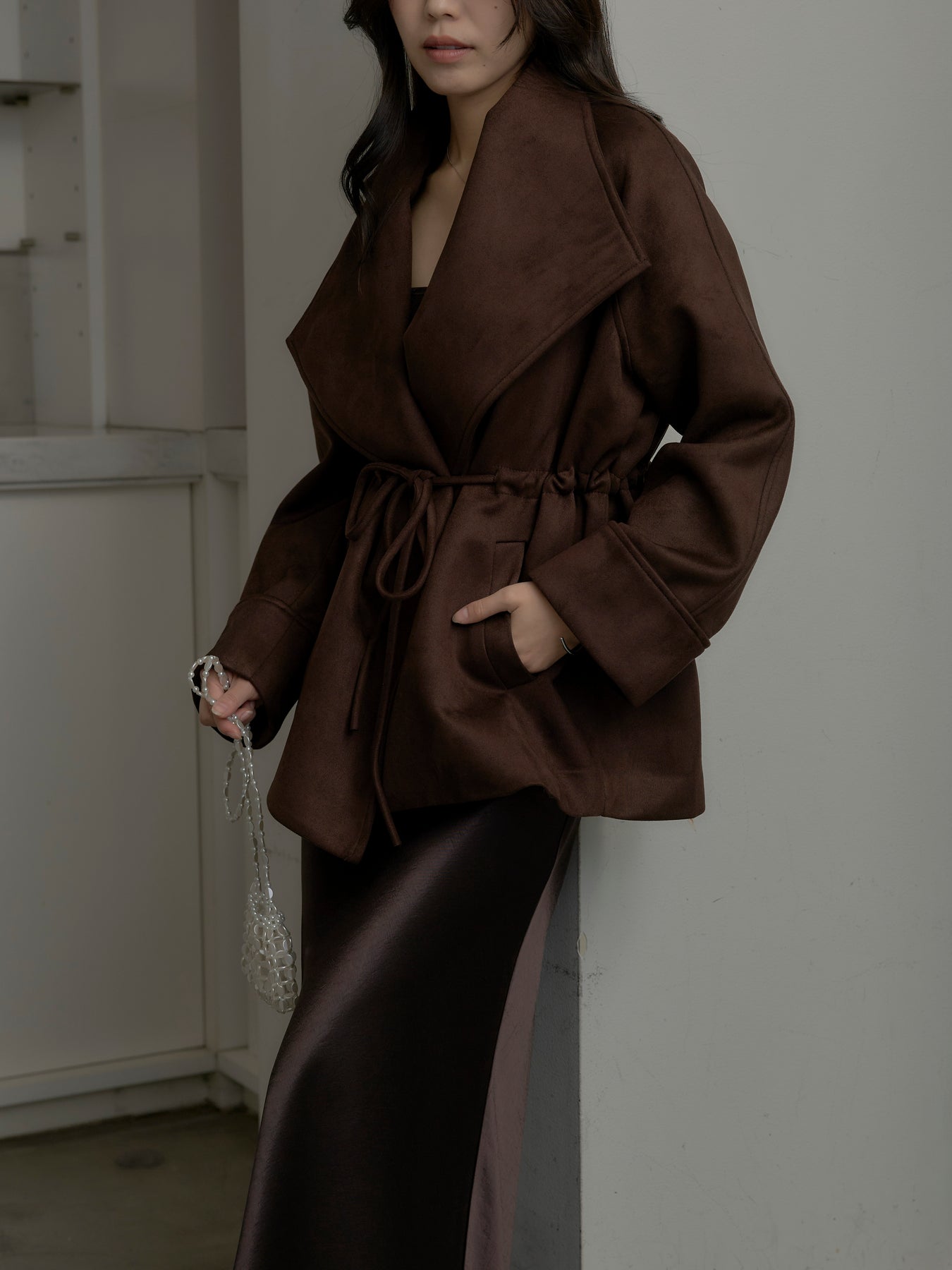 滑らかなスウェードタッチ素材を使用したBIGカラージャケット。