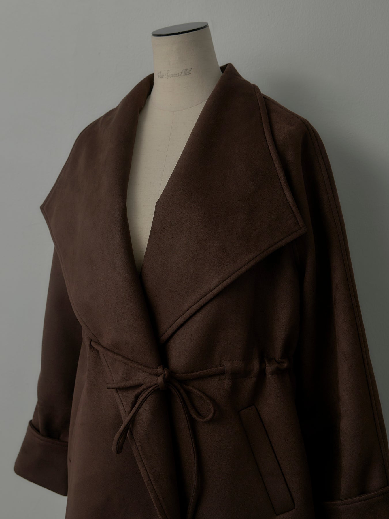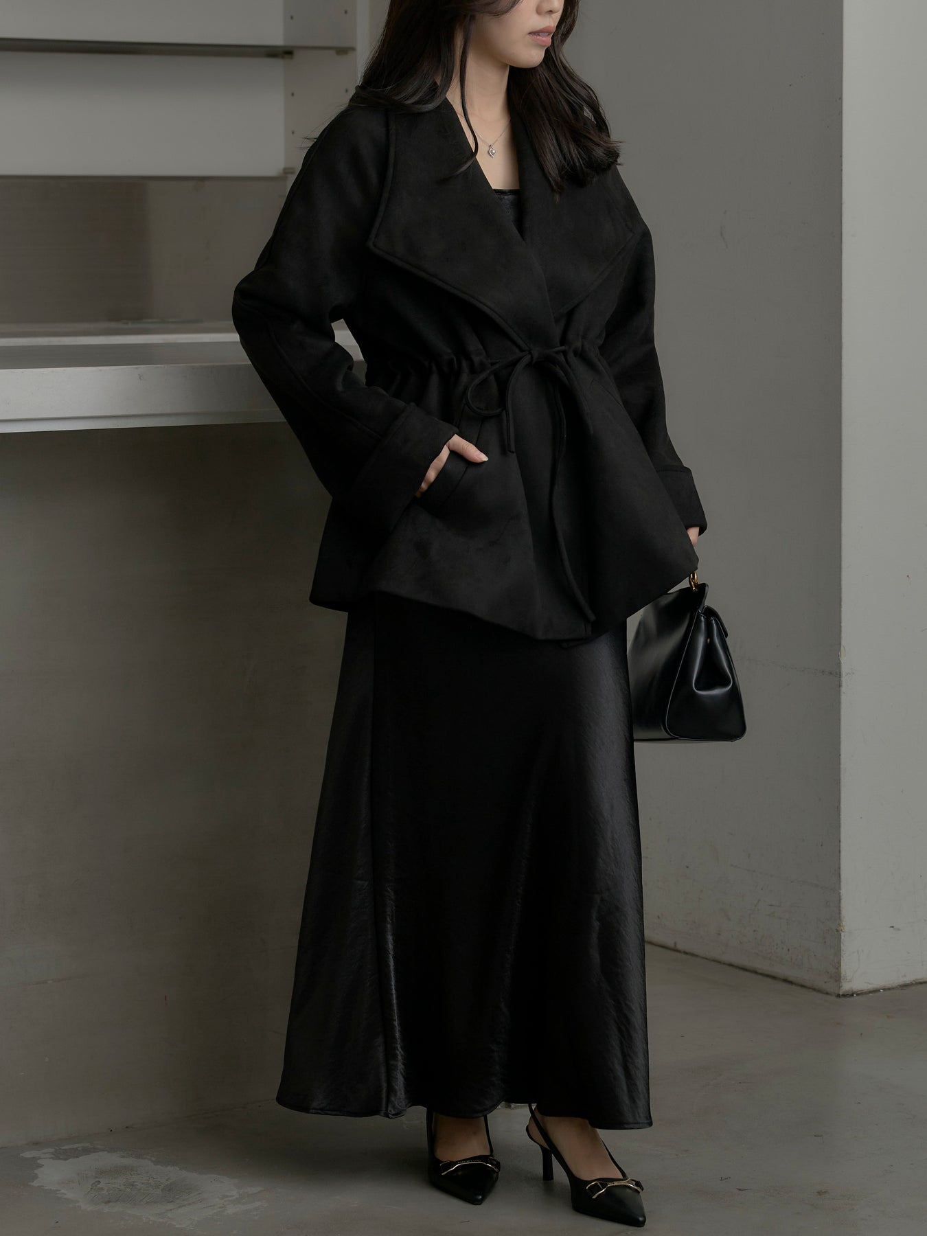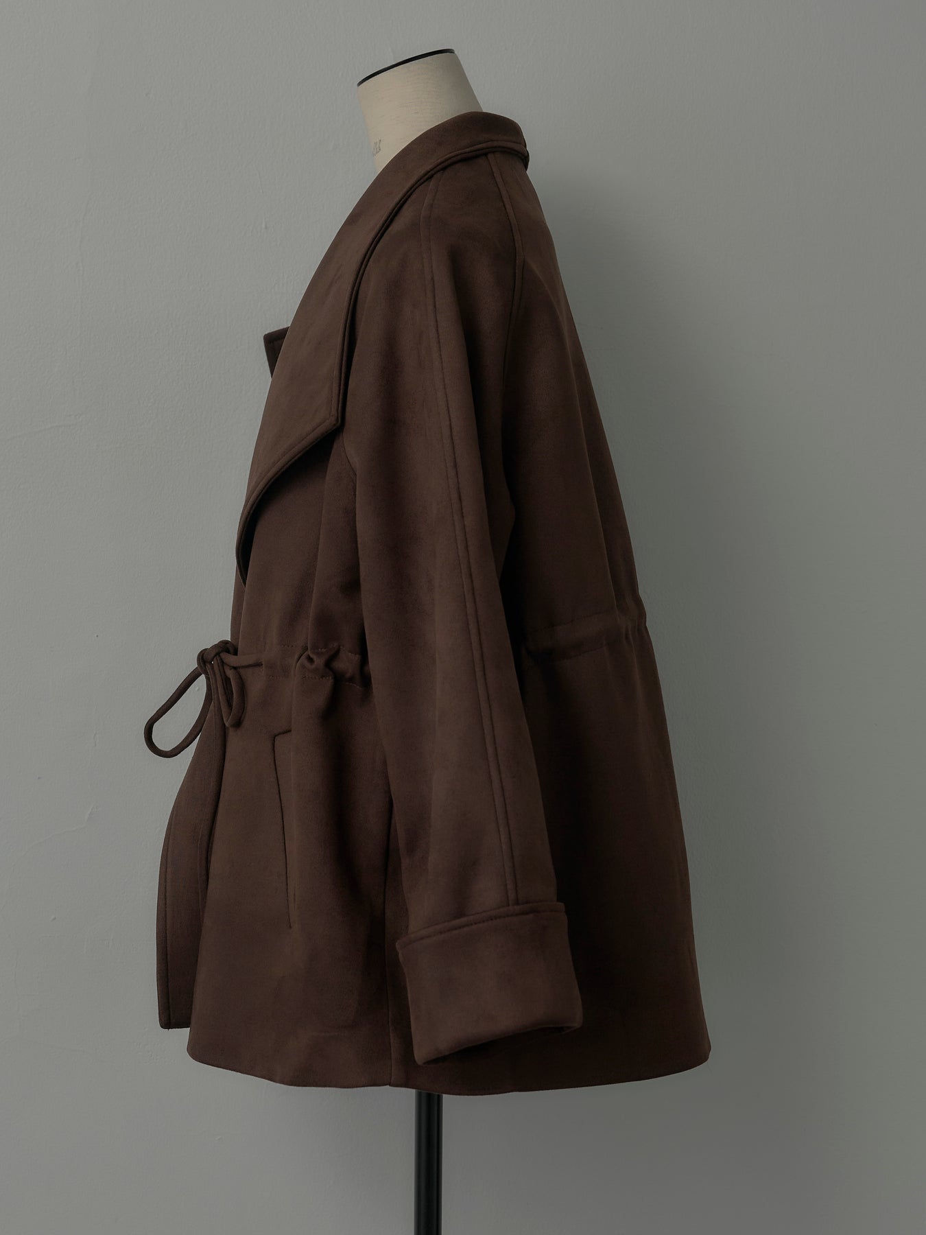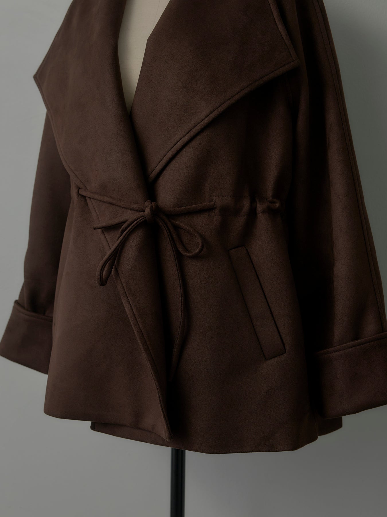 滑らかなスウェードタッチ素材を使用したBIGカラージャケット。