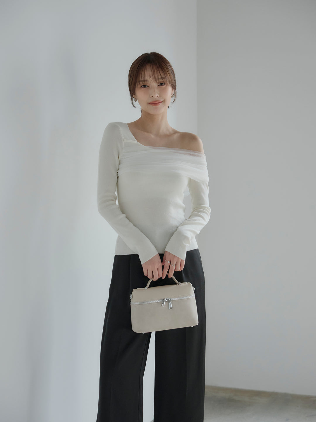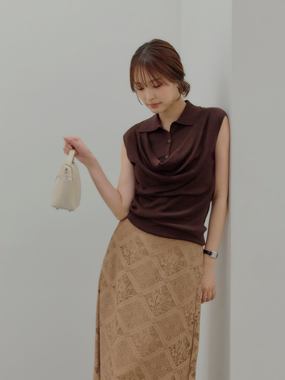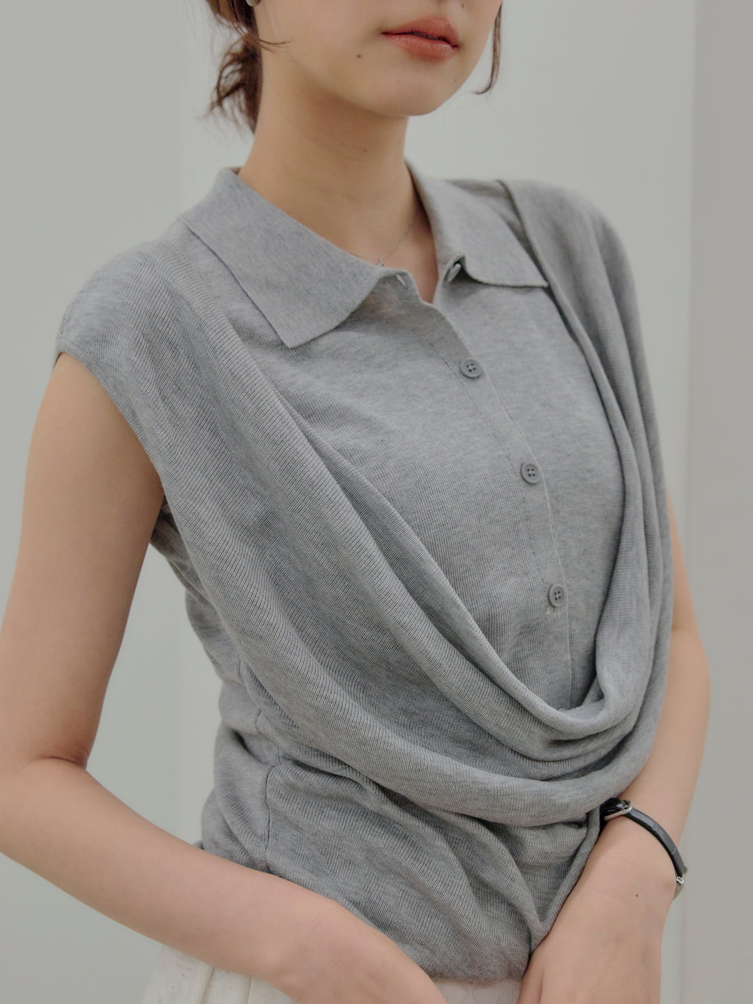 ドレープレイヤードデザイン襟付きノースリーブニットトップス