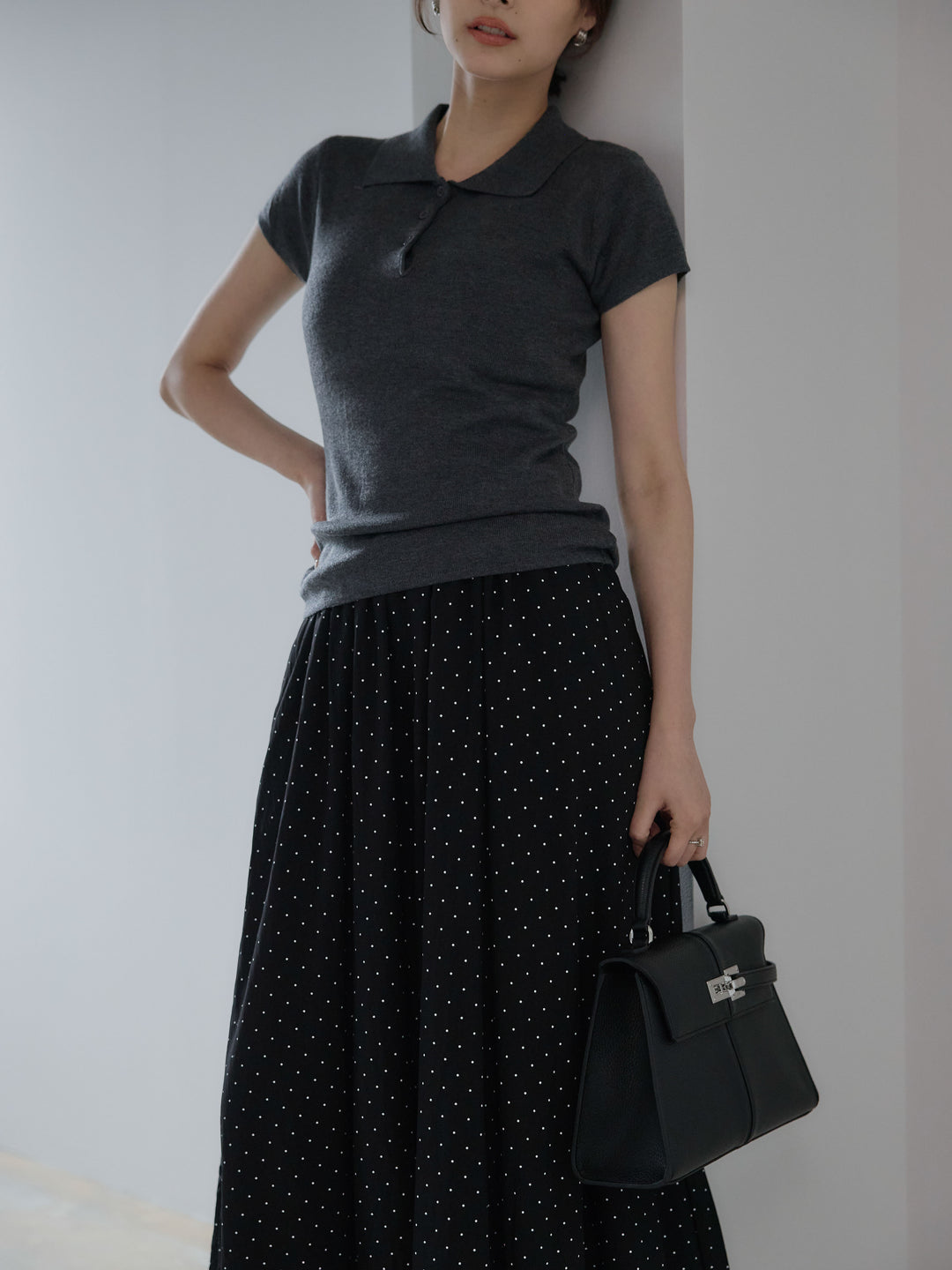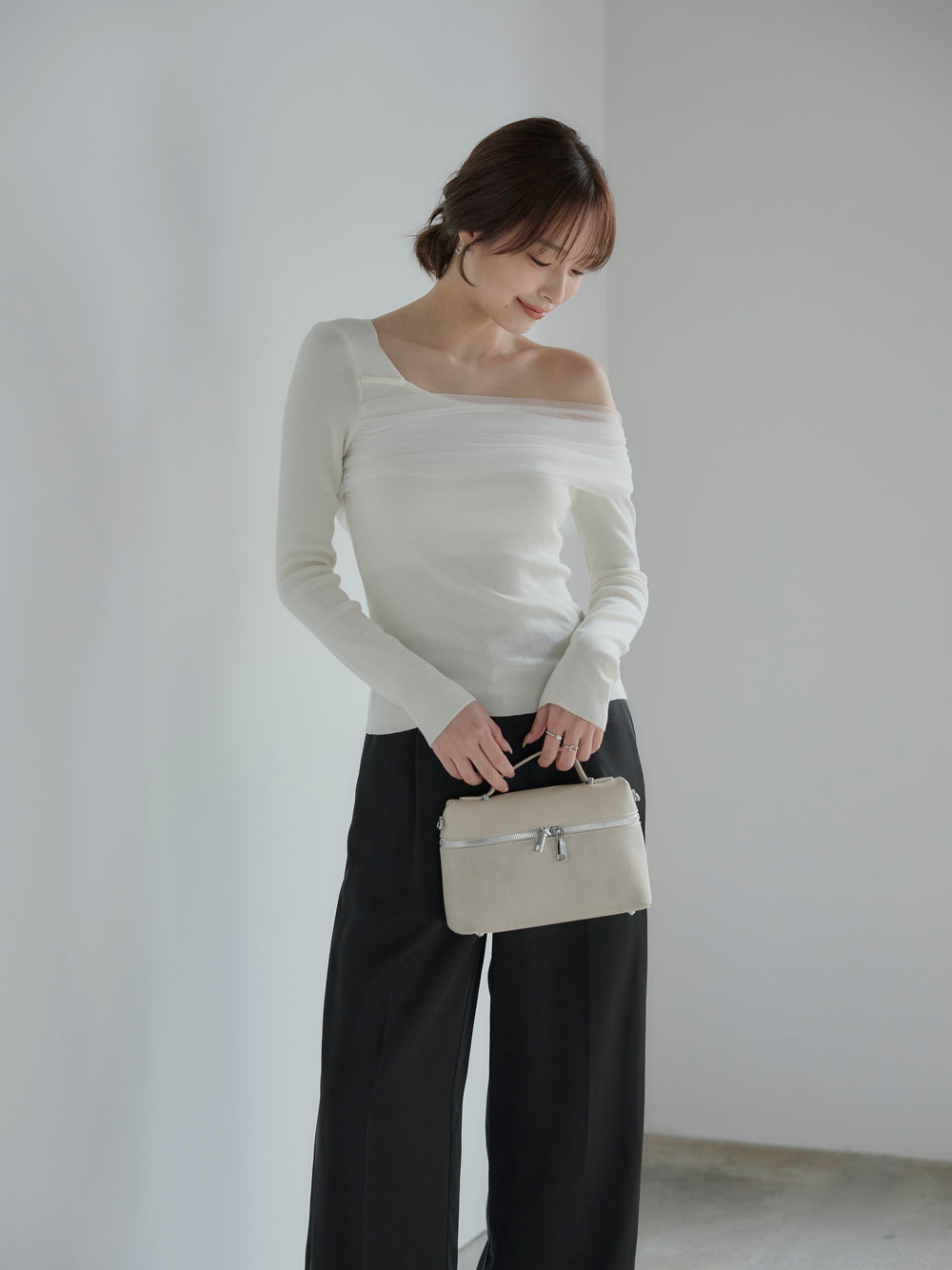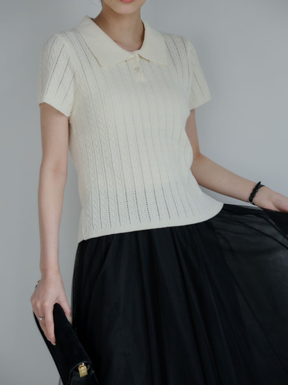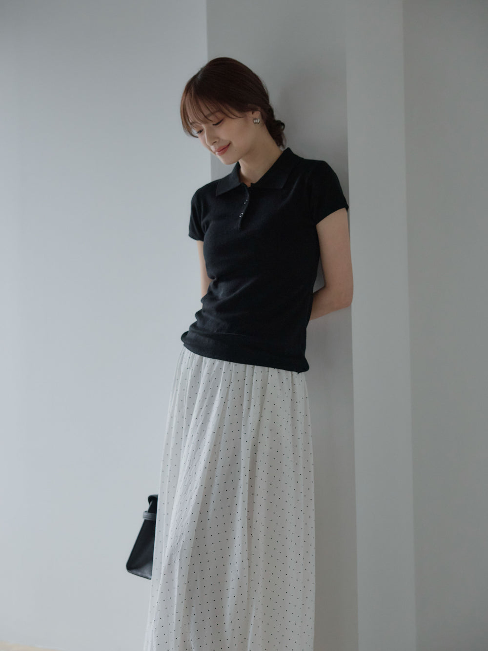 ドレープレイヤードデザイン襟付きノースリーブニットトップス