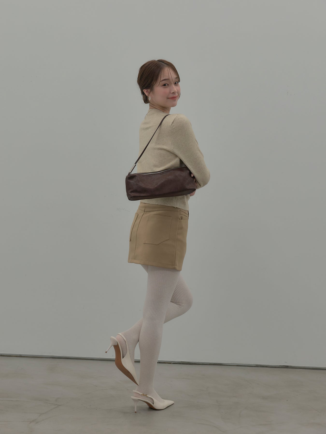 【モデル着用サイズ:M】滑らかなスムース素材で仕立てたミニスカート。