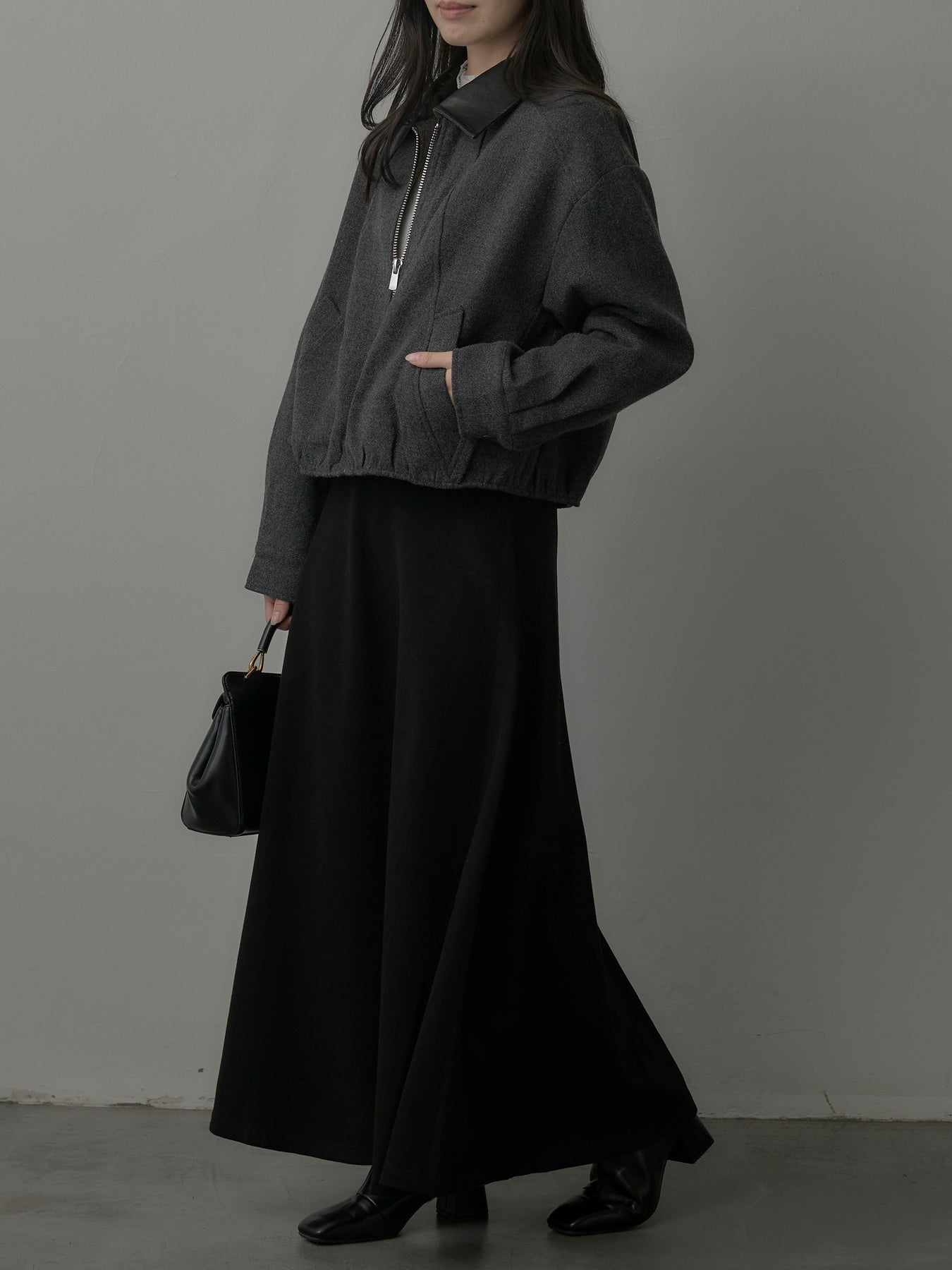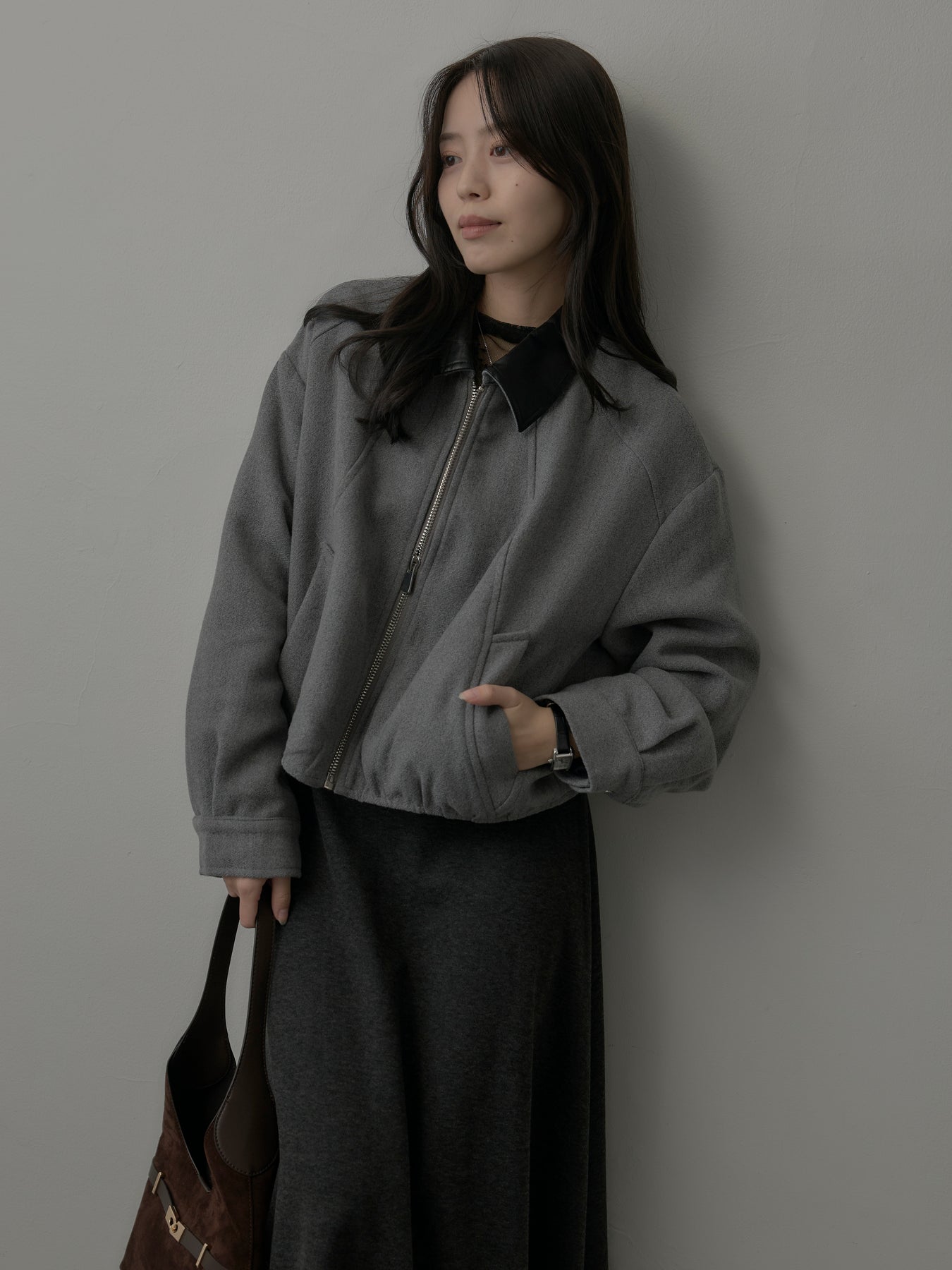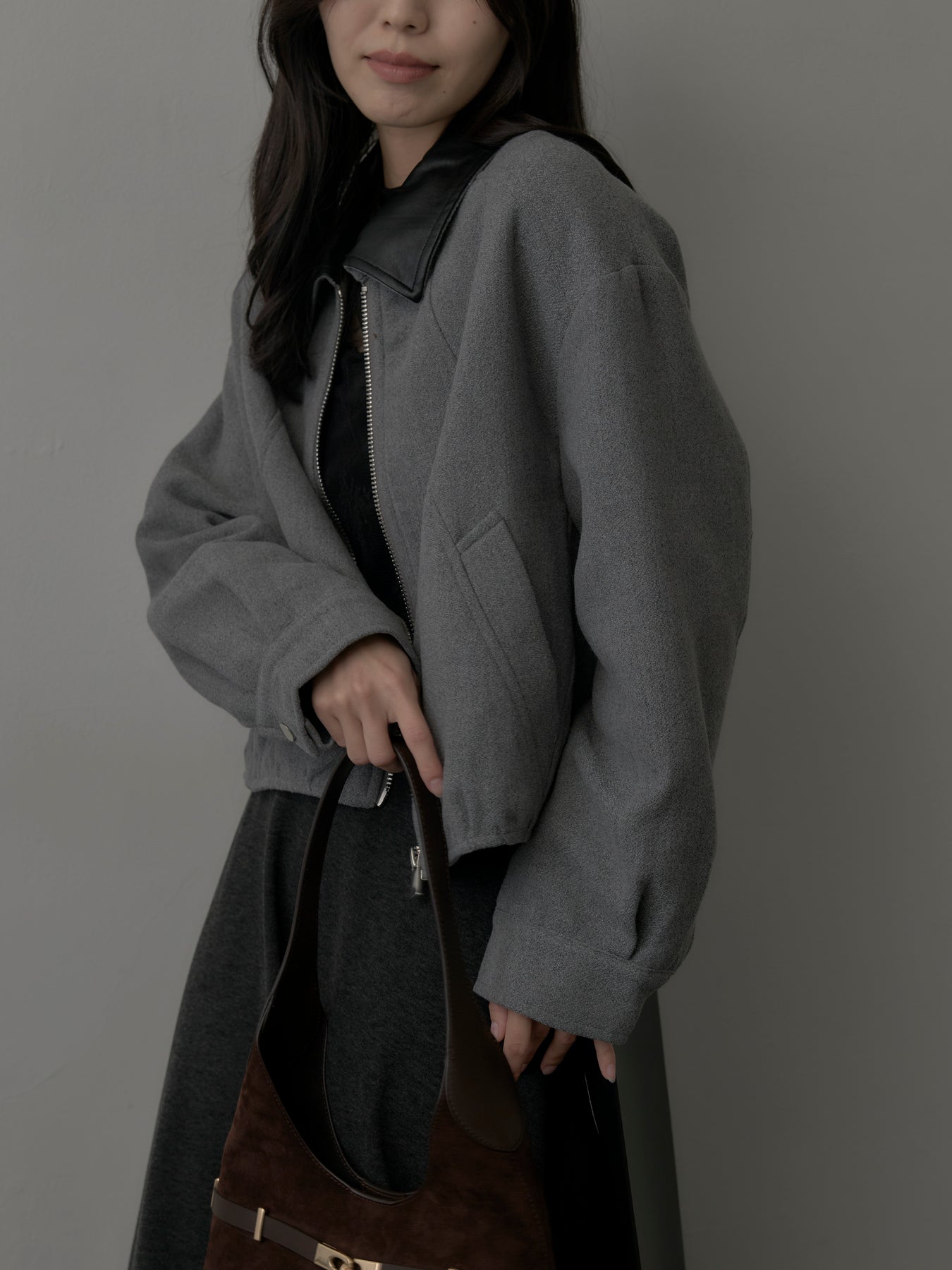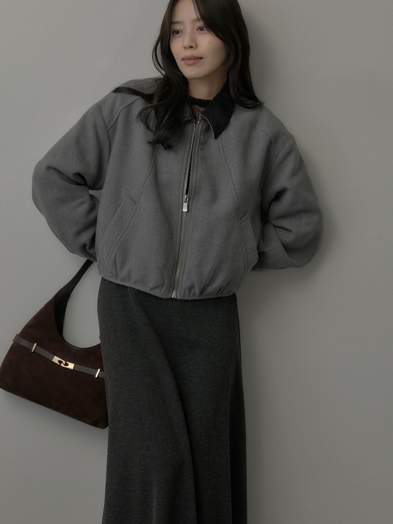 異素材の組み合わせがモードな雰囲気を生み、羽織るだけでスタイリングを引き締めます。
