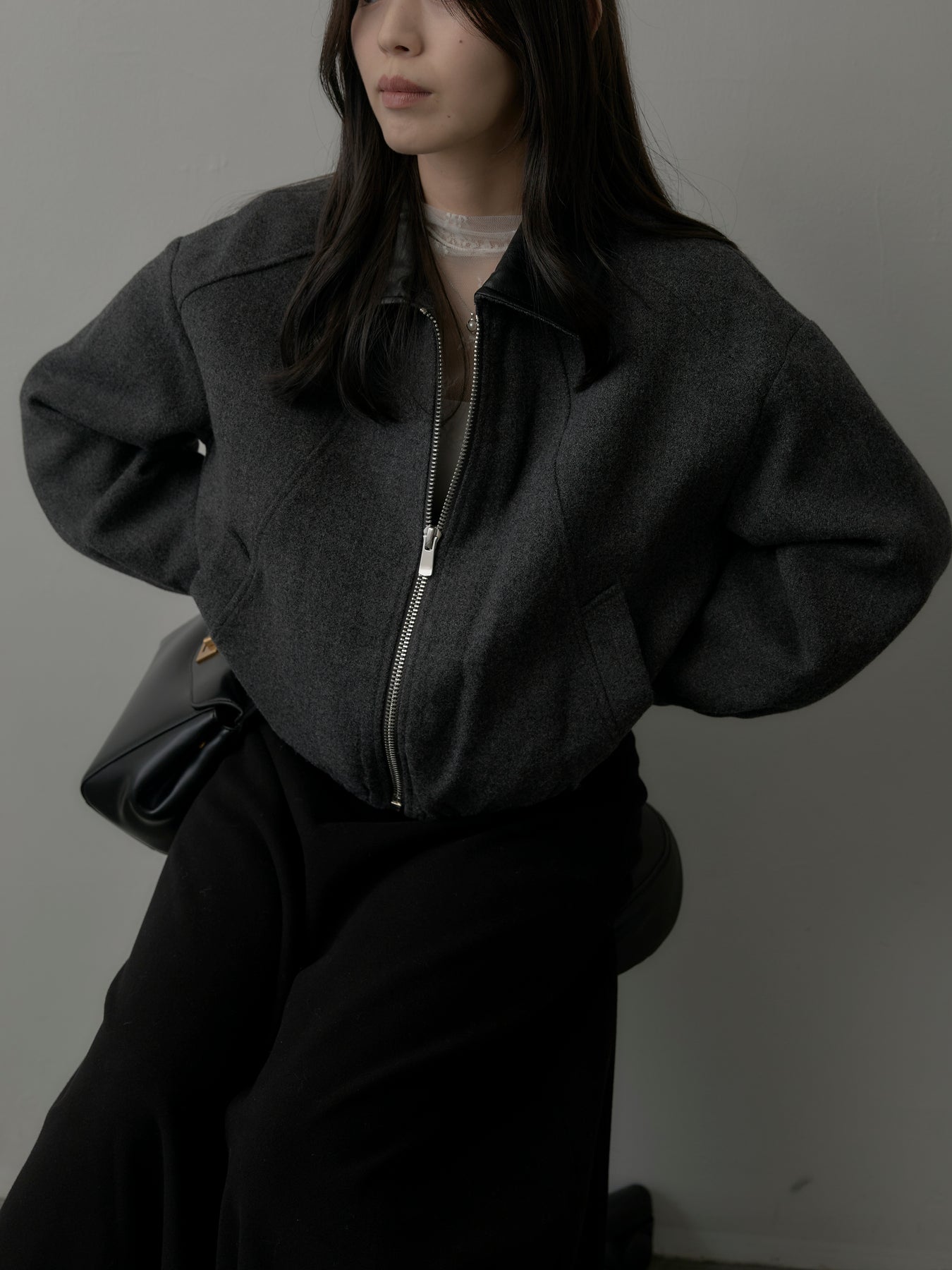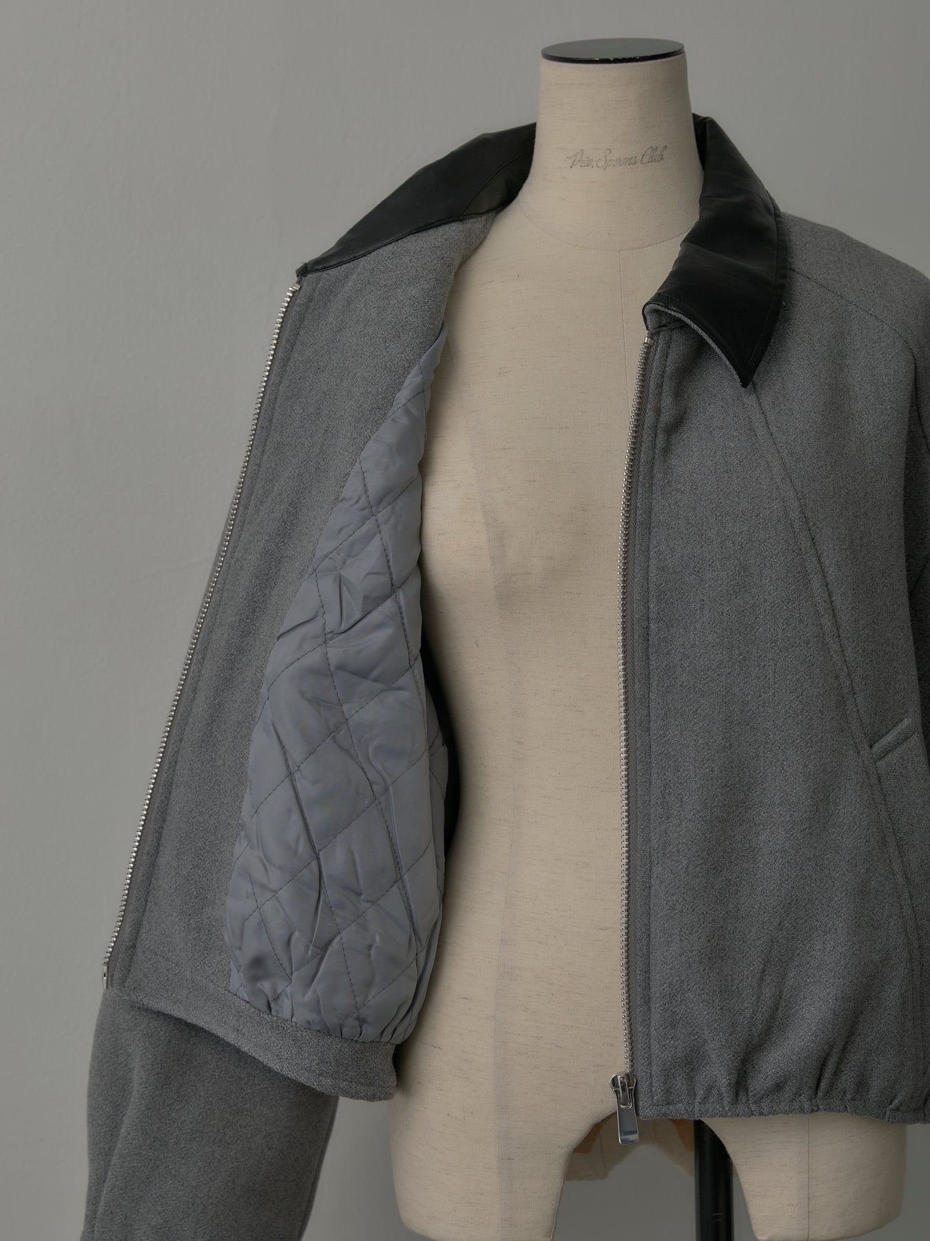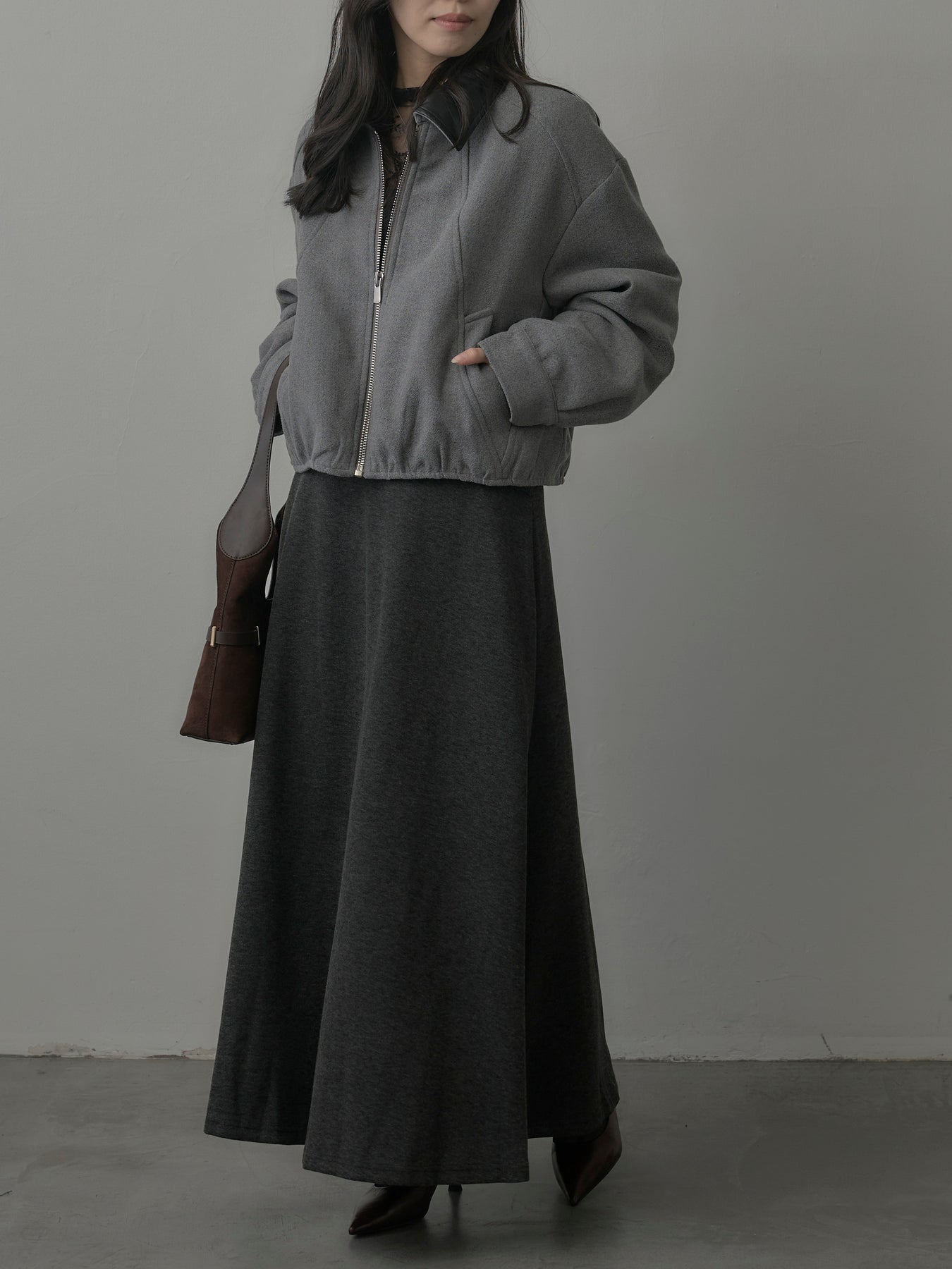 異素材の組み合わせがモードな雰囲気を生み、羽織るだけでスタイリングを引き締めます。