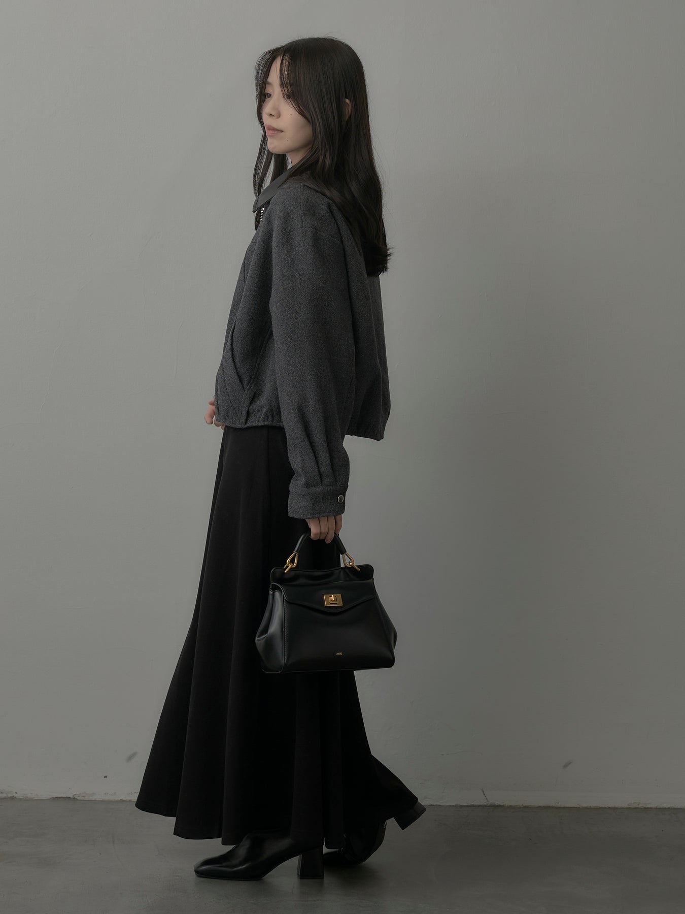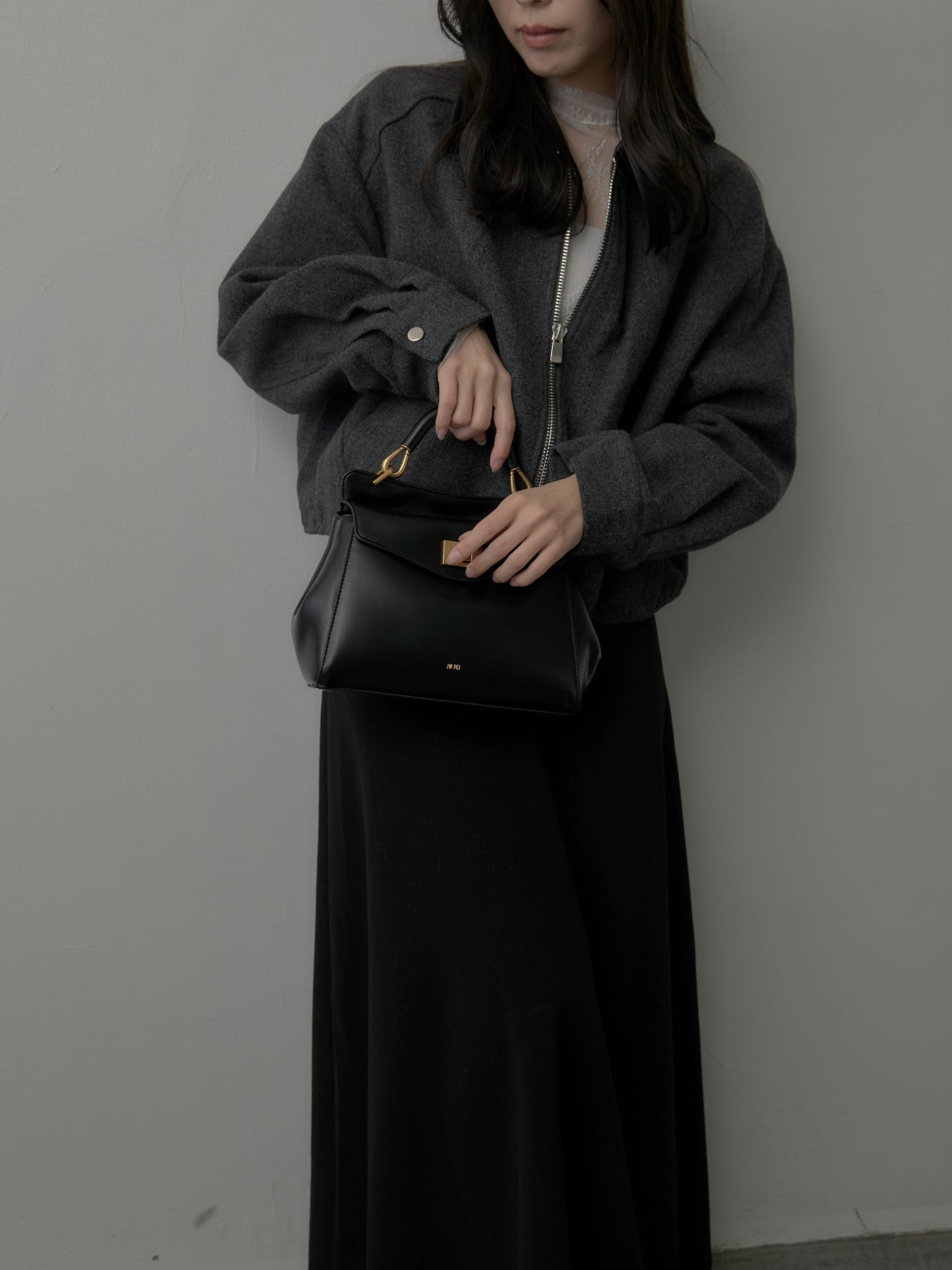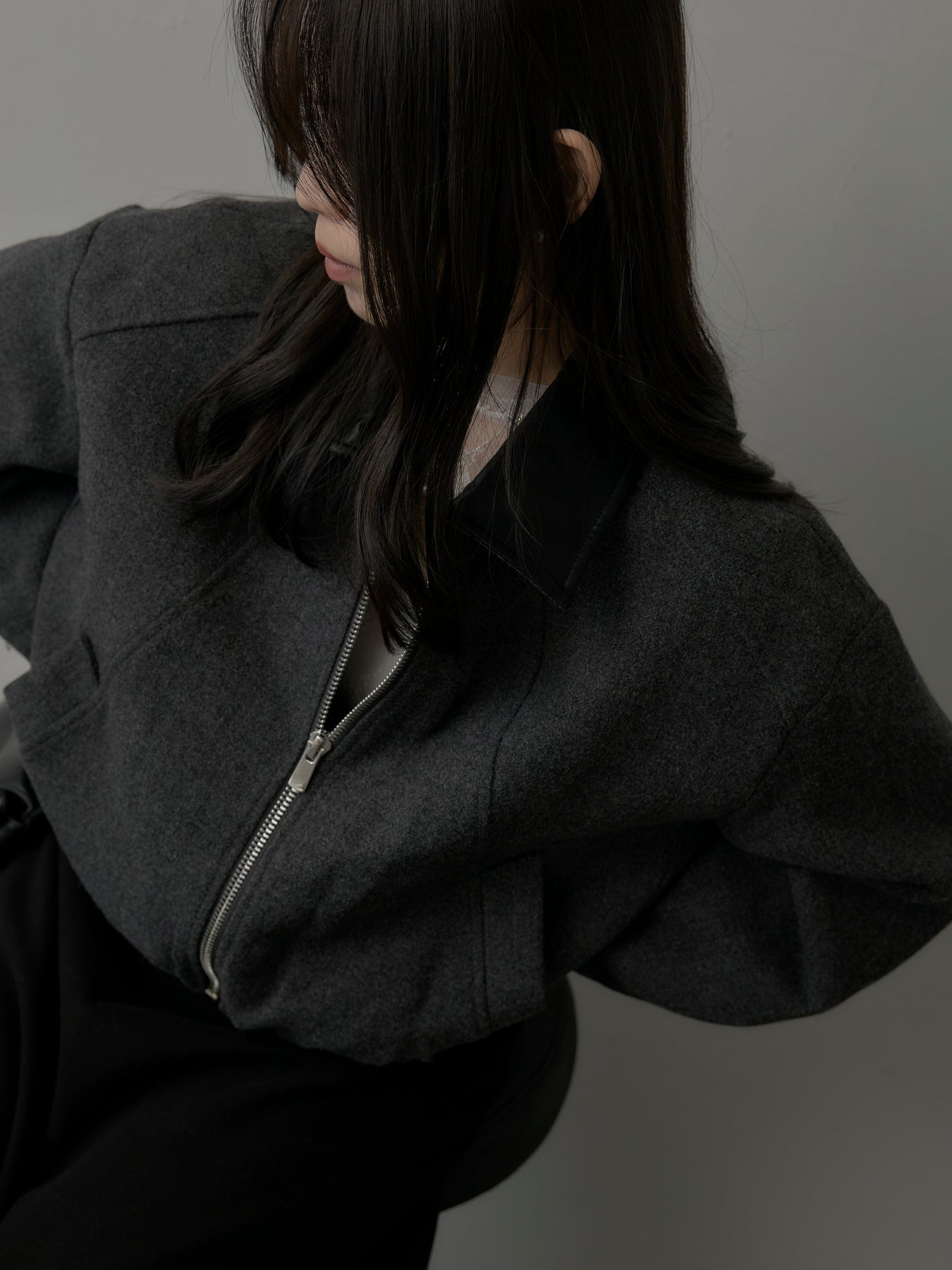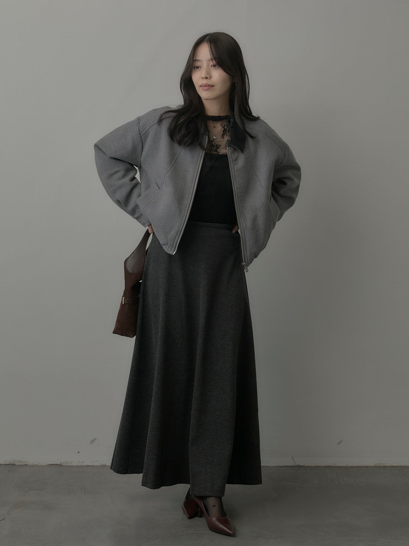 異素材の組み合わせがモードな雰囲気を生み、羽織るだけでスタイリングを引き締めます。