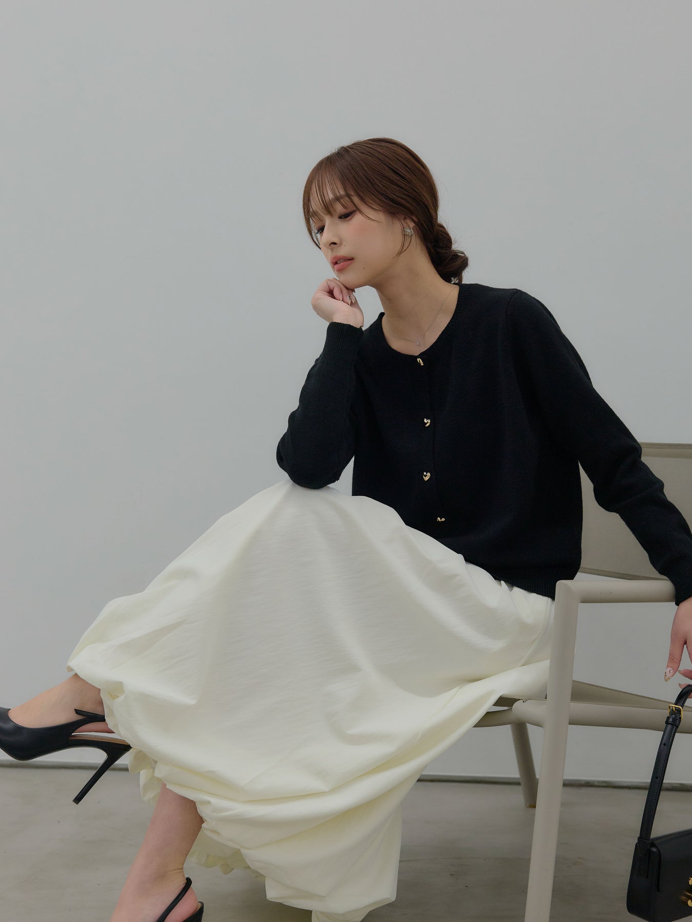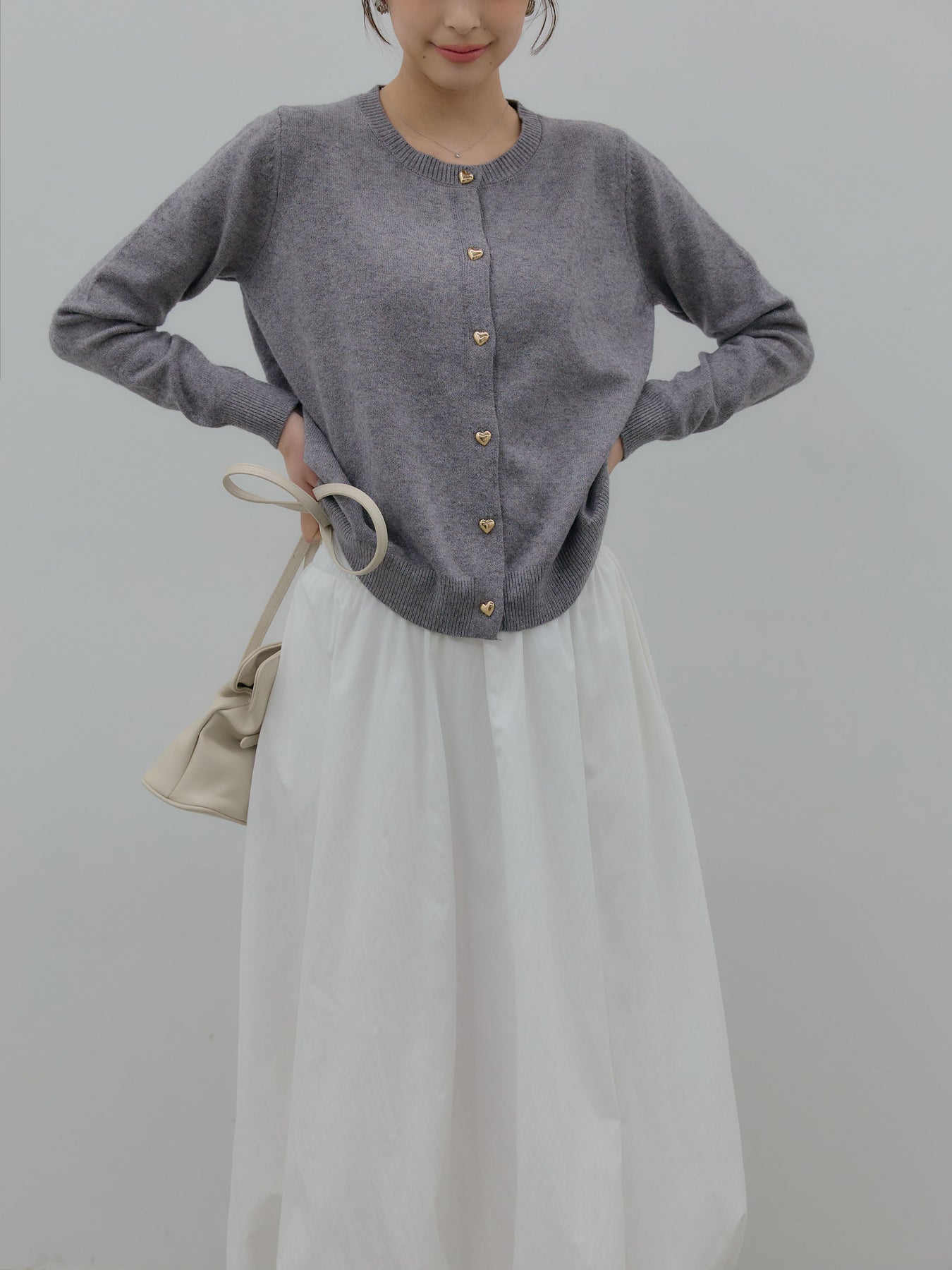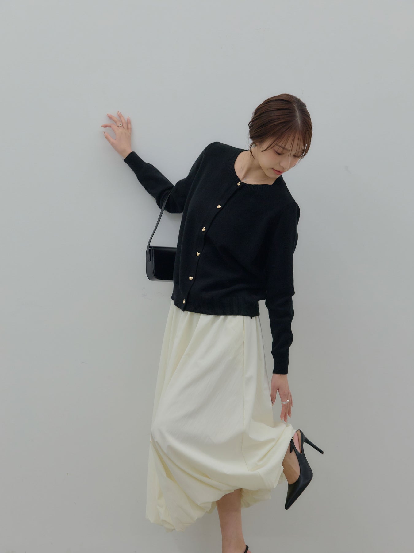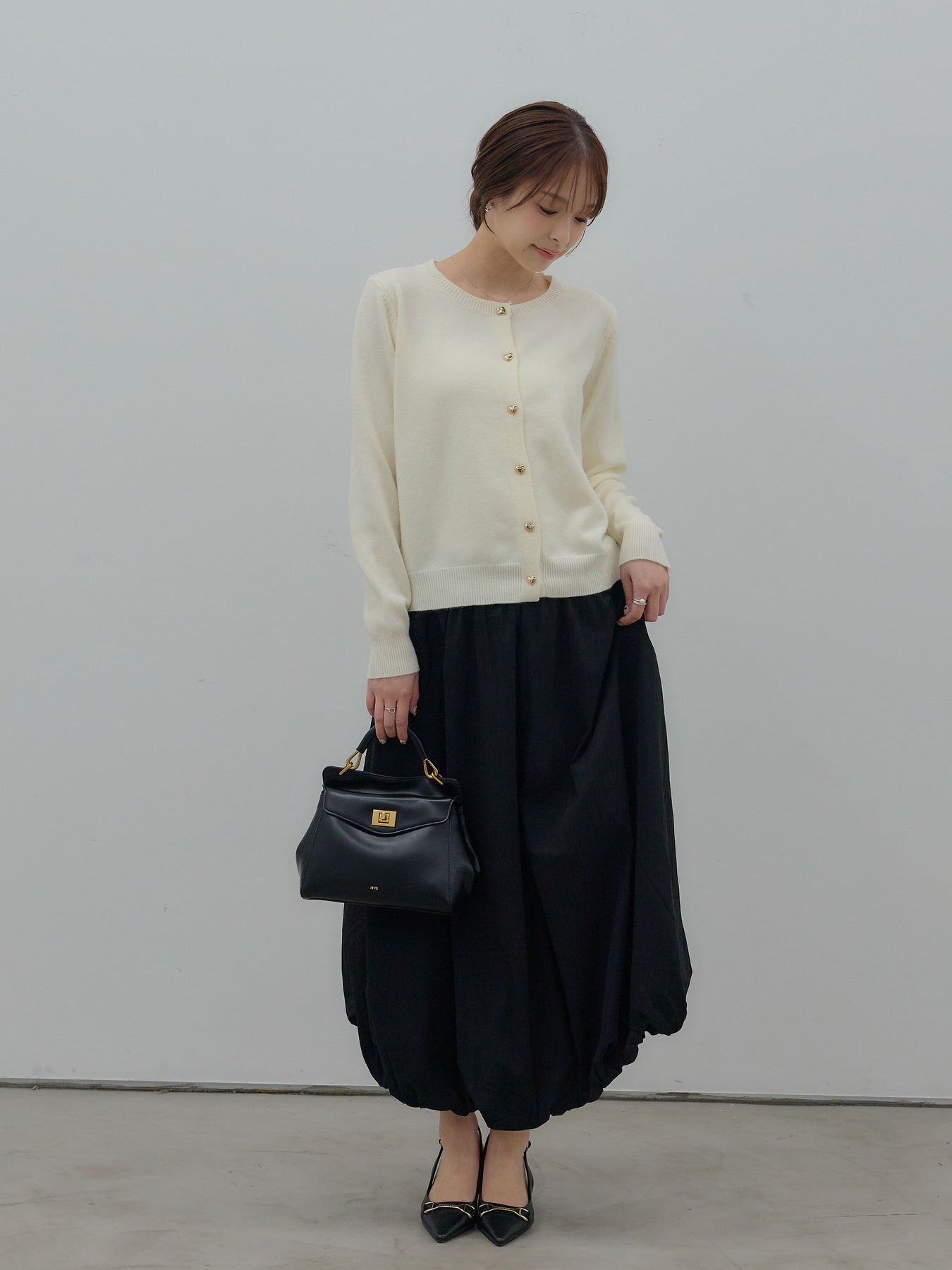 ふんわりと丸みのあるシルエットが印象的なバルーンスカート。 軽やかな素材を使用し、ボリュームがありながらも重たく見えないバランスに仕上げました。 ウエストまわりはすっきりと、 裾に向かって自然に膨らむフォルムが、女性らしい柔らかさを演出。 動くたびに揺れる表情が、スタイリングに奥行きを与えます。 シンプルなトップスと合わせるだけで、 ほどよく華やぎのあるコーディネートが完成します。
