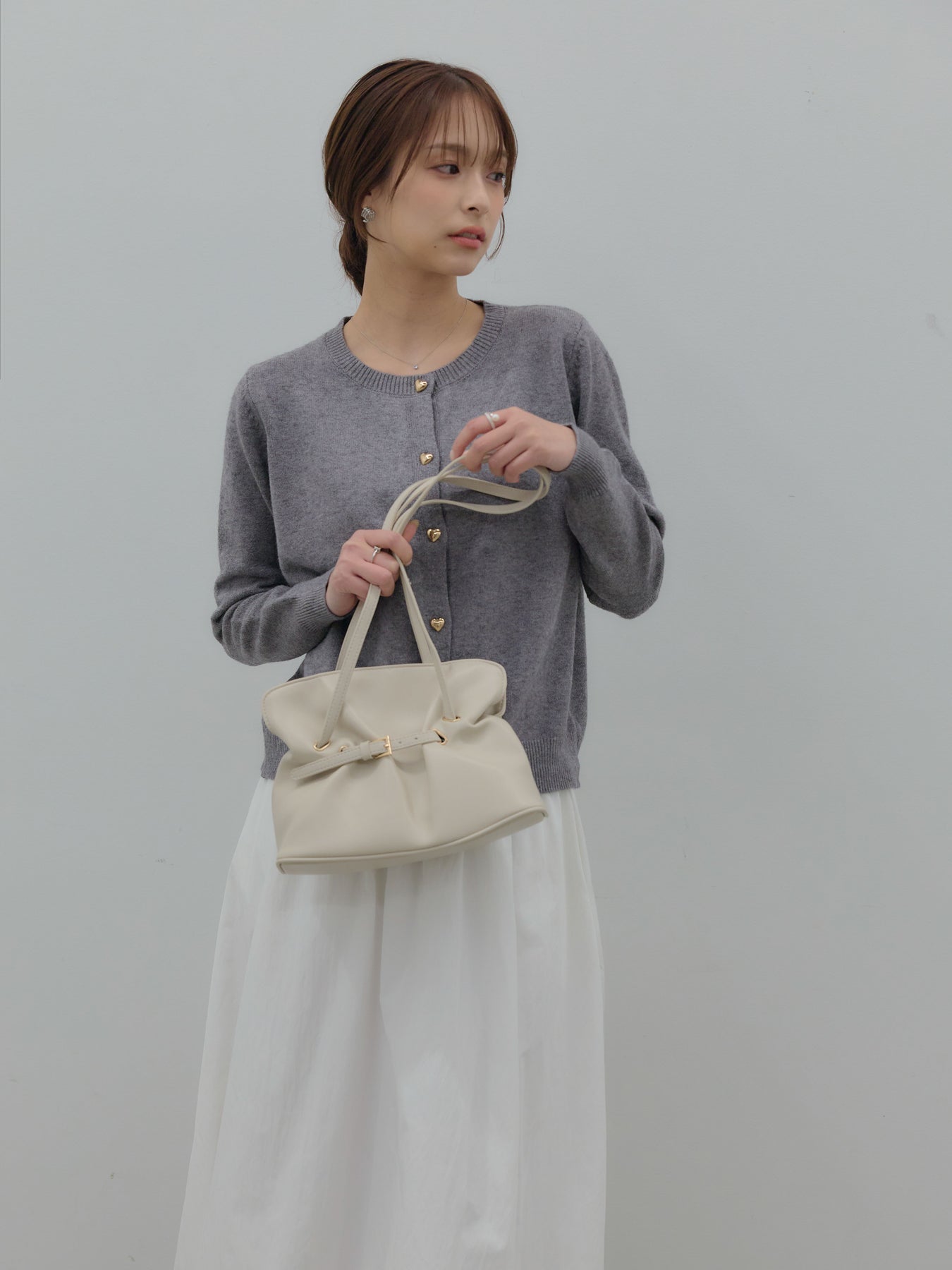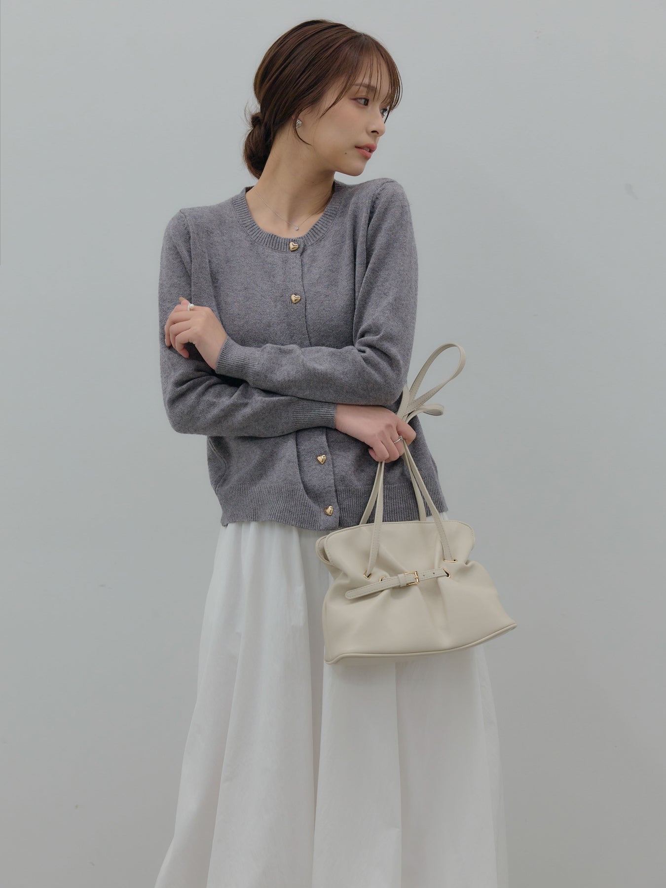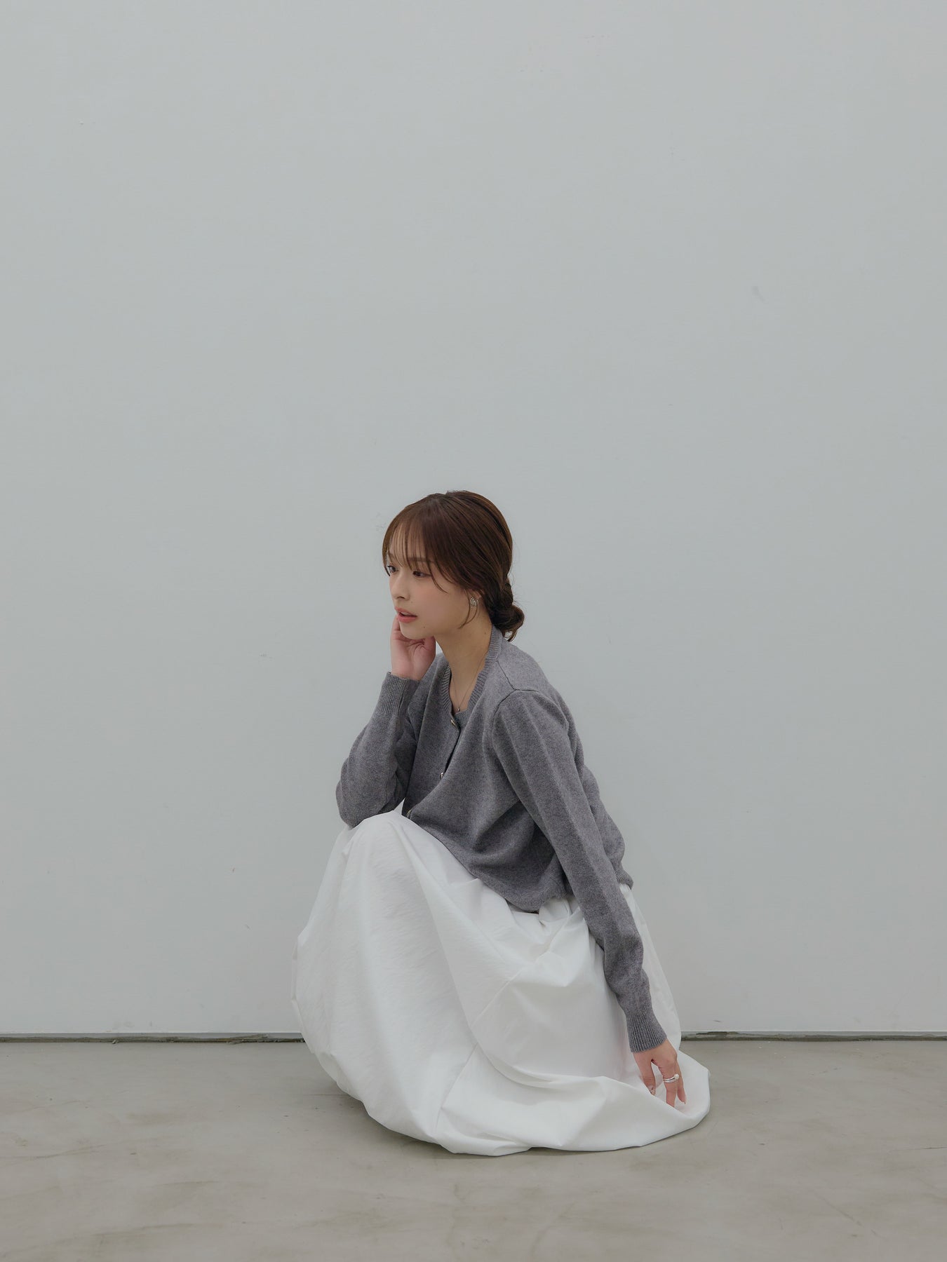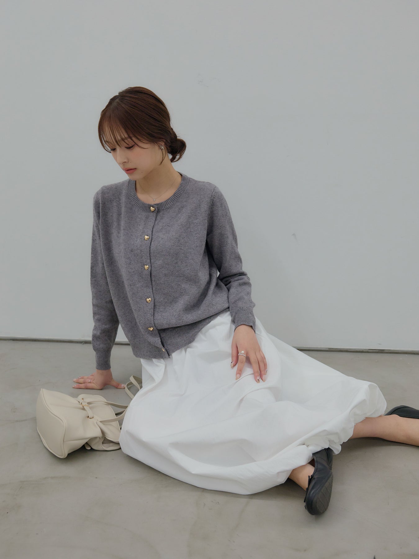 ふんわりと丸みのあるシルエットが印象的なバルーンスカート。 軽やかな素材を使用し、ボリュームがありながらも重たく見えないバランスに仕上げました。 ウエストまわりはすっきりと、 裾に向かって自然に膨らむフォルムが、女性らしい柔らかさを演出。 動くたびに揺れる表情が、スタイリングに奥行きを与えます。 シンプルなトップスと合わせるだけで、 ほどよく華やぎのあるコーディネートが完成します。