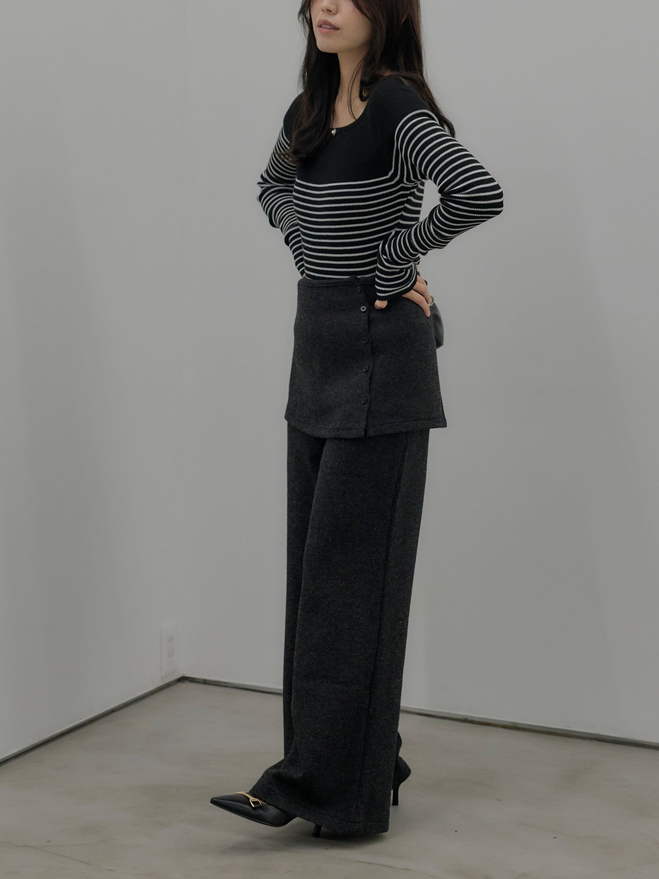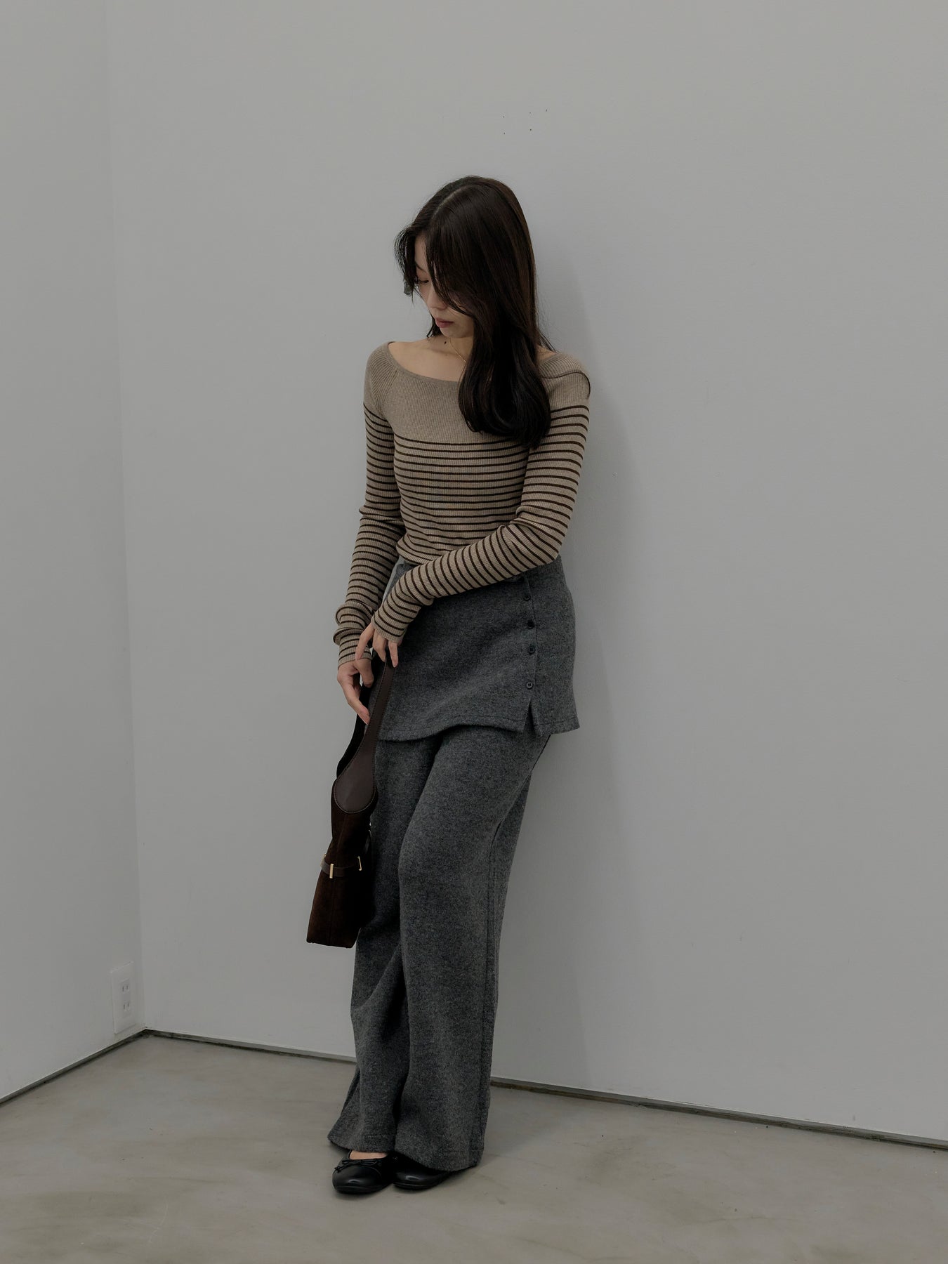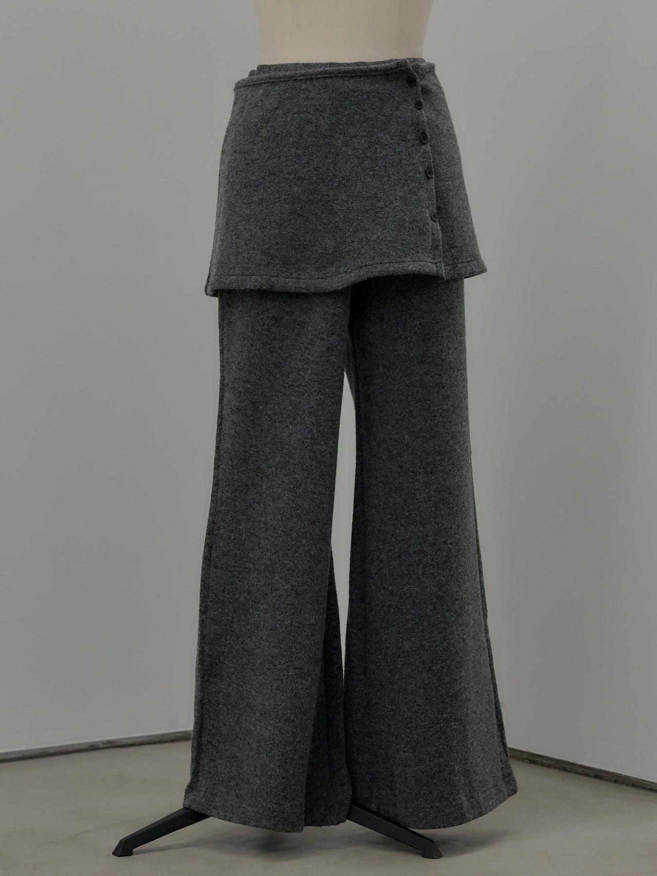 表情豊かなミックスヤーンを使用したニットラップパンツ。 ラップデザインが動きのあるシルエットを生み出し、リラックス感の中にもこなれた印象をプラス。 柔らかな風合いで穿き心地も良く、シンプルなトップスと合わせるだけで季節感のあるスタイルが完成します。