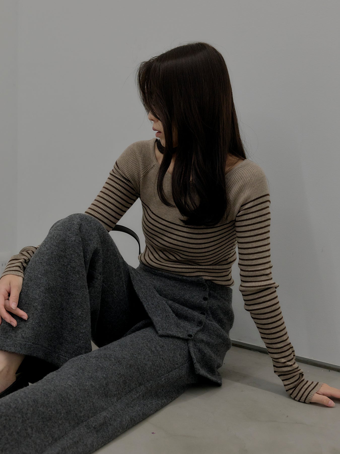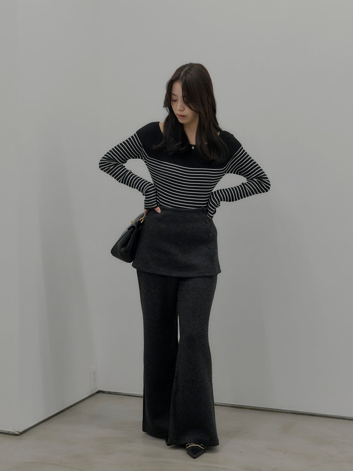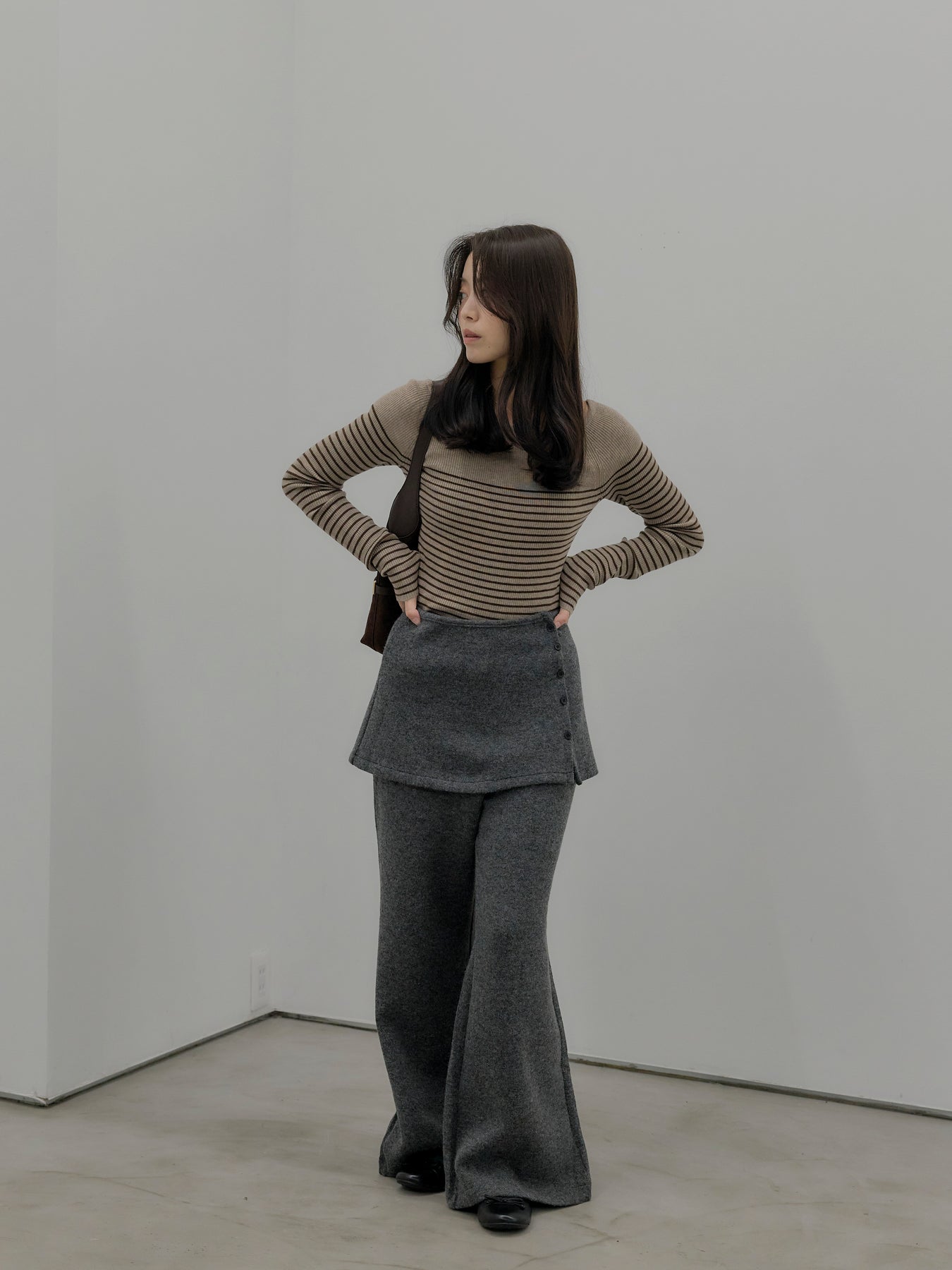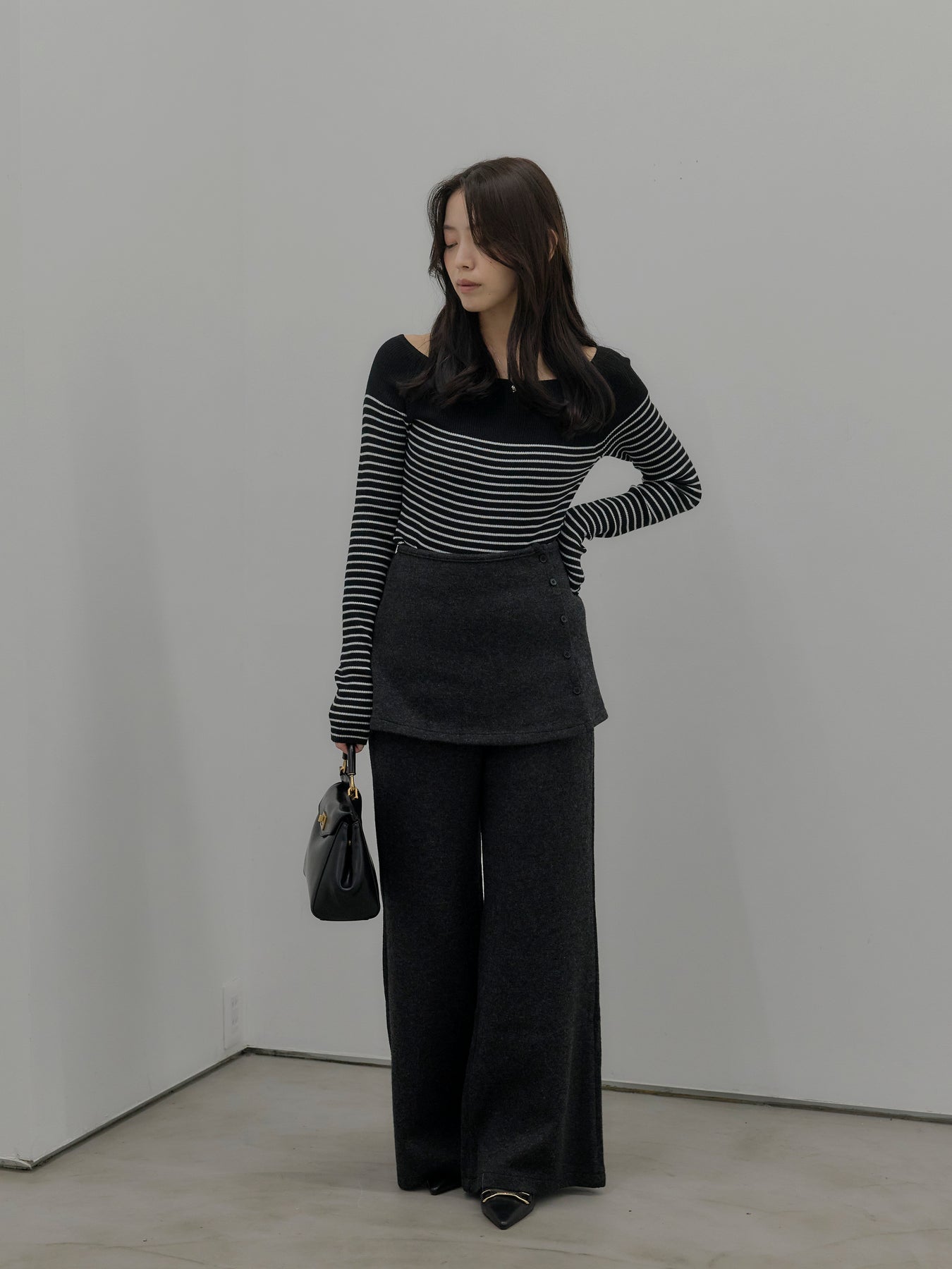 表情豊かなミックスヤーンを使用したニットラップパンツ。 ラップデザインが動きのあるシルエットを生み出し、リラックス感の中にもこなれた印象をプラス。 柔らかな風合いで穿き心地も良く、シンプルなトップスと合わせるだけで季節感のあるスタイルが完成します。