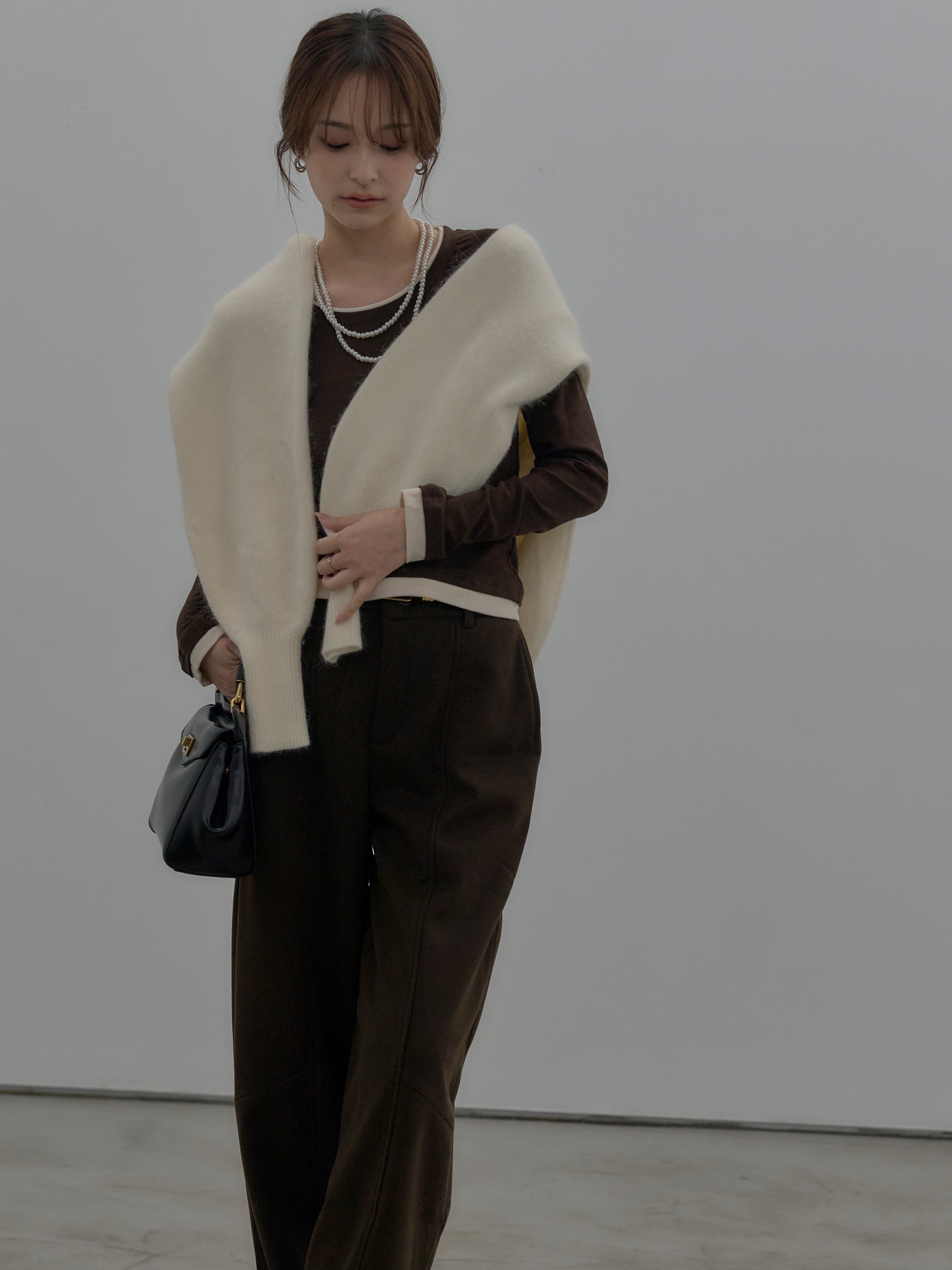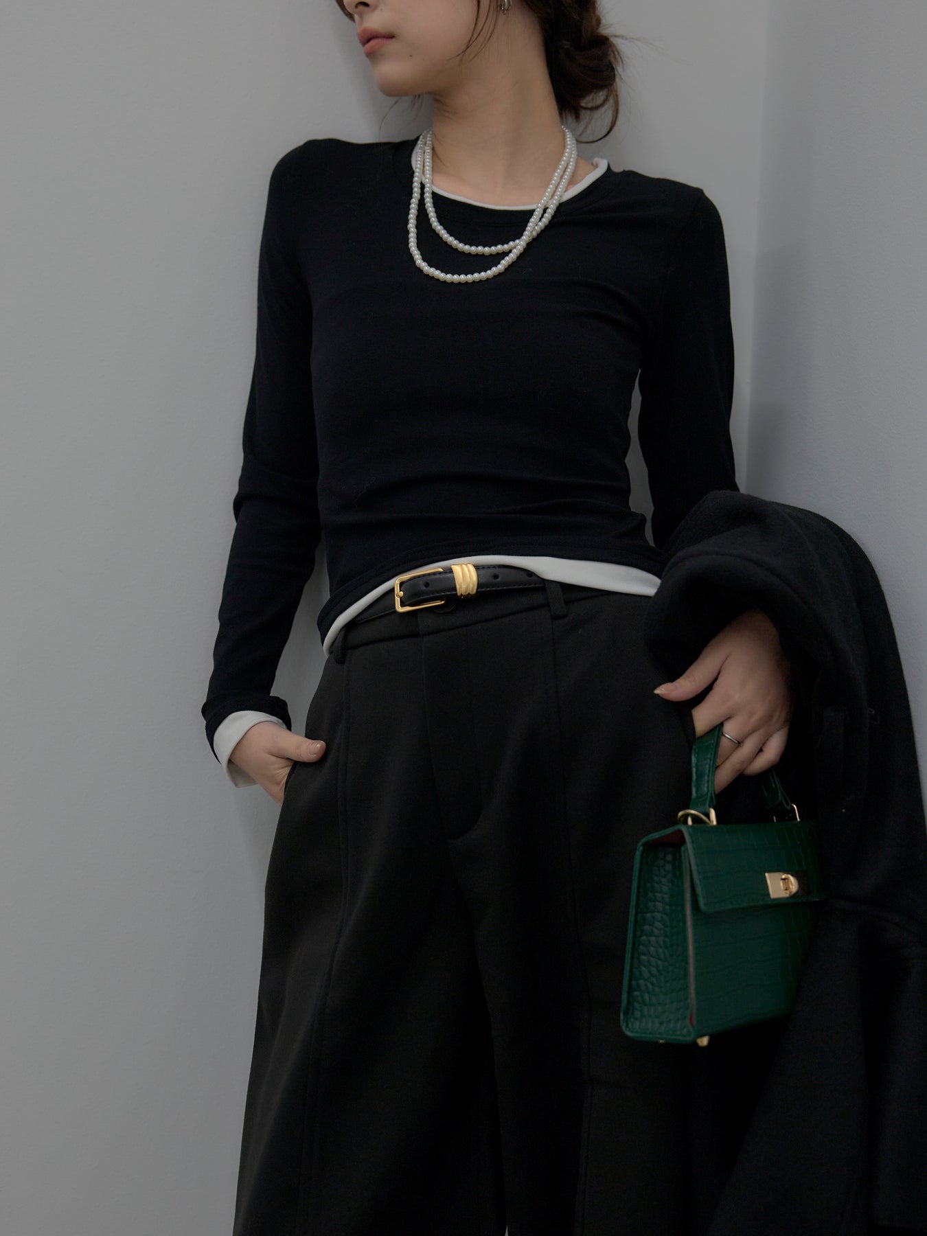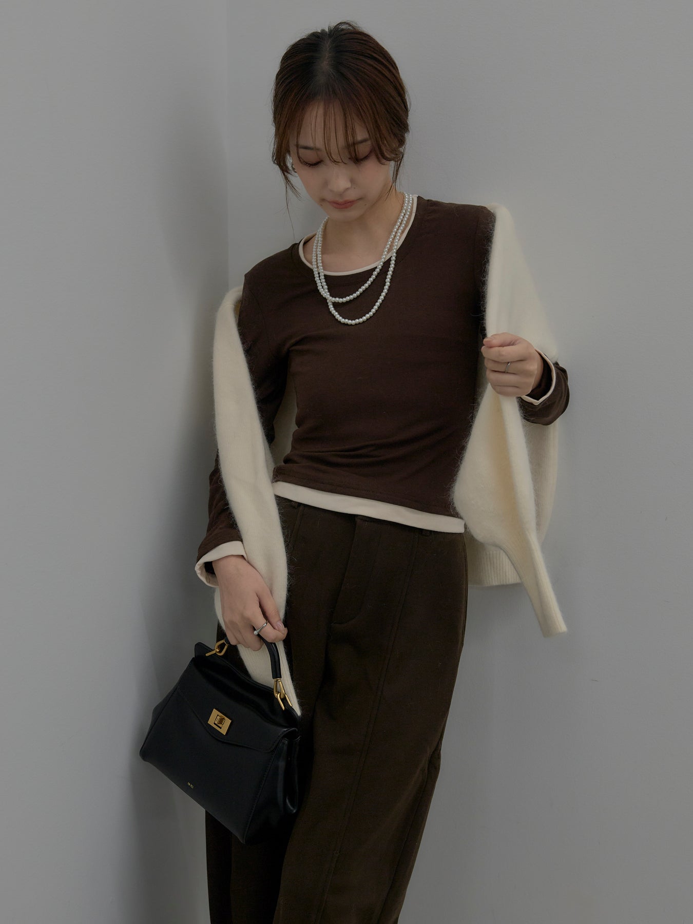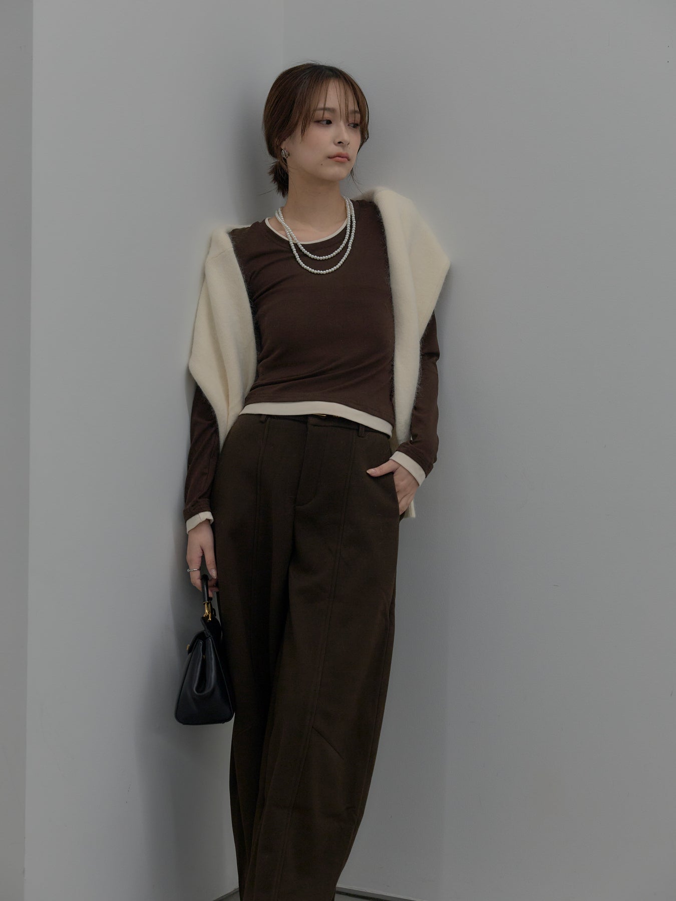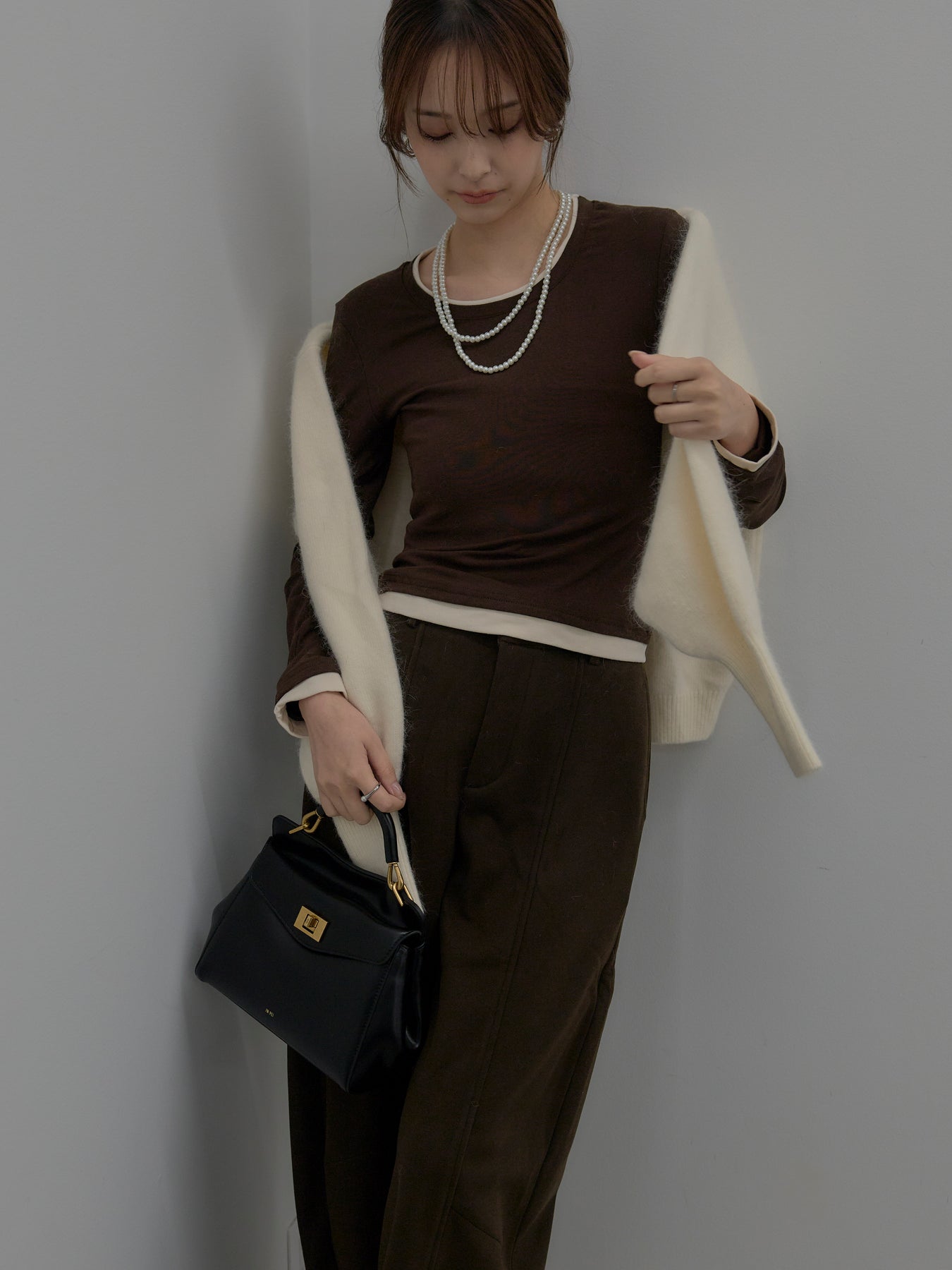 【SET】バイカラーレイヤードカットソー+カーブデザインスウェットライクパンツ(2set)
