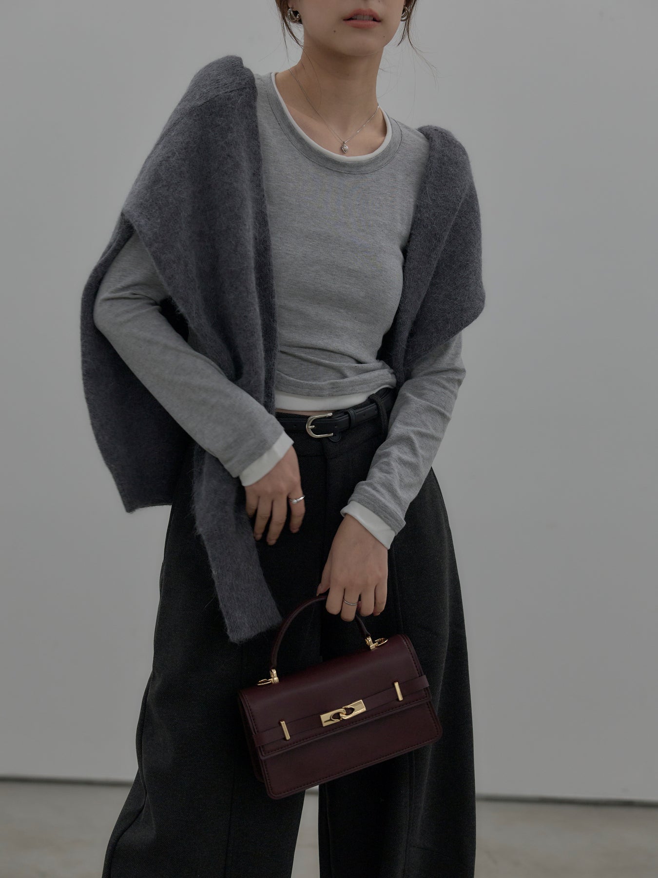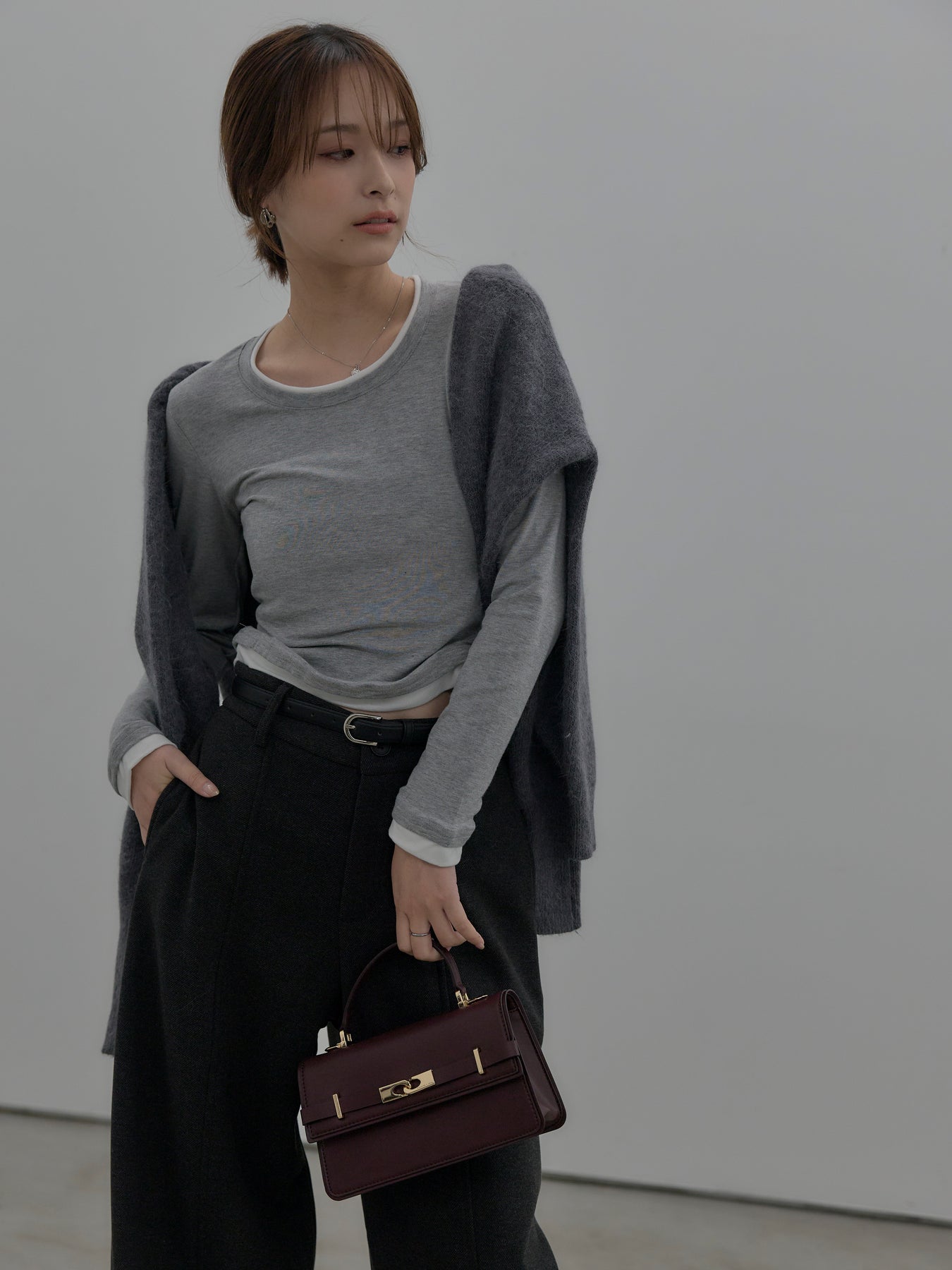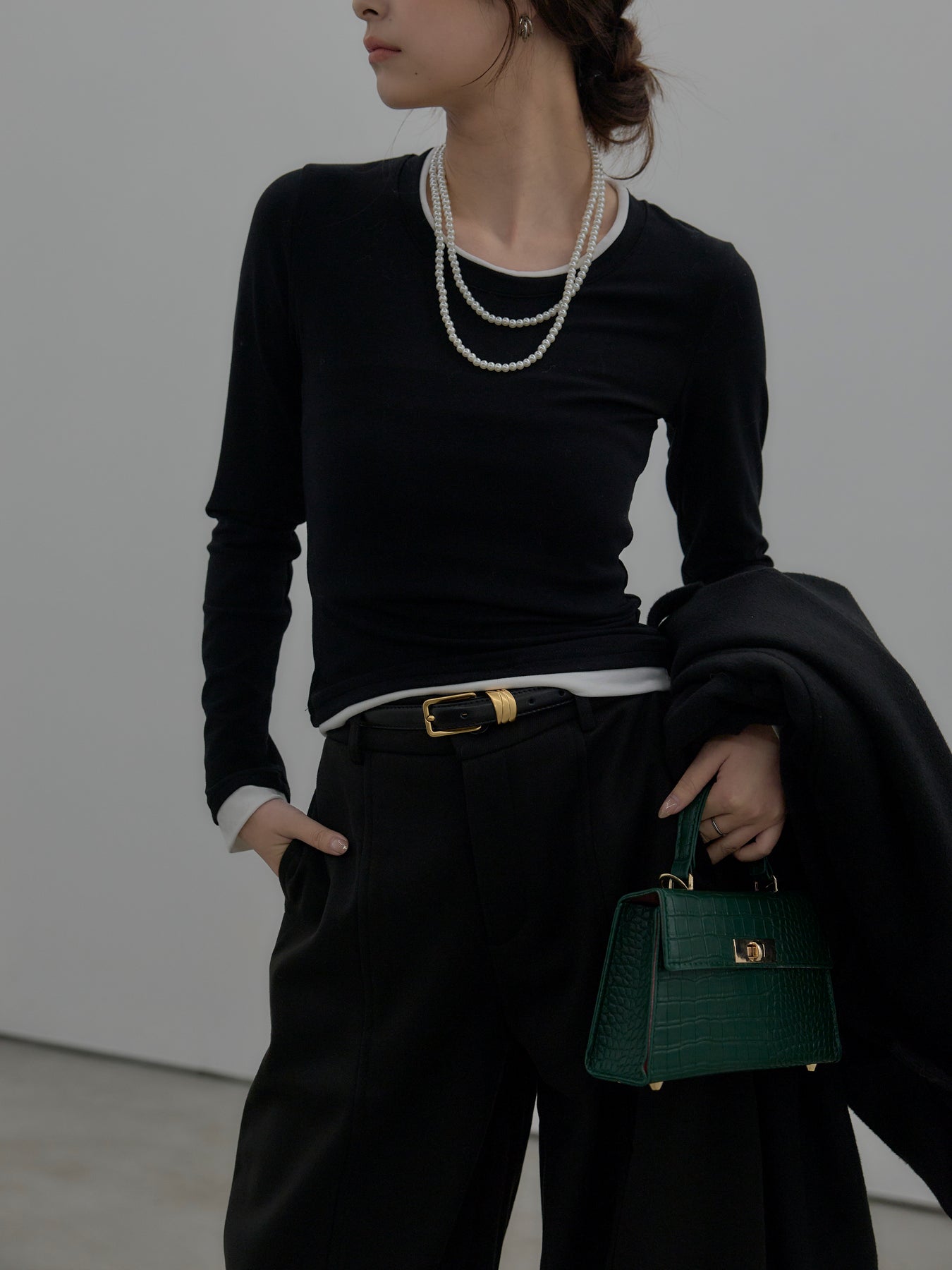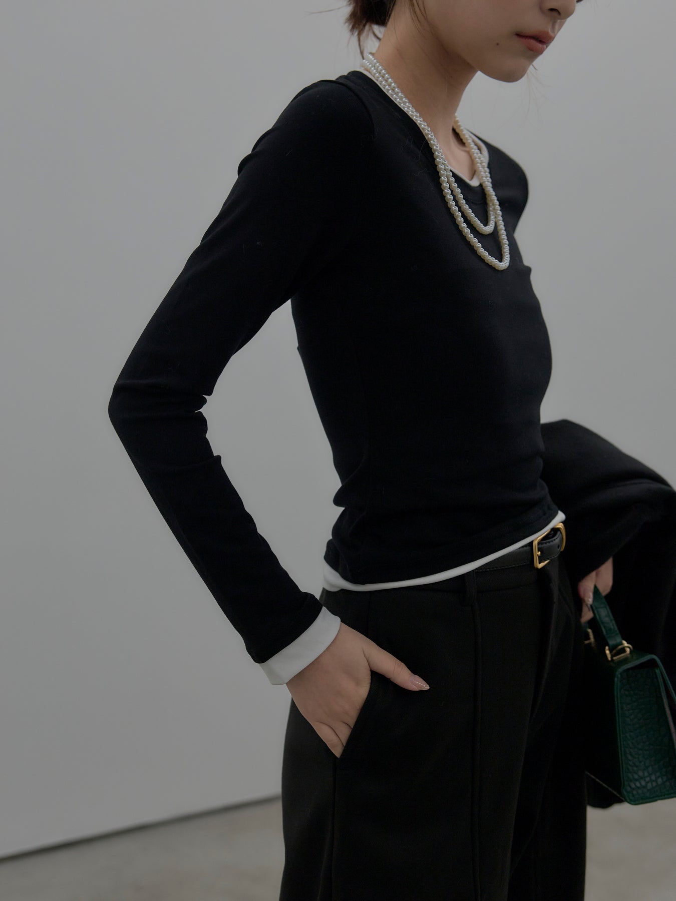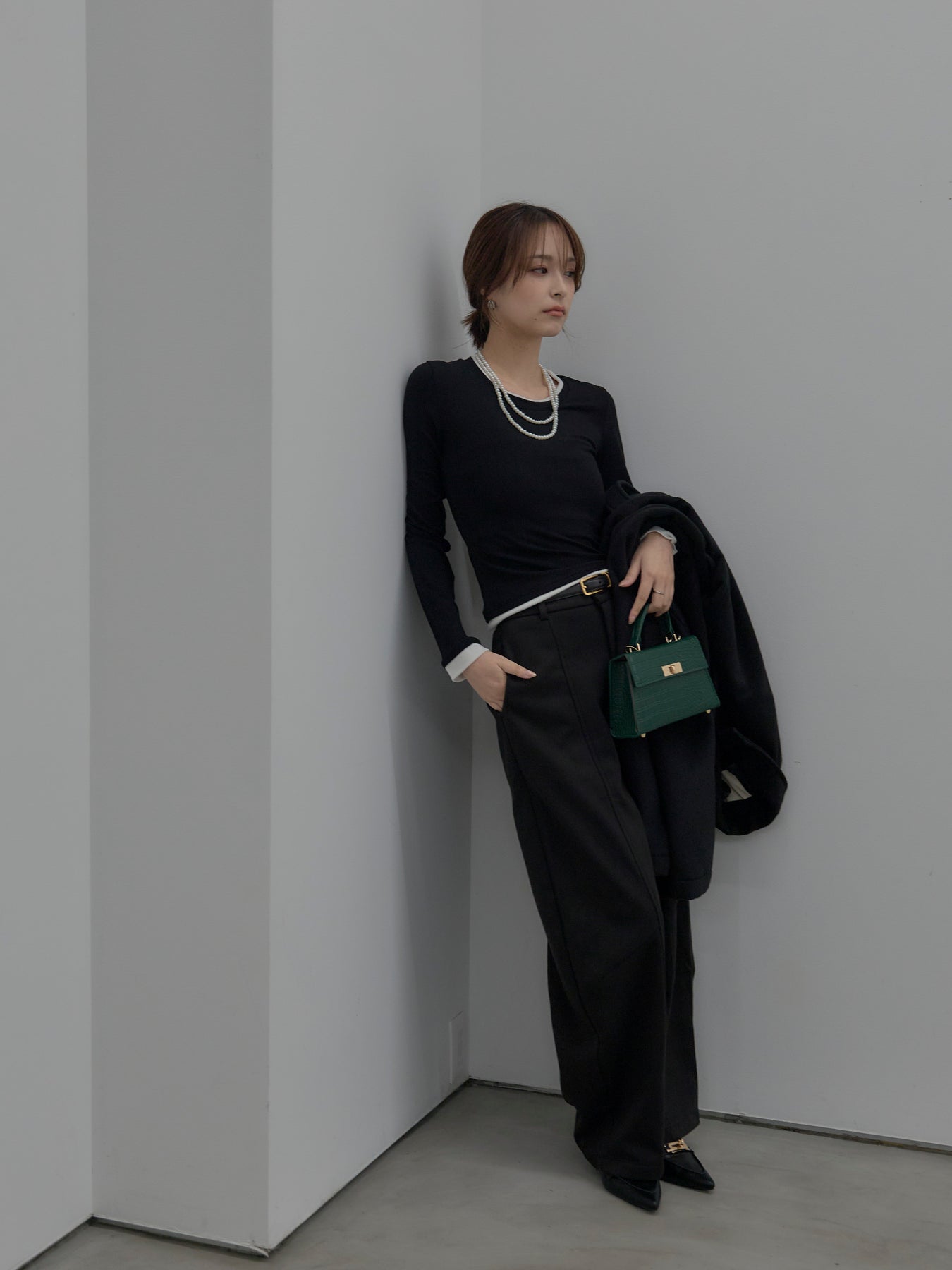 【SET】バイカラーレイヤードカットソー+カーブデザインスウェットライクパンツ(2set)