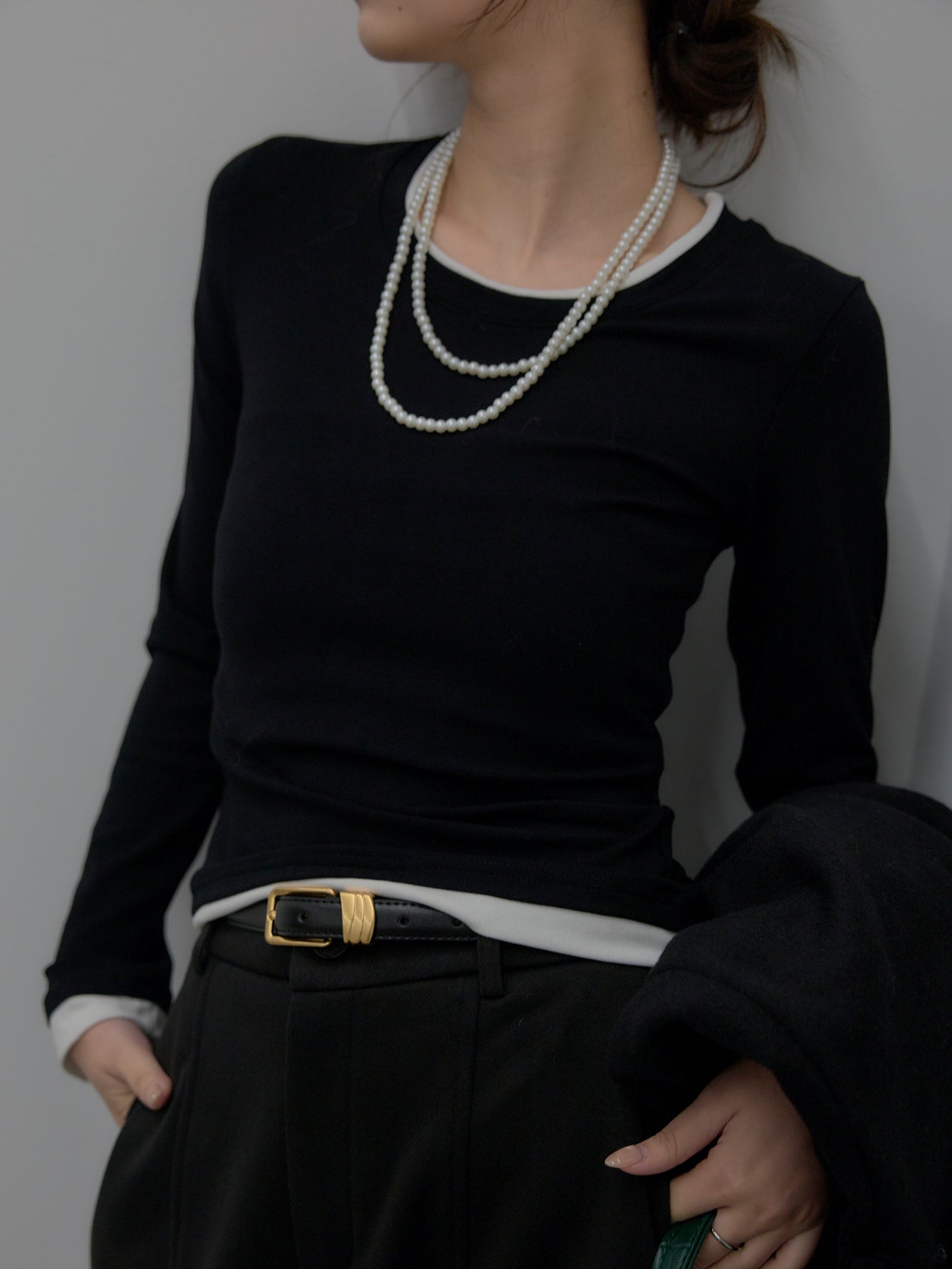バイカラーの配色が目を惹くレイヤード風カットソー。 重ね着しているように見えるデザインで、1枚でこなれたスタイルが完成します。 程よいゆるさと軽い着心地で、デイリーに取り入れやすい万能トップスです。