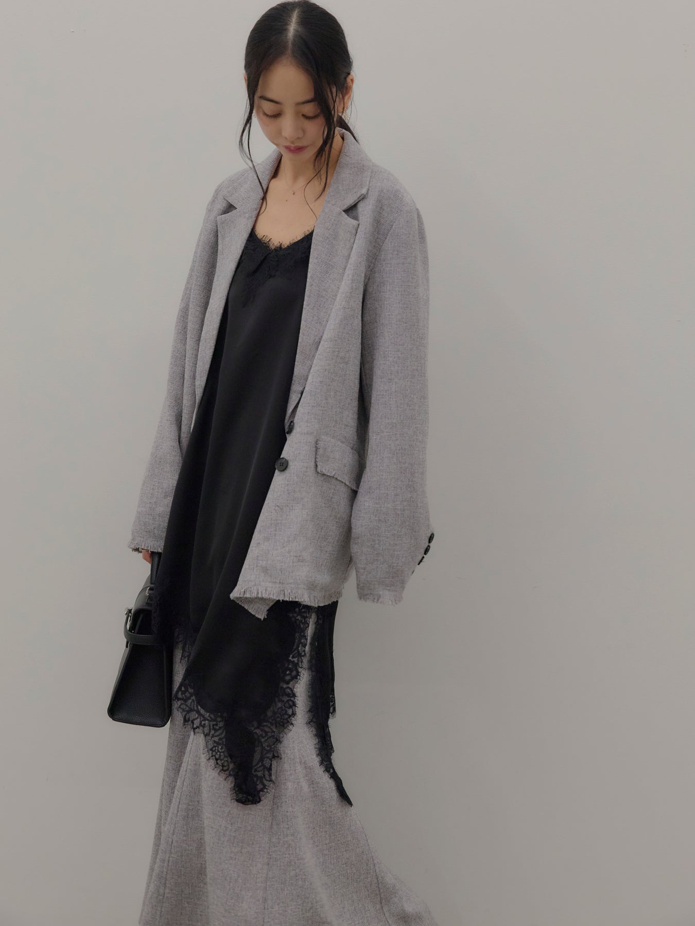 ゆったりサイズ感でテーラードジャケットを今っぽく落とし込んで着こなせます。今の時期はタートルネックを合わせても。薄手のインナーやキャミソールと合わせて着ていただくのもおすすめです。