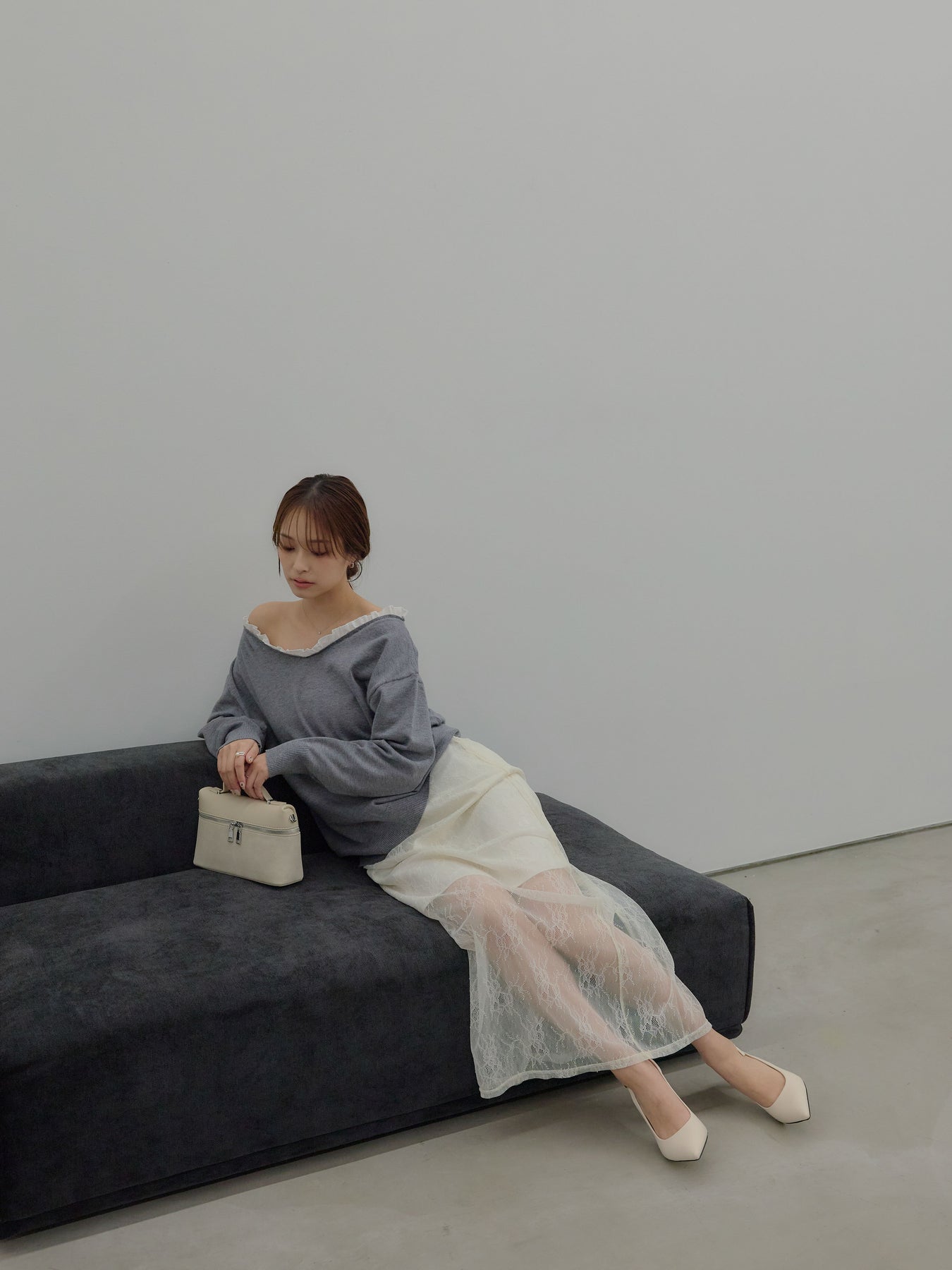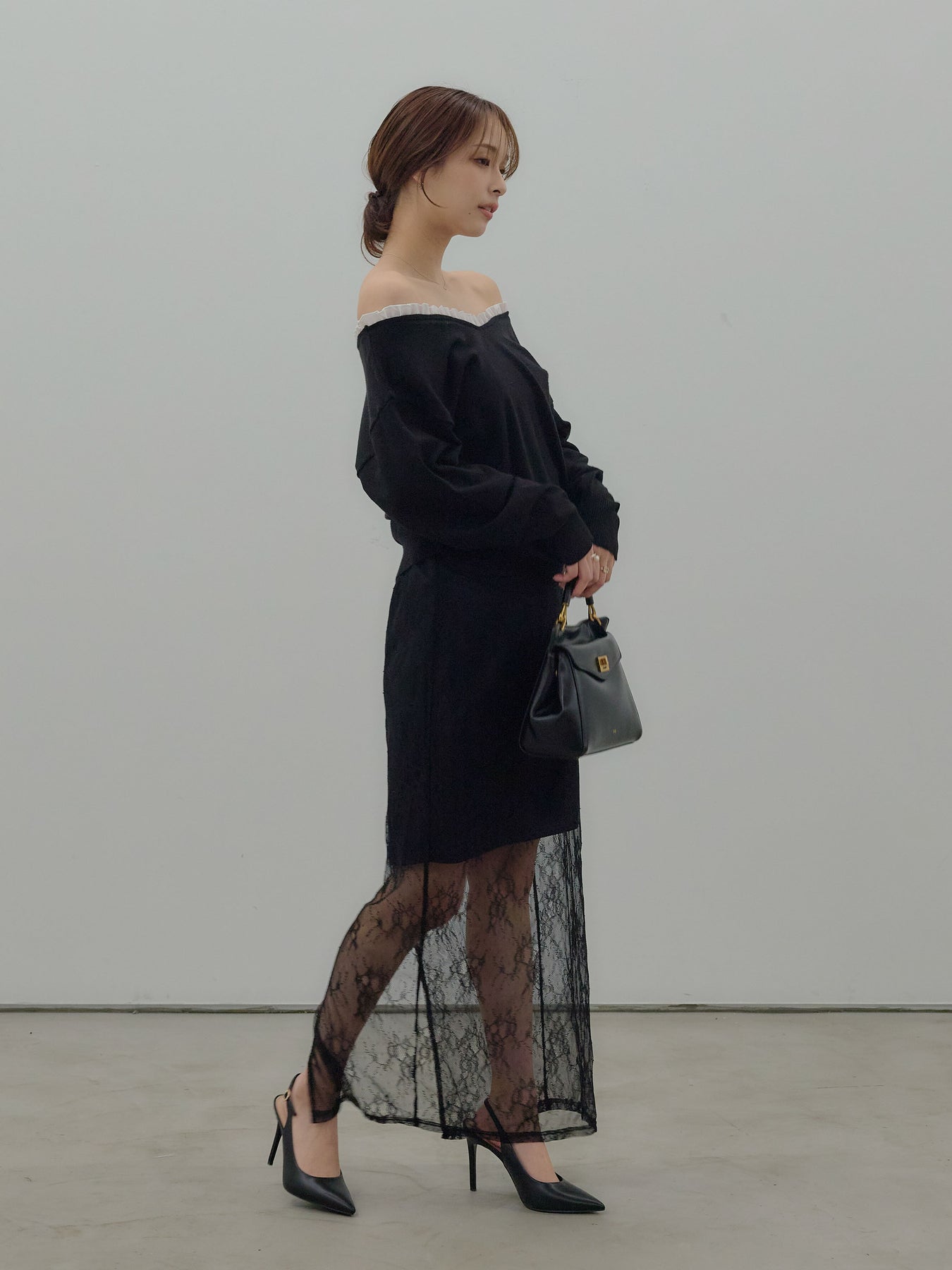 ◆ 異素材コンビオフショルプルオーバー