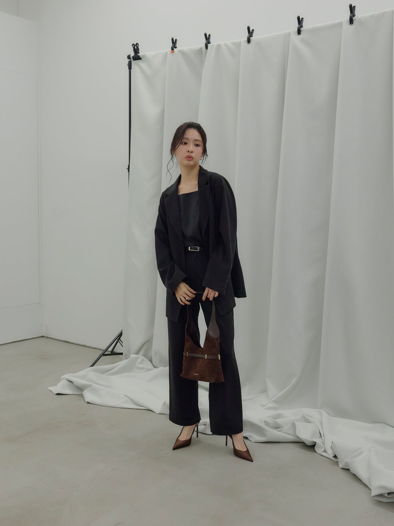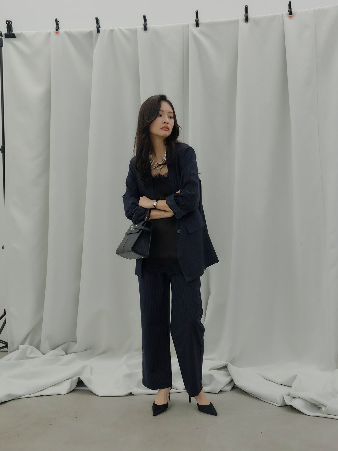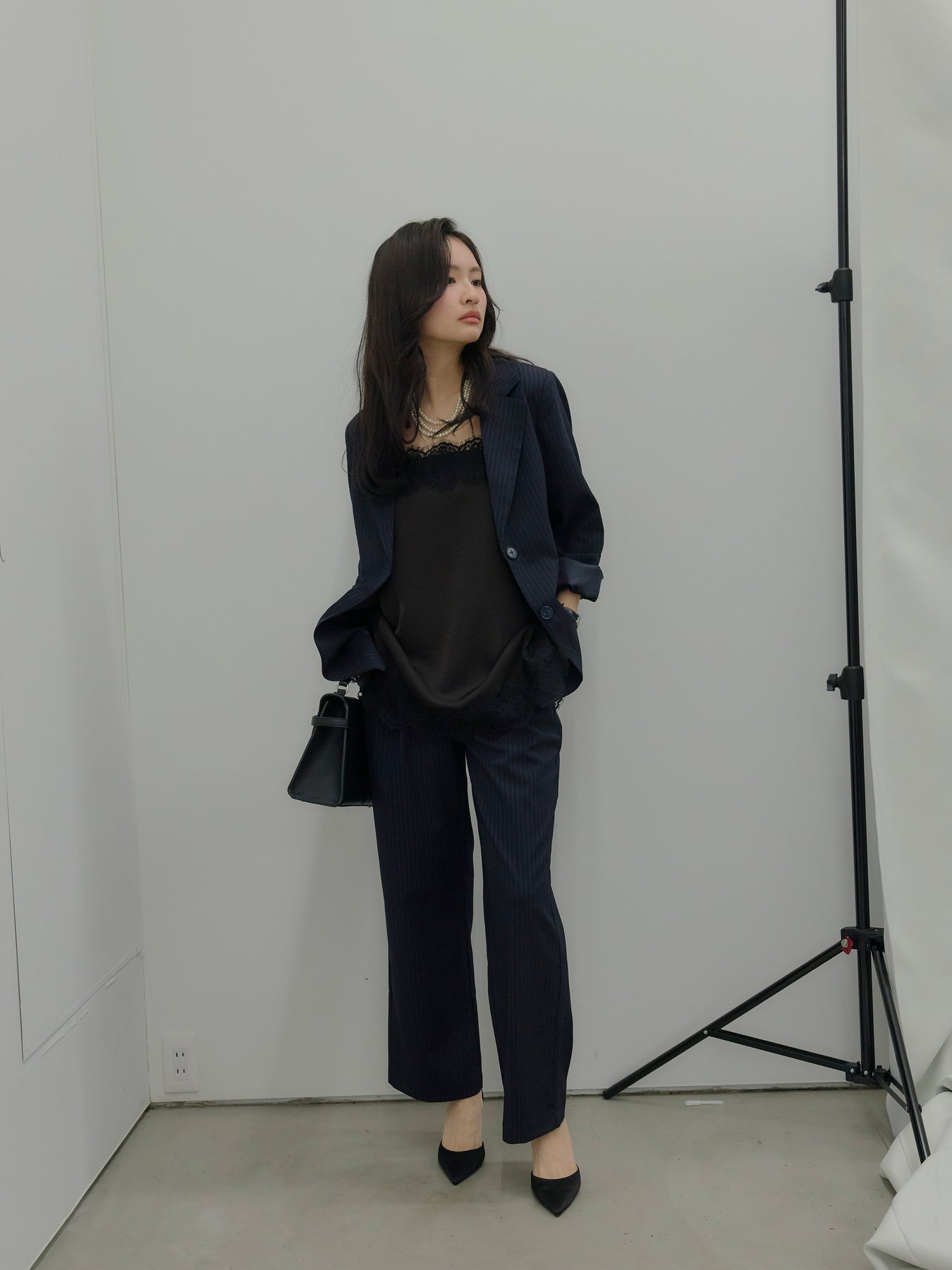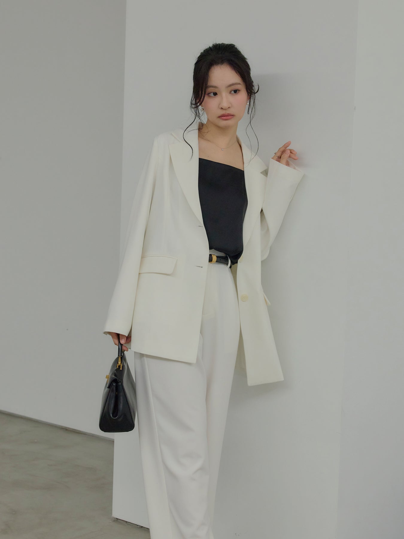 ワンピースやキャミソールに重ねればセンシュアルに、同素材のパンツと合わせれば端正なセットアップとしても成立します。