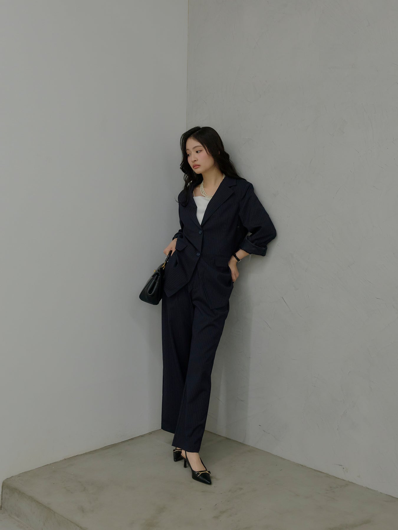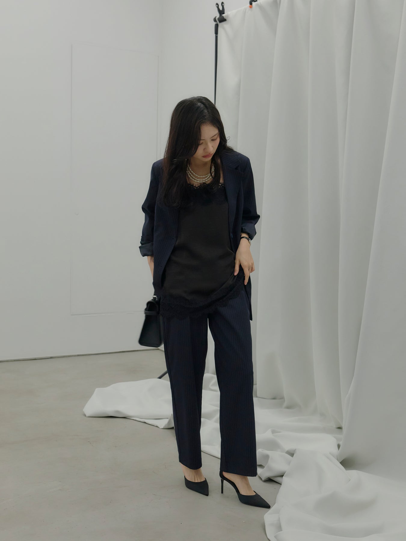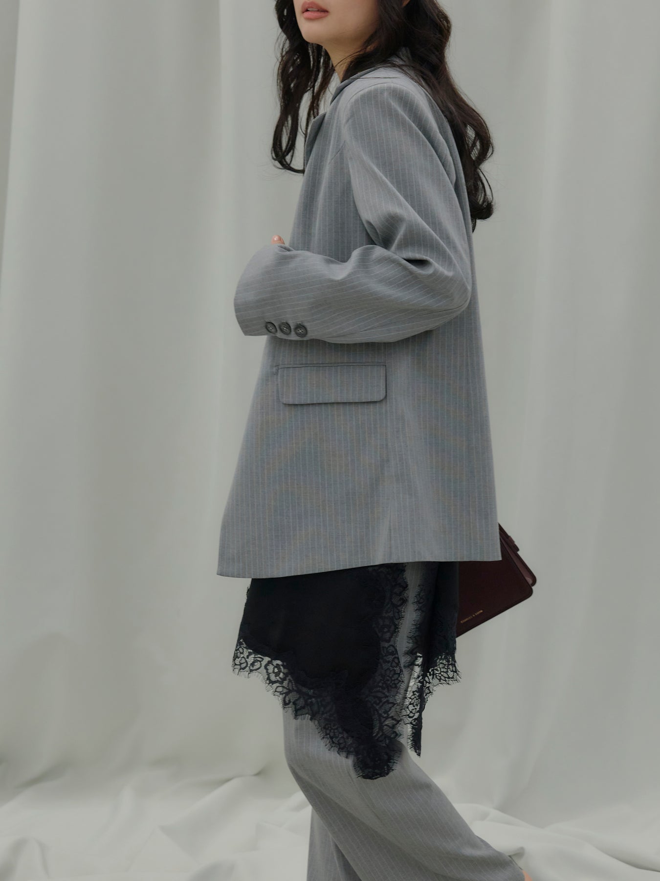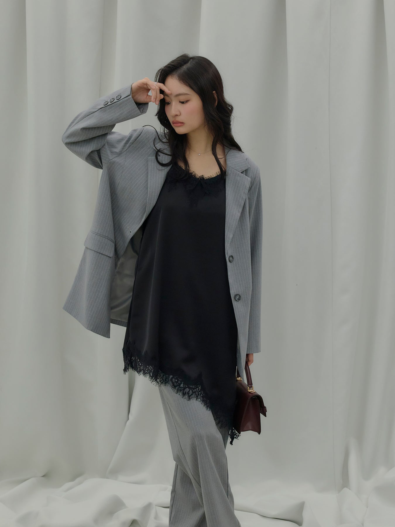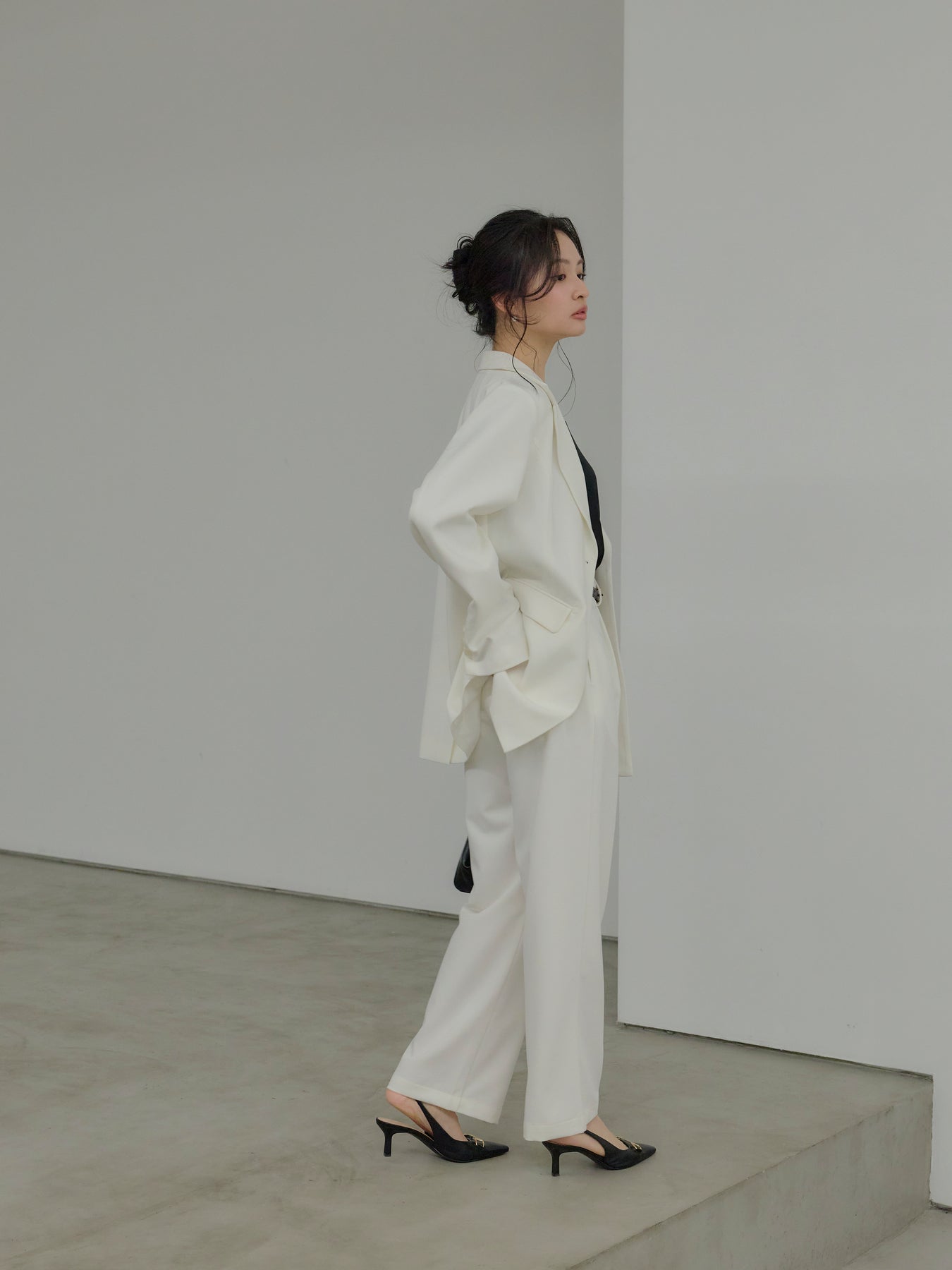 ワンピースやキャミソールに重ねればセンシュアルに、同素材のパンツと合わせれば端正なセットアップとしても成立します。