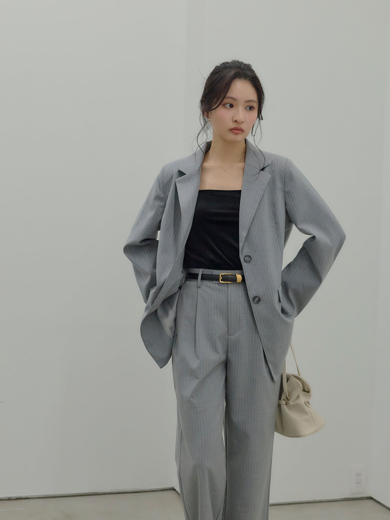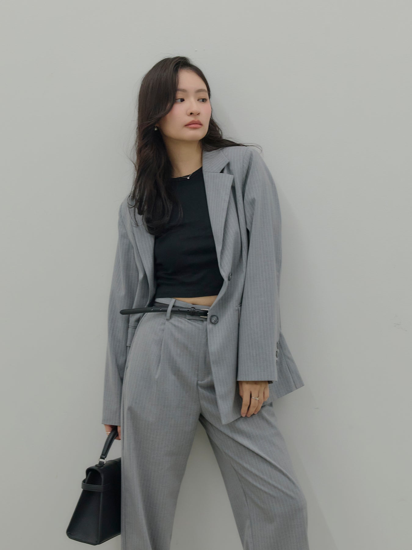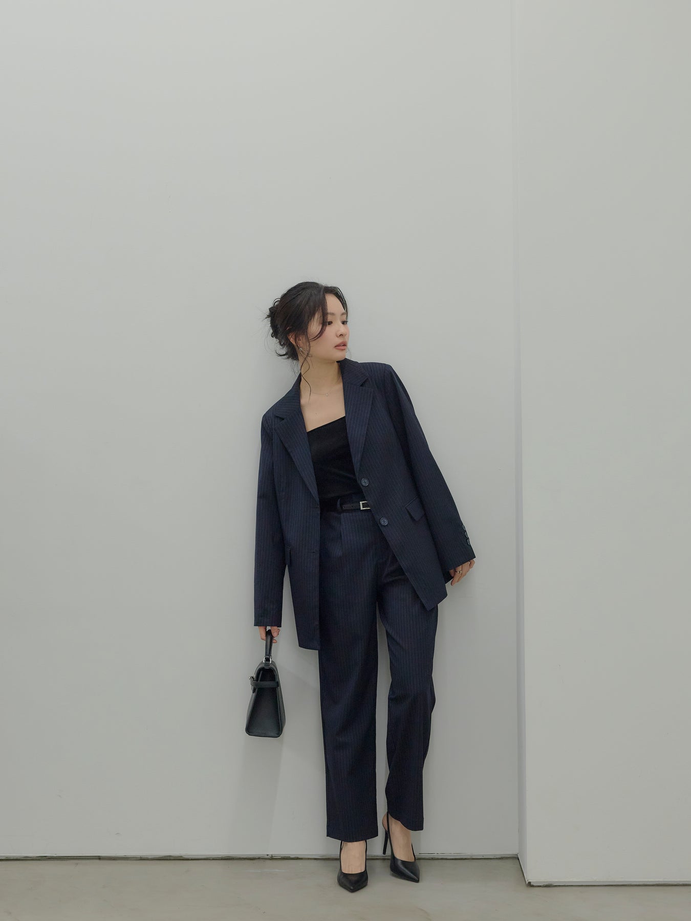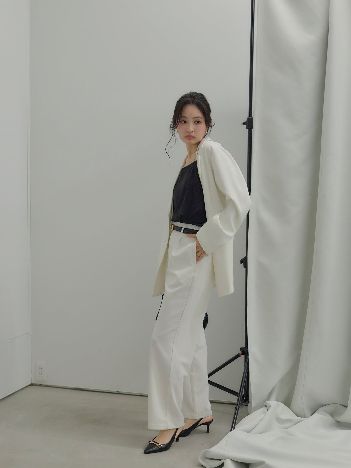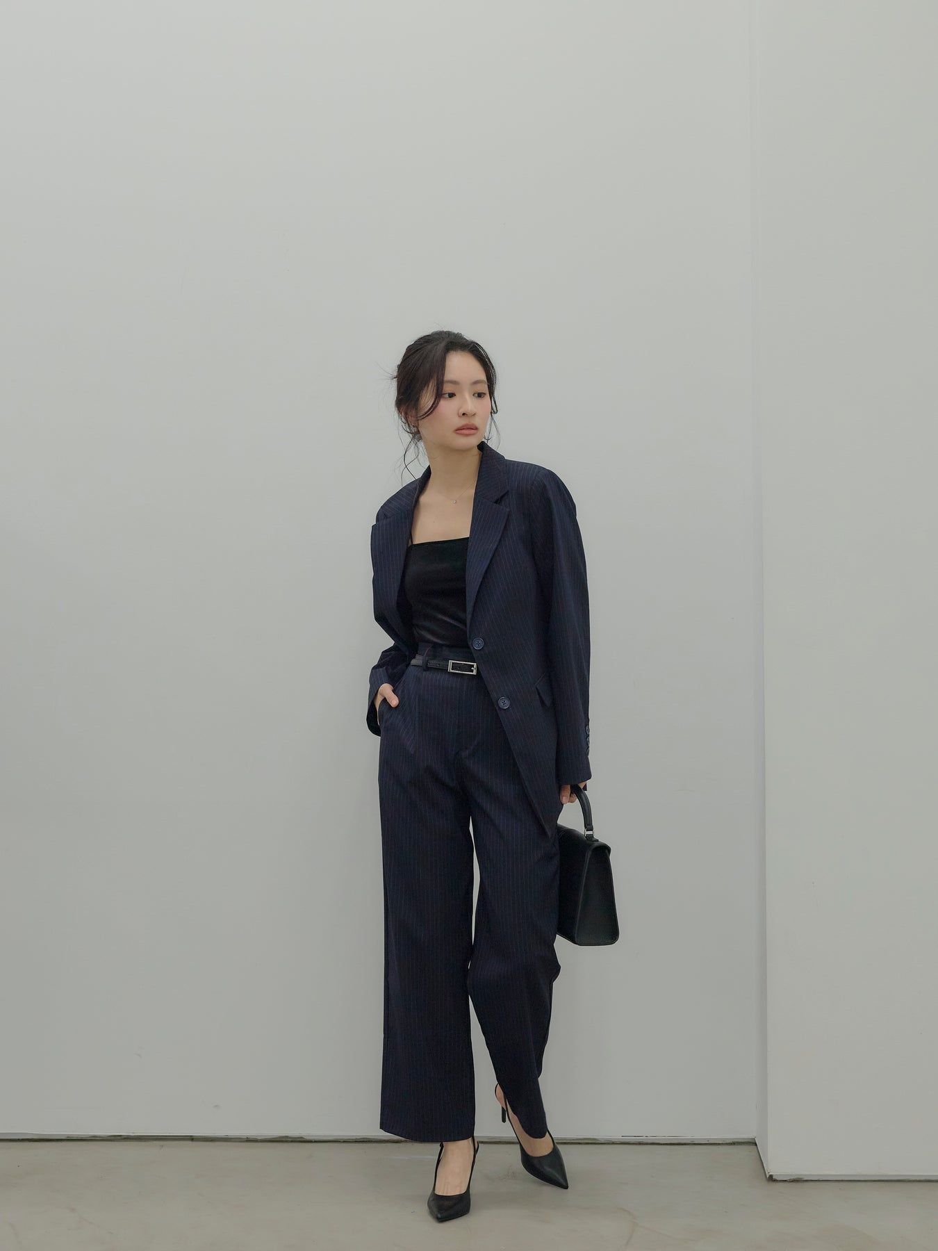 同素材のジャケットと合わせれば端正に、単品使いならトップスの質感や肌見せを引き立てます。