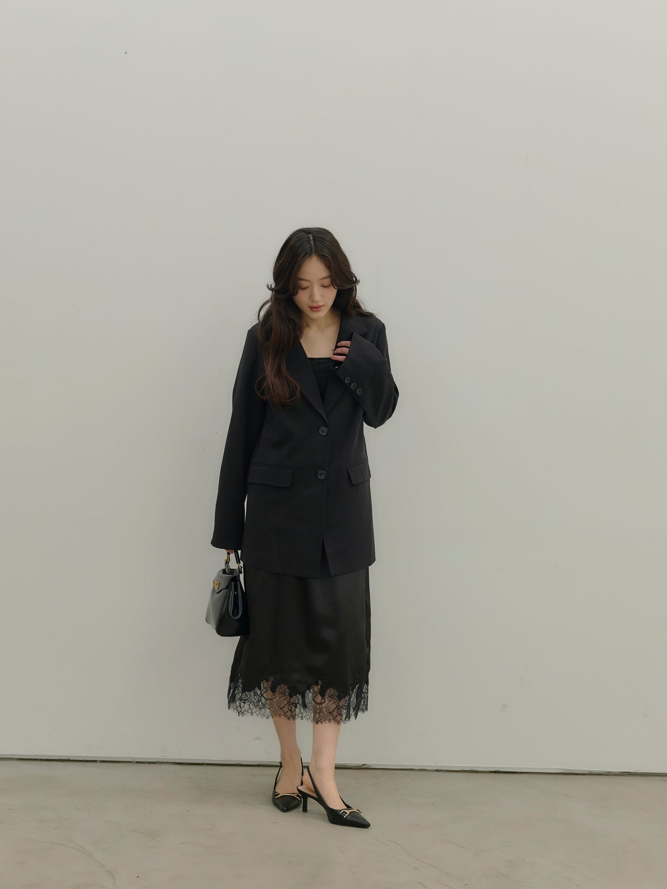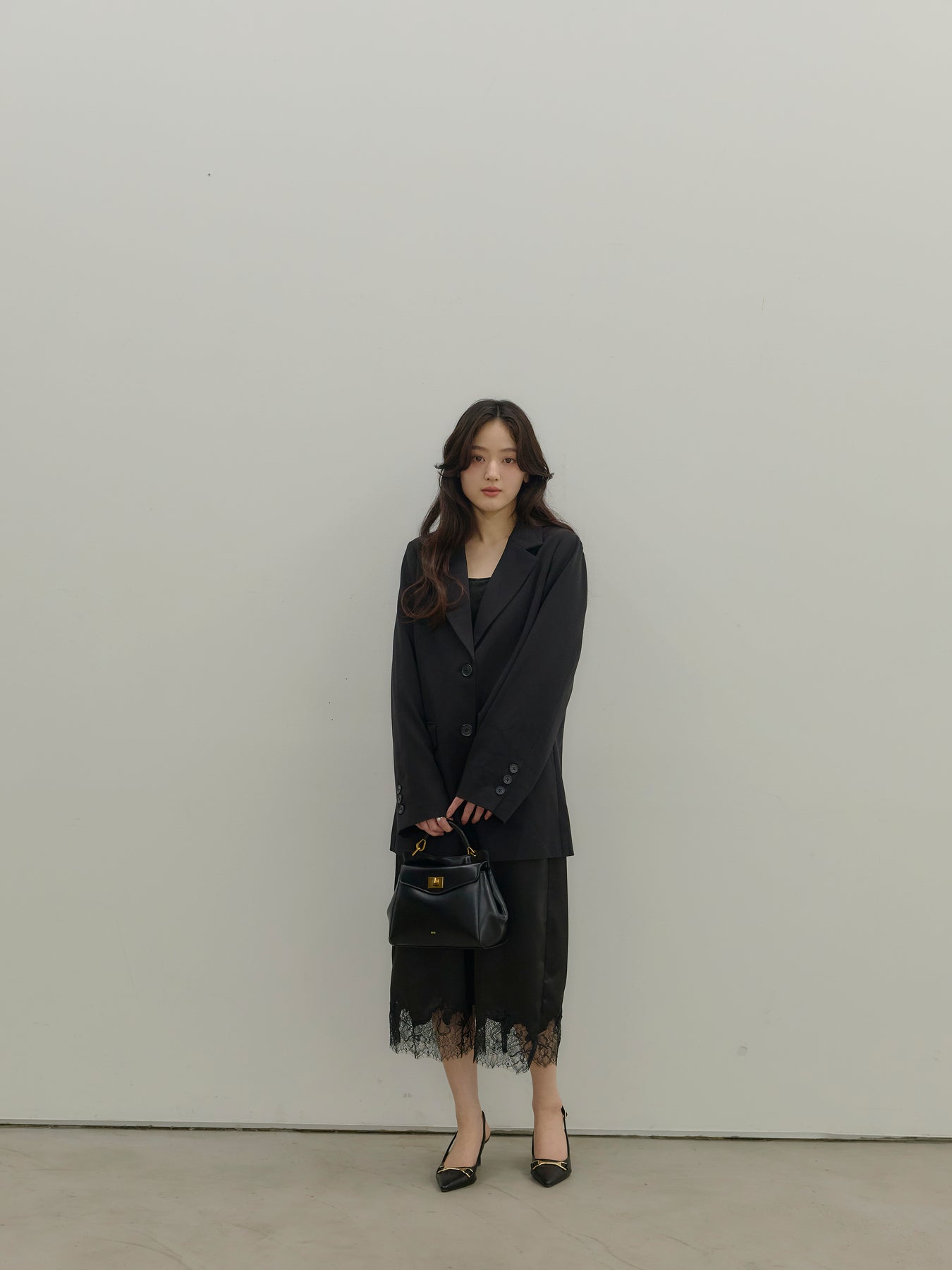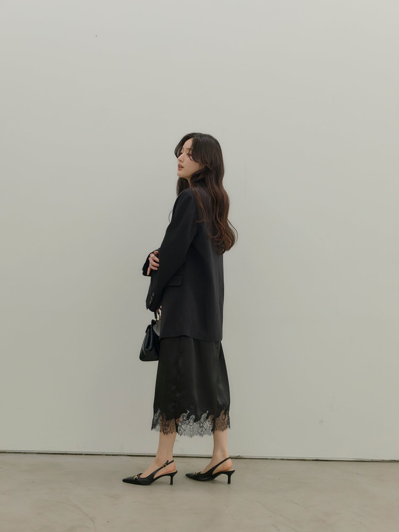 ワンピースやキャミソールに重ねればセンシュアルに、同素材のパンツと合わせれば端正なセットアップとしても成立します。