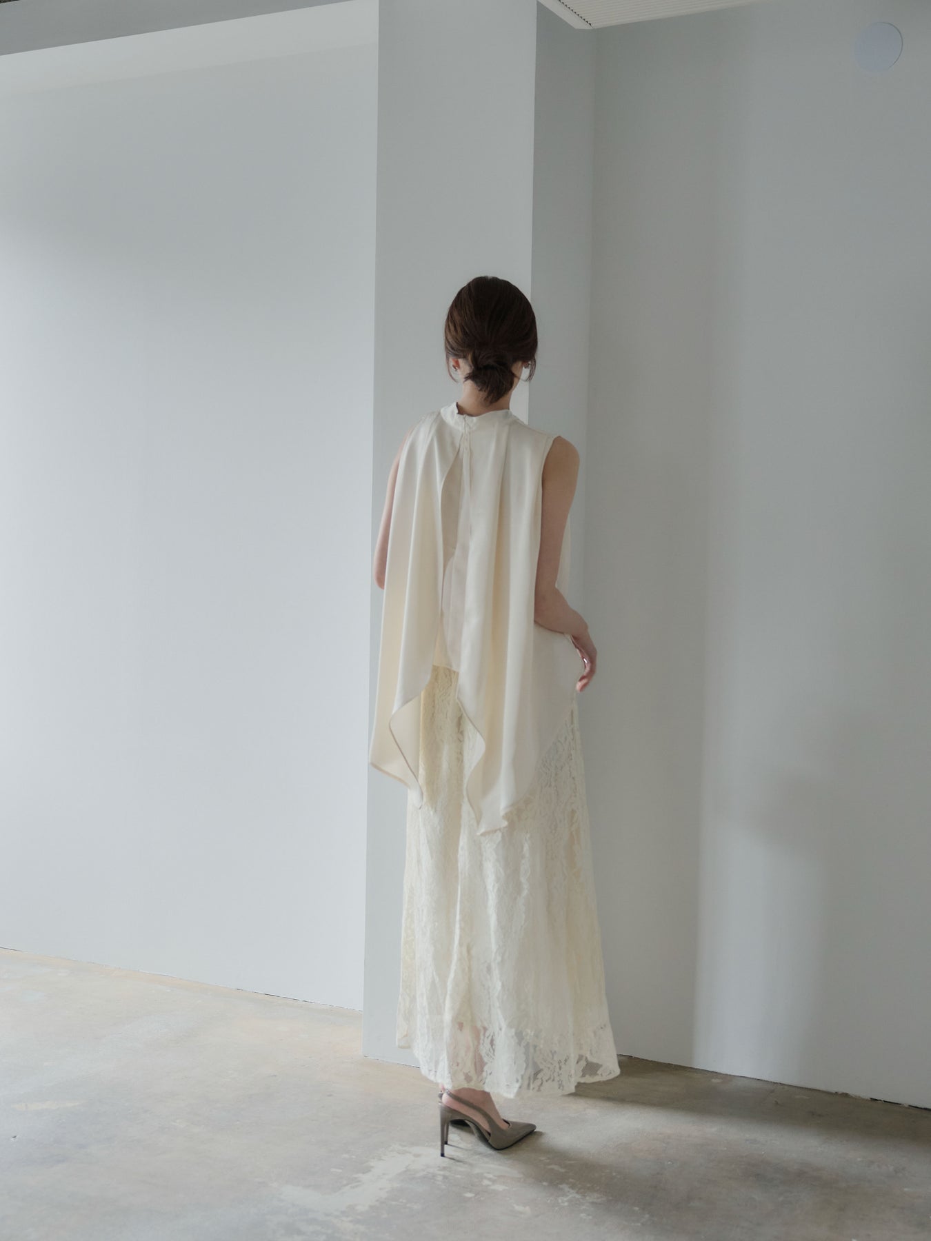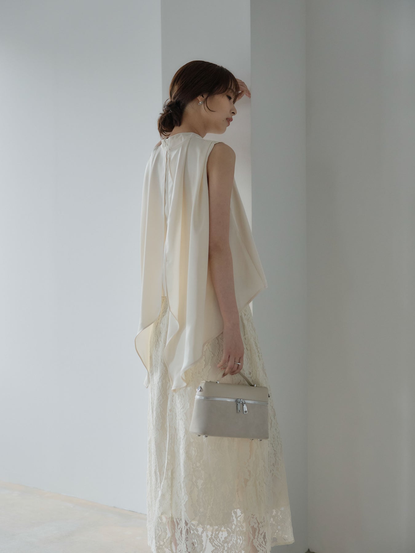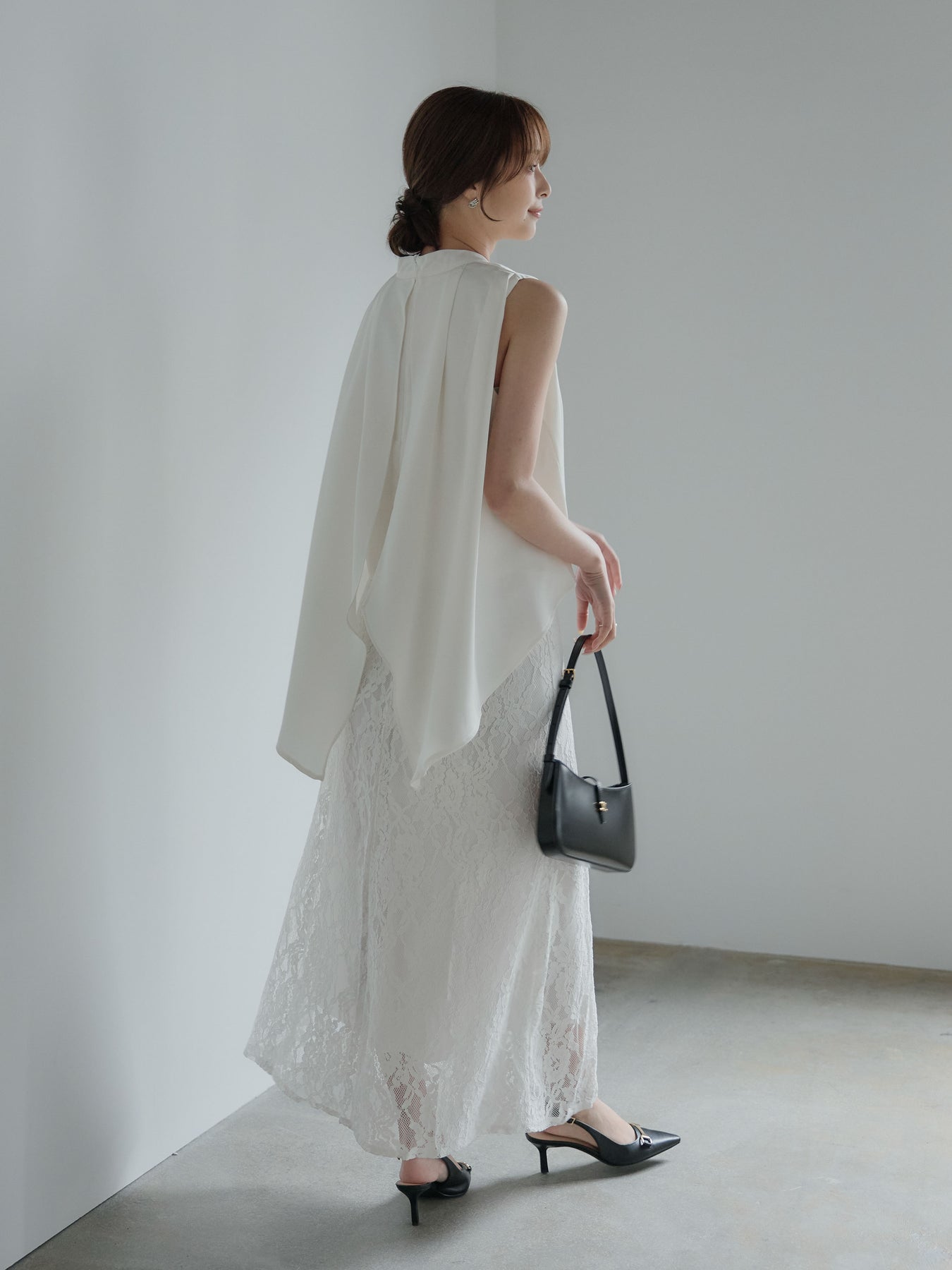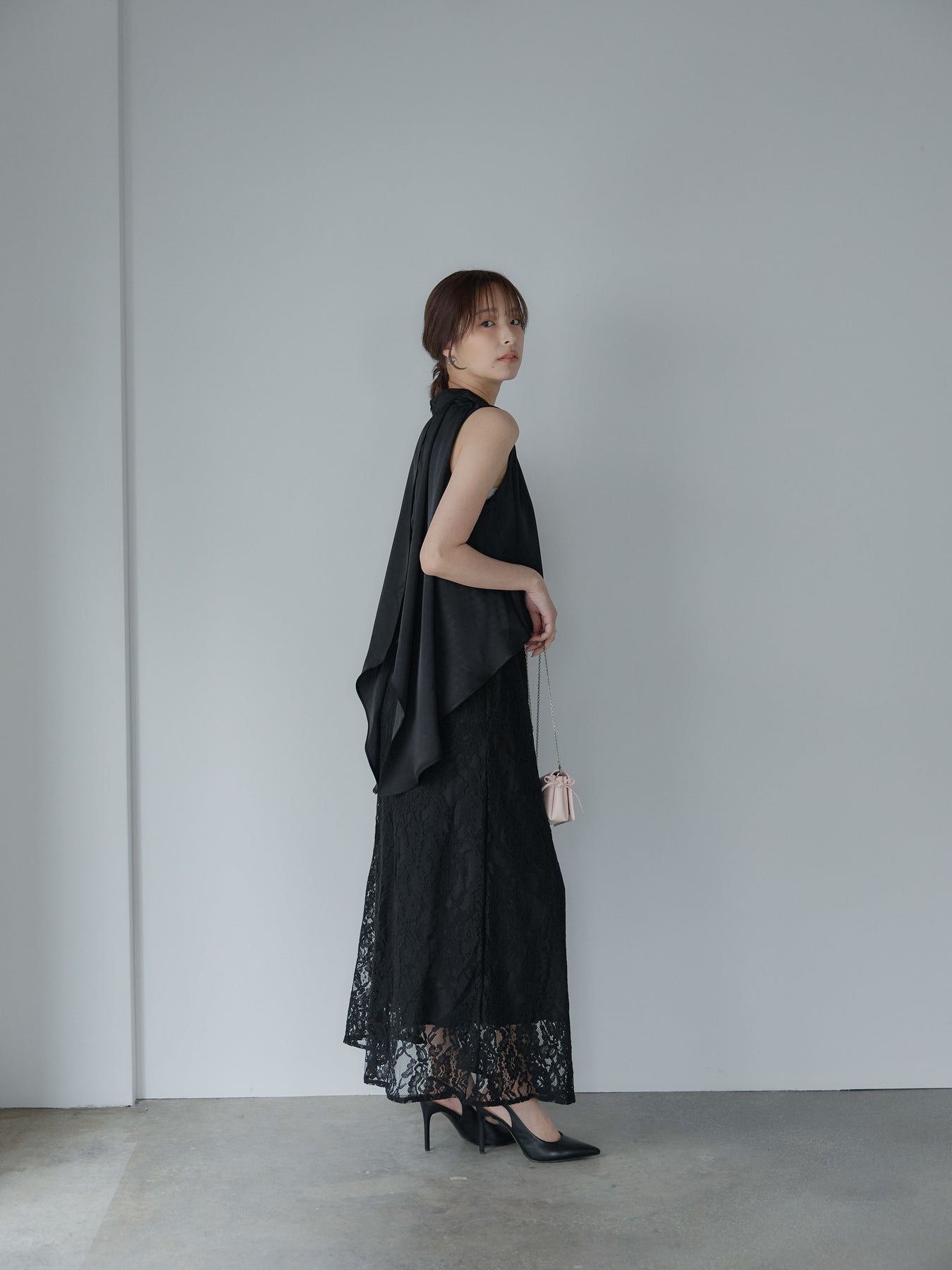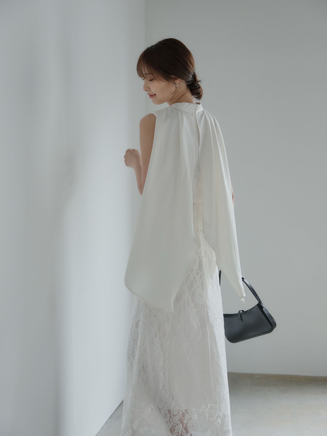 フロントはシンプル、後ろ姿で魅せるアイテムです。