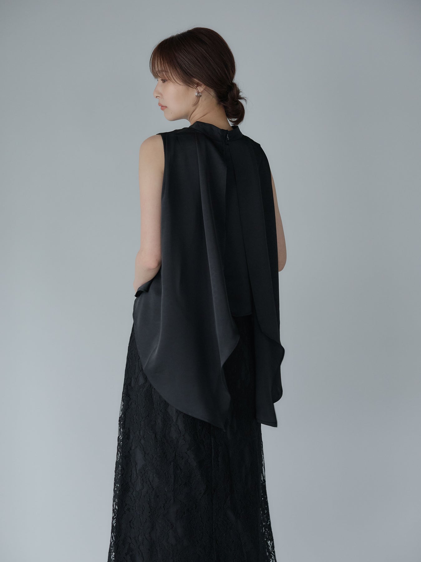 ◆ バックデザインサテンノースリーブトップス