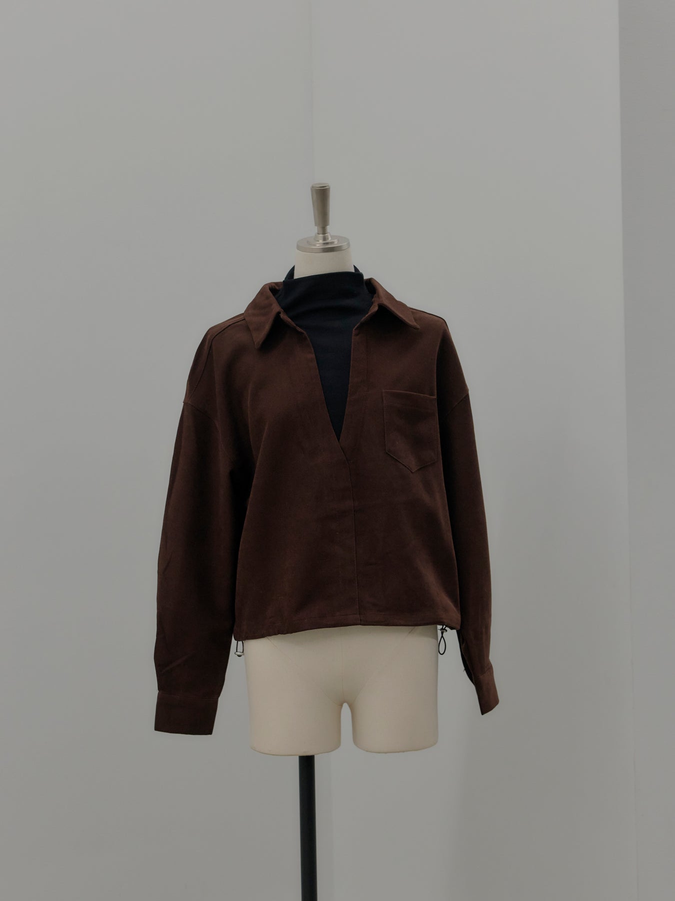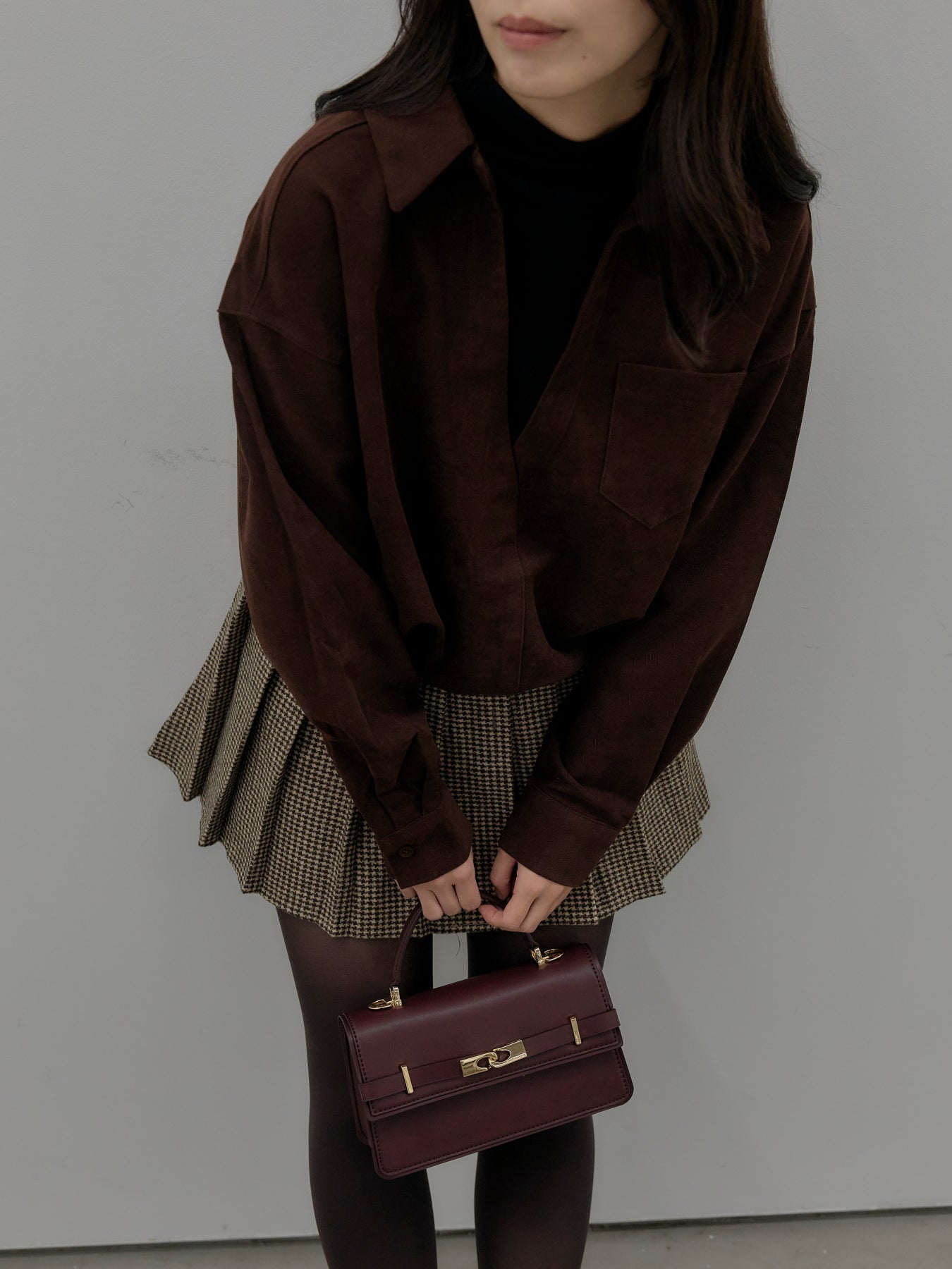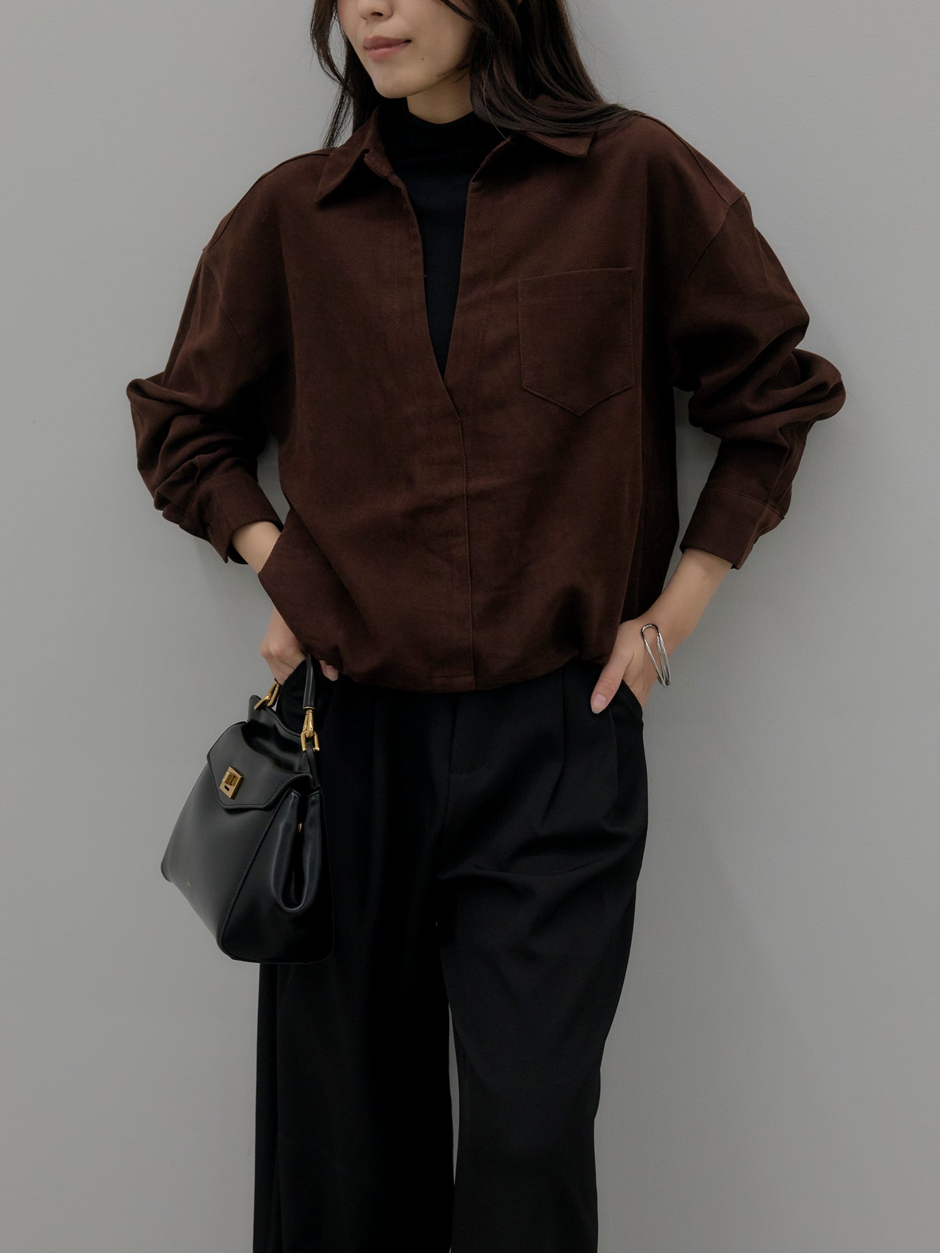 異素材を組み合わせたドッキングデザインが魅力のスエードシャツ。