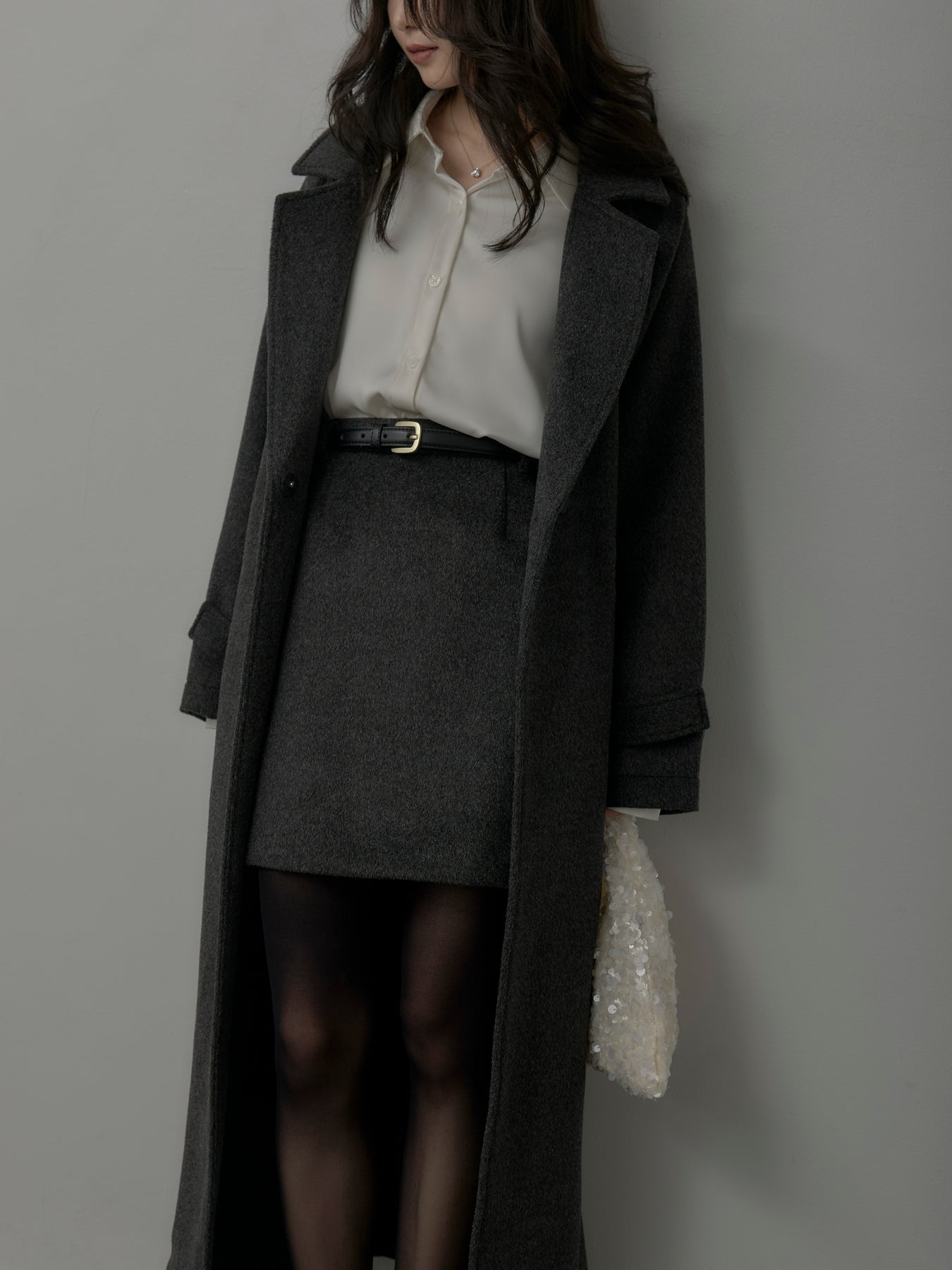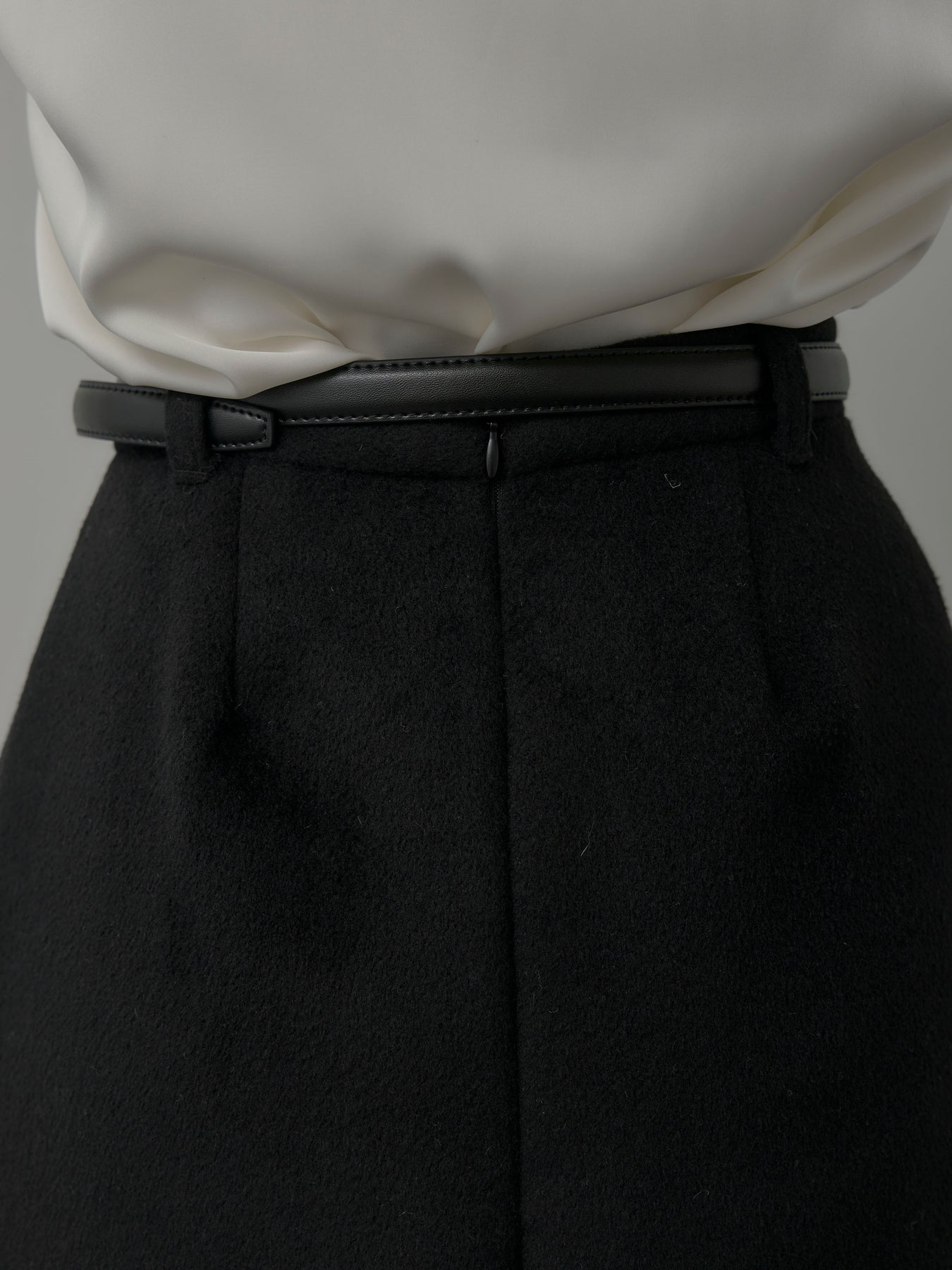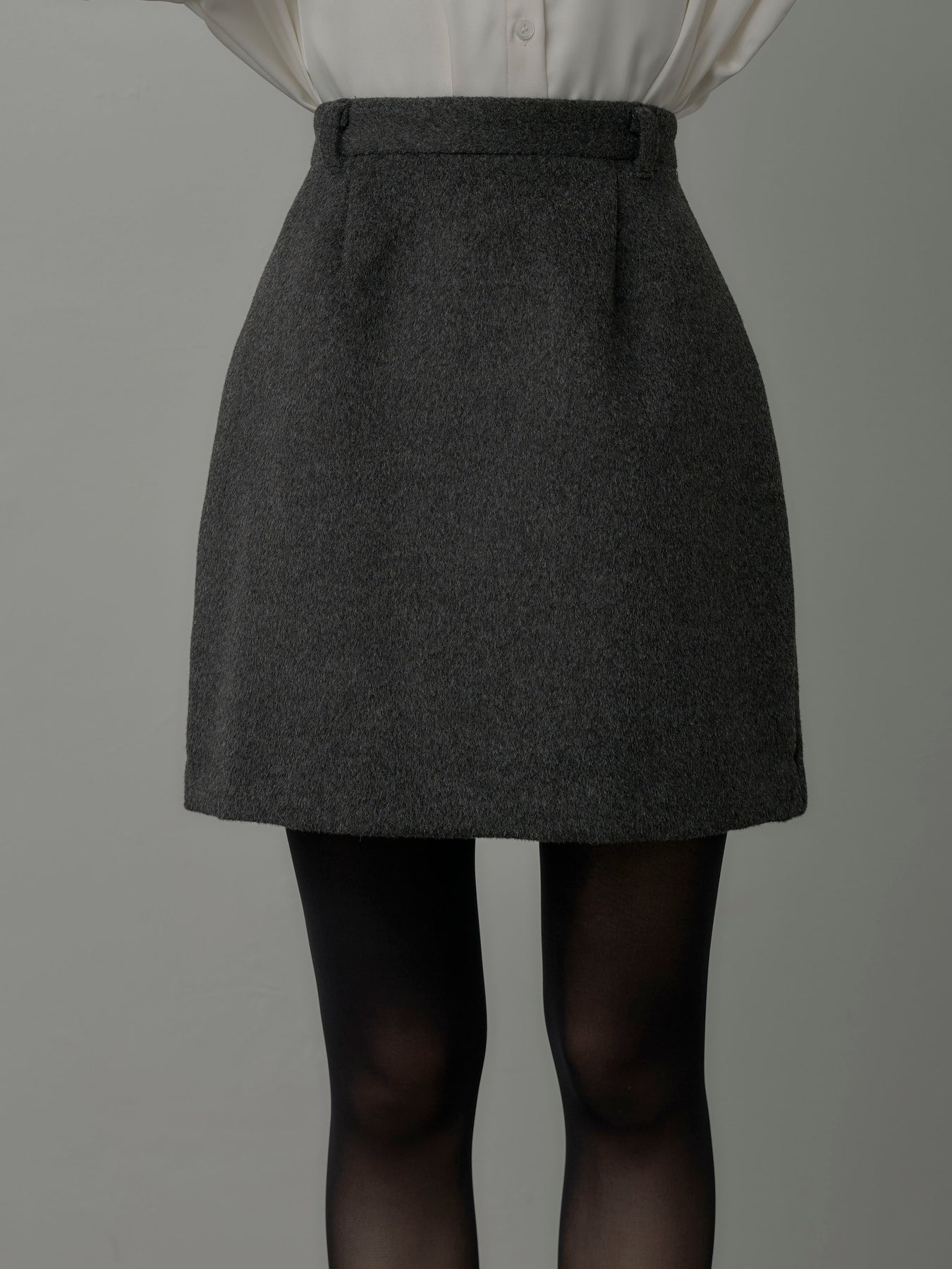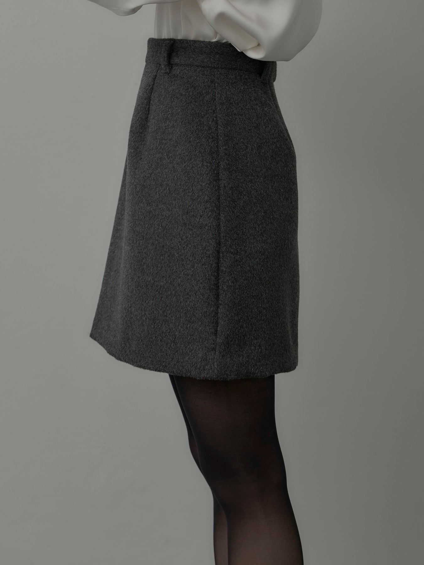 【モデル着用サイズ:DARKGRAY/M、BLACK/S】 シーズンライクなウールタッチ素材で仕立てたミニスカート。シンプルなデザインで合わせやすく、ブーツやタイツとも好相性なアイテムです。