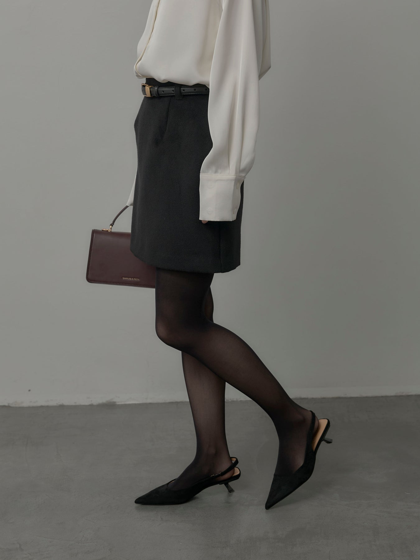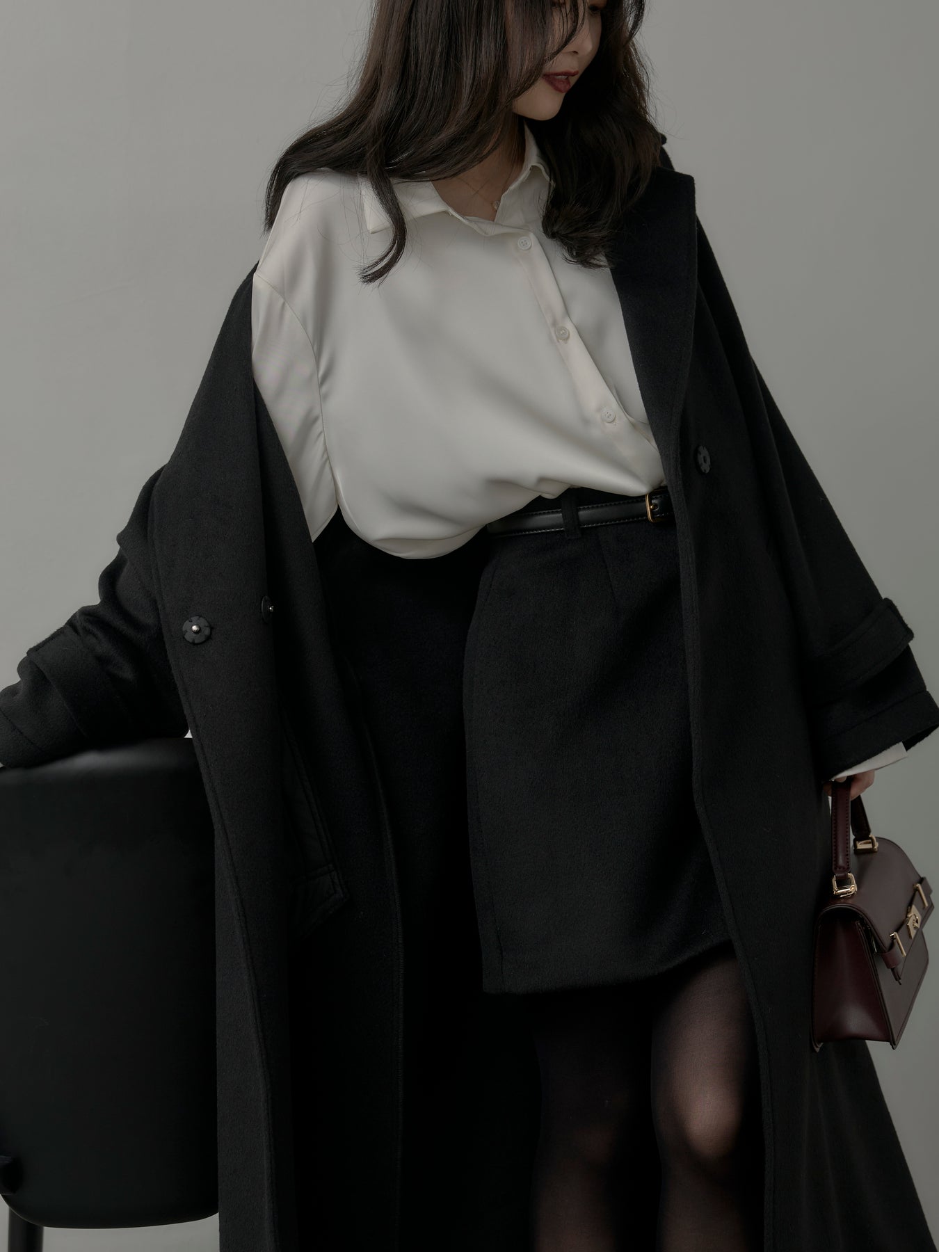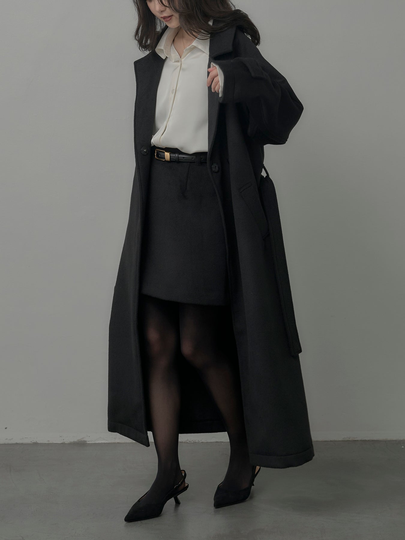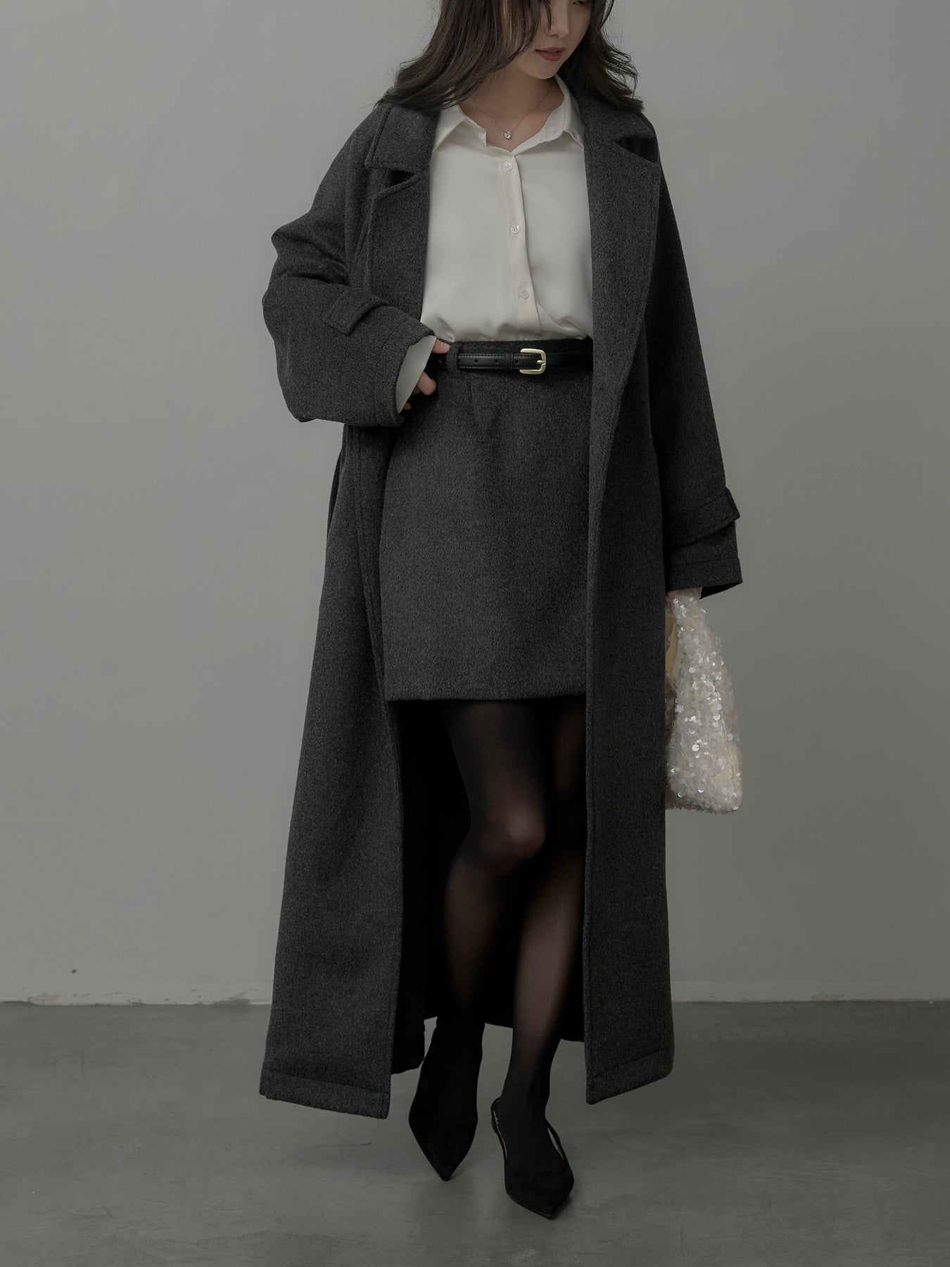 【モデル着用サイズ:DARKGRAY/M、BLACK/S】 シーズンライクなウールタッチ素材で仕立てたミニスカート。シンプルなデザインで合わせやすく、ブーツやタイツとも好相性なアイテムです。