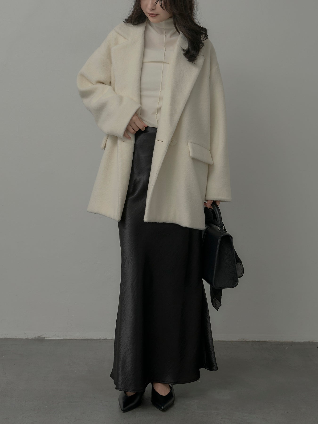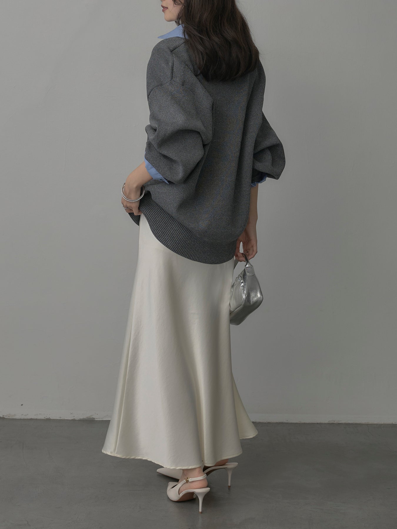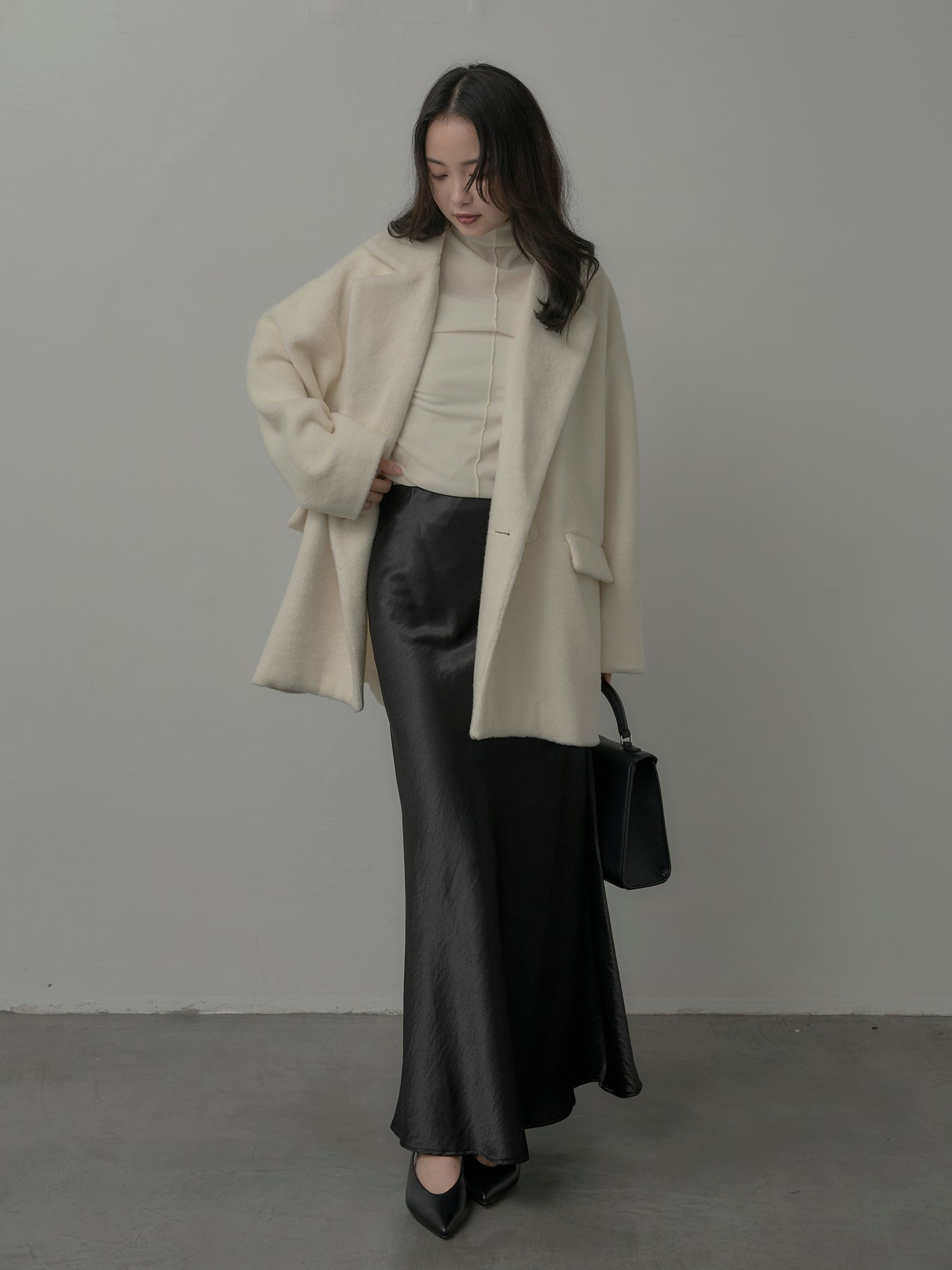 【モデル着用サイズ:IVORY/S、BLACK/S】 美しい光沢感のあるサテン素材を使用したナローAラインスカート。落ち感のあるシルエットが女性らしさを引き立て、幅広いトップスと好相性です。