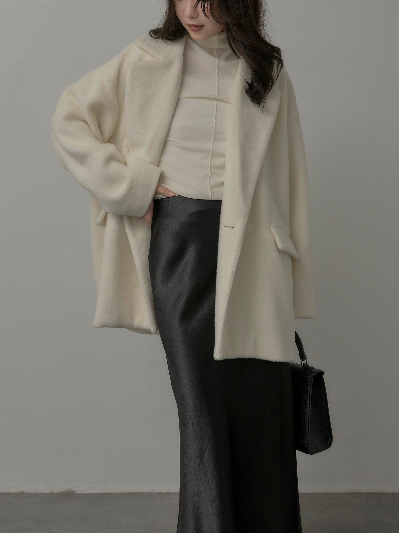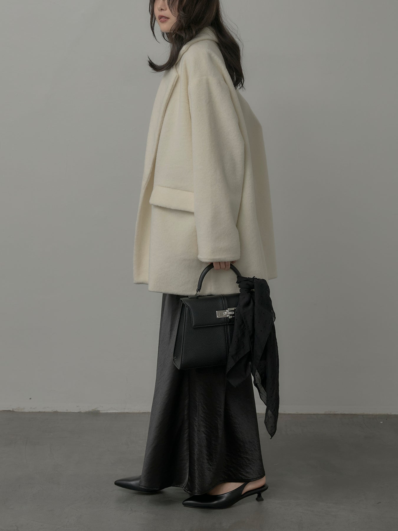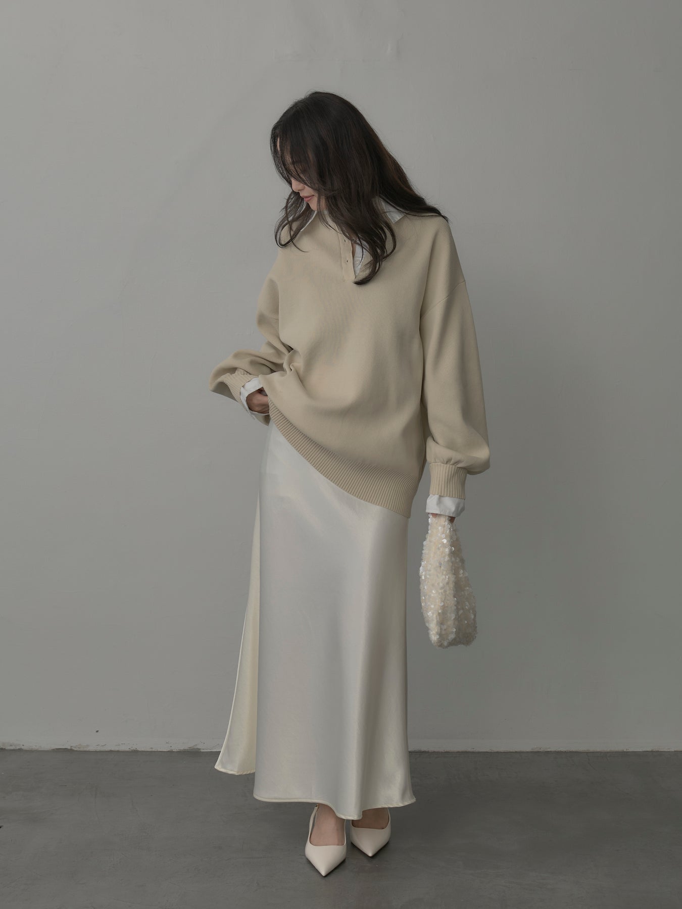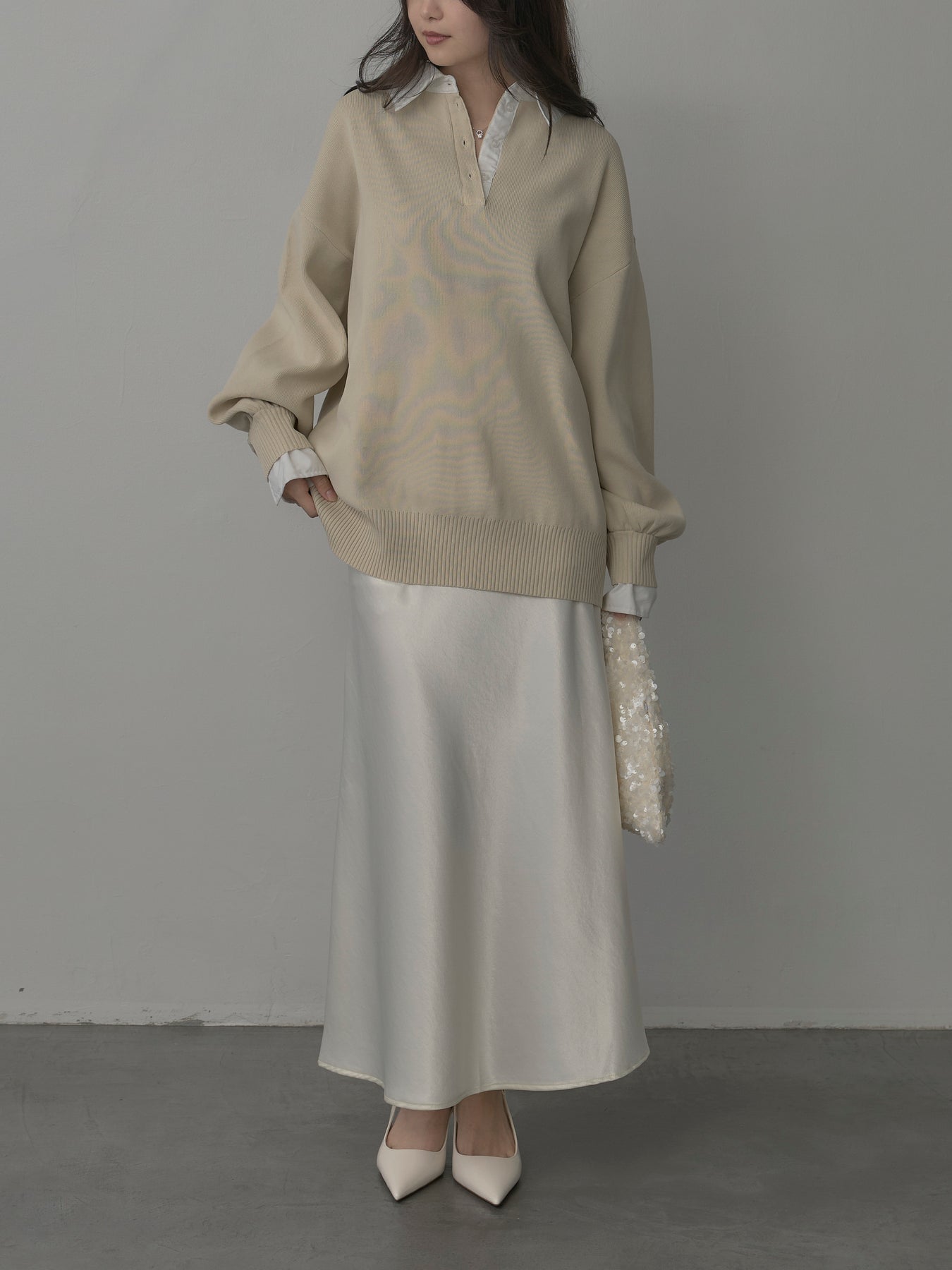 【モデル着用サイズ:IVORY/S、BLACK/S】 美しい光沢感のあるサテン素材を使用したナローAラインスカート。落ち感のあるシルエットが女性らしさを引き立て、幅広いトップスと好相性です。